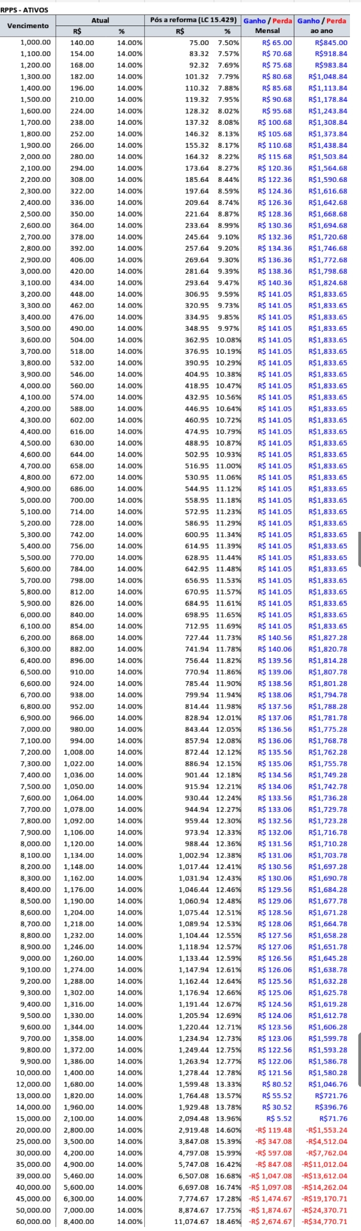 Na tabela abaixo, o Dieese elaborou cálculos já com a alíquota efetiva, demonstrando o confisco real que será realizado no contracheque de quem já trabalhou uma vida inteira.