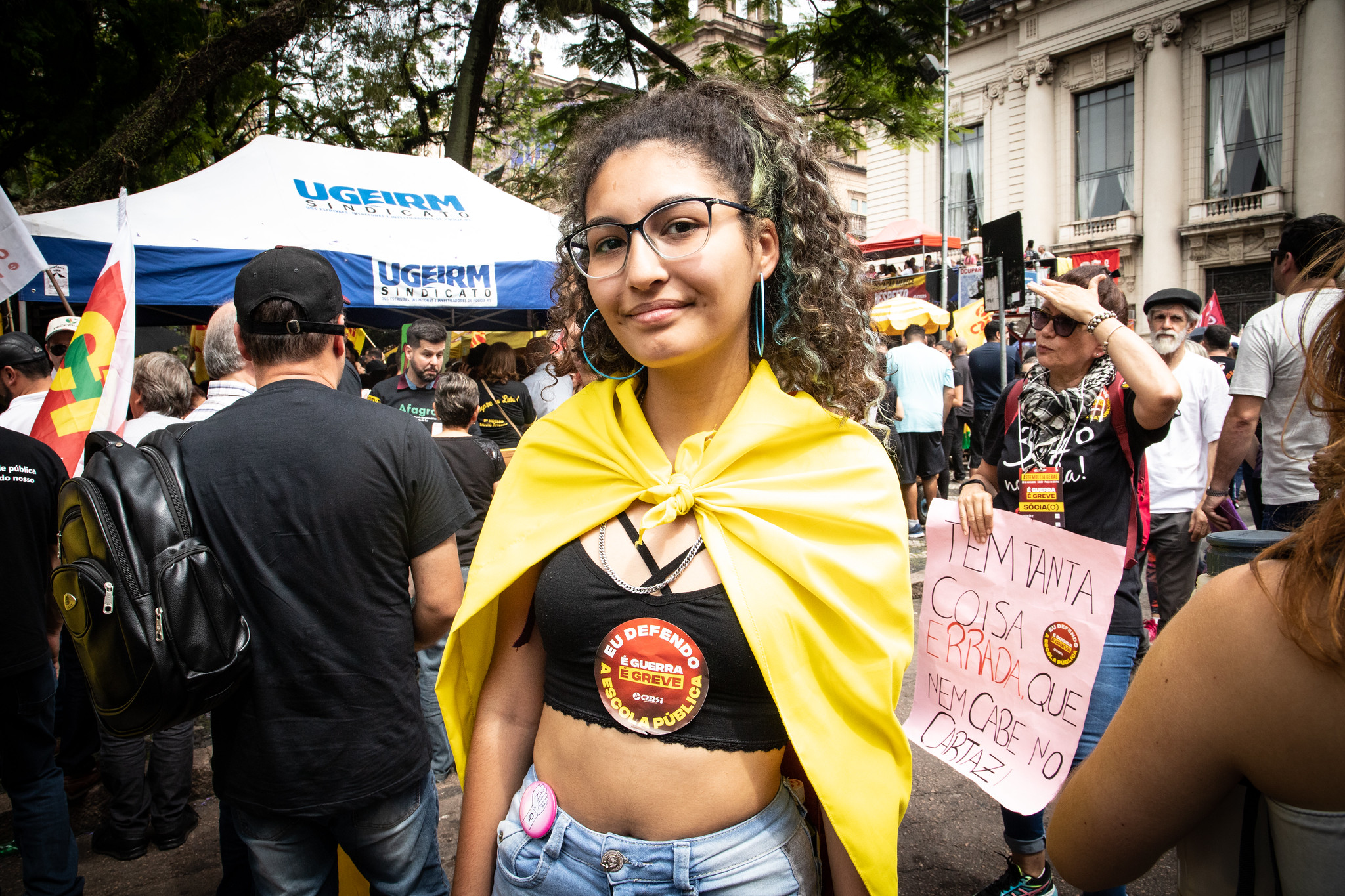 As caminhadas convergiram na Praça da Matriz somando forças com trabalhadores(as) de diversas categorias: técnicos administrativos e científicos, saúde, obras, planejamento, Brigada Militar, Polícia Civil, Susepe e outras. Todos unidos pela derrubada do pacote de Eduardo Leite.