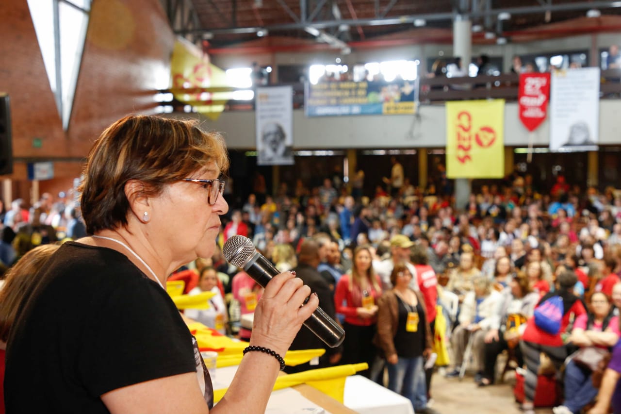 “Se o governo apresentar para a Assembleia Legislativa uma proposta para alterar o plano de carreira ou a previdência da categoria, em 72 horas deflagraremos uma forte greve”, afirma a presidente do CPERS, Helenir Aguiar Schürer, destacando a principal decisão dos mais de três mil educadores(as) que participaram da Assembleia Geral do CPERS, realizada na tarde desta sexta-feira (27), em Porto Alegre.