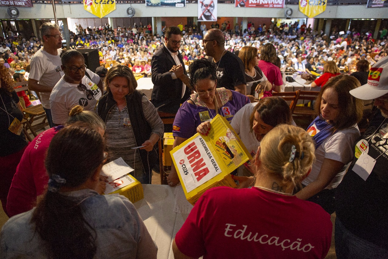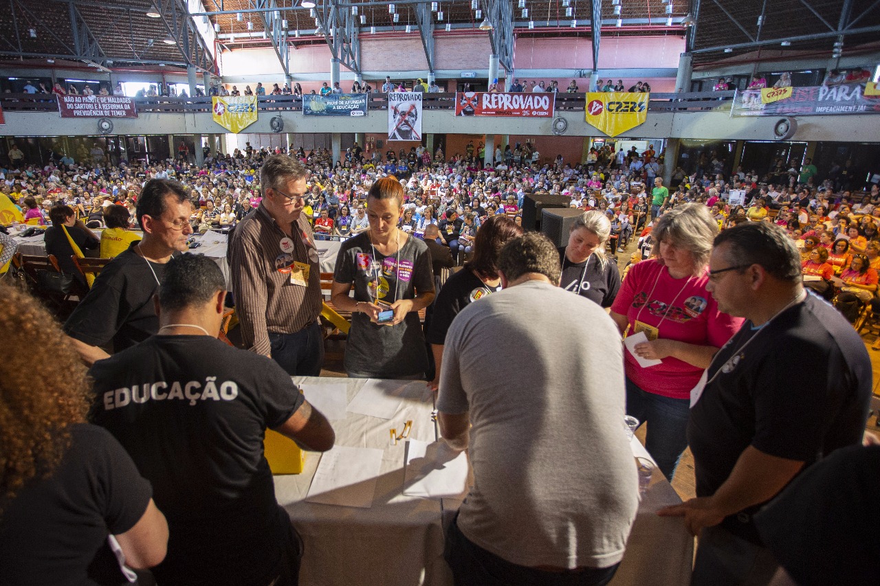 Além da definição dos próximos passos da luta, os(as) educadores(as) elegeram os representantes de base da categoria na Confederação Nacional dos Trabalhadores em Educação (CNTE). Cinco chapas apresentaram seus nomes e propostas para defender a voz do magistério gaúcho junto à entidade nacional. A Assembleia também deliberou, entre outras pautas, pela participação maciça de professores(as) e funcionários(as) nos atos e manifestações da campanha #EleNão neste sábado (29), contra o avanço do autoritarismo e do fascismo do país.