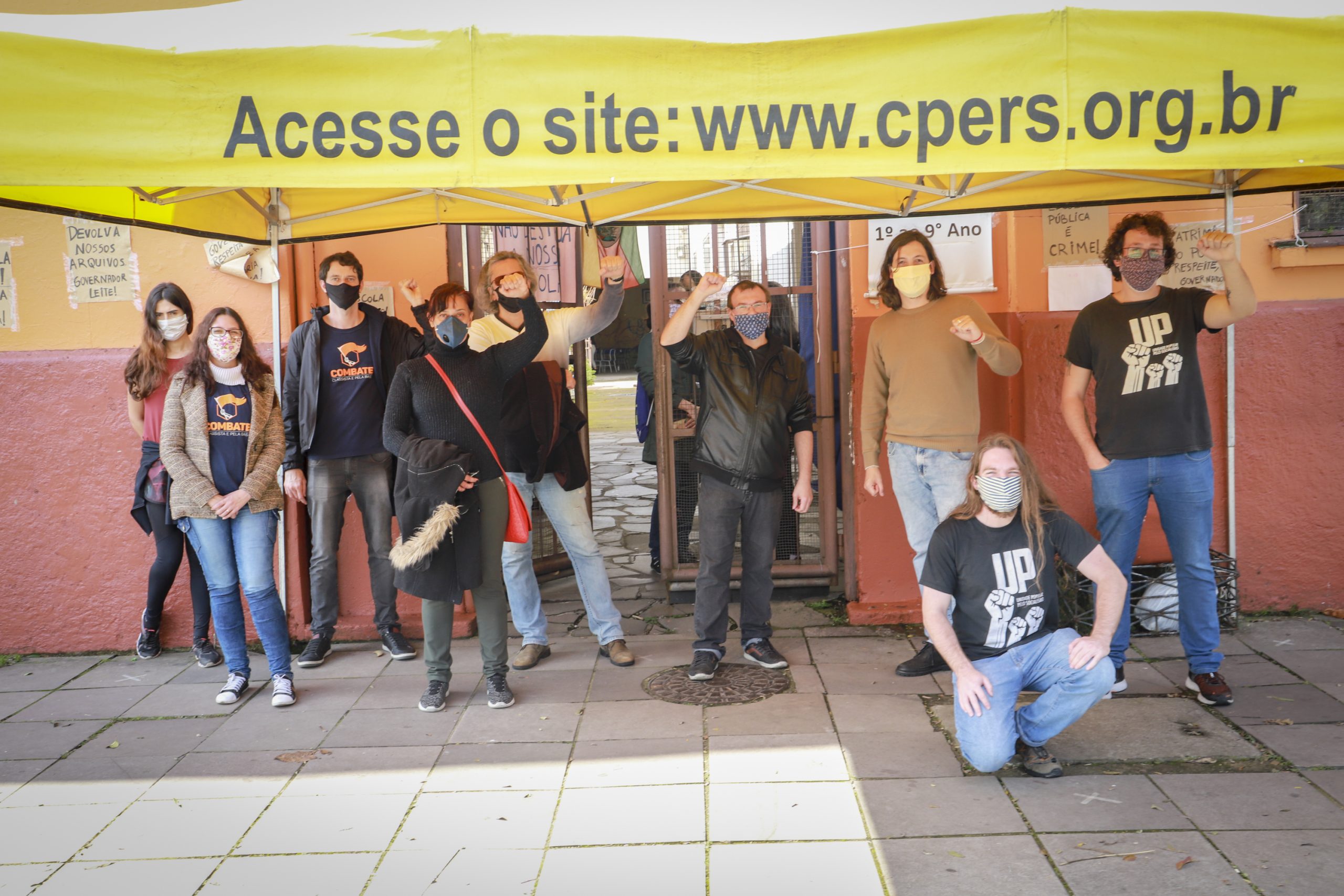 “Estamos aqui para prestar toda a solidariedade e exigir que o governo volte atrás de sua decisão, não só pela escola Estado do Rio Grande do Sul, mas também que não feche outras instituições, EJAS e Neejas, e que seja mantido o atendimento para a população gaúcha”, declara Daniel Damiani, diretor do Departamento da Juventude do CPERS.