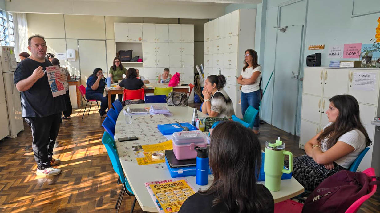 A diretora Juçara Borges, que encerrou a semana de atividades no 1º Núcleo (Caxias do Sul), destaca que a receptividade da categoria tem sido excelente. “Apesar do cansaço físico e mental das colegas, resultado da desvalorização profissional e da sobrecarga de trabalho, a presença da direção central nas escolas é muito bem recebida. Eles gostam de ver o Sindicato no chão da escola, levando informações, dialogando e, principalmente, ouvindo seus anseios”, ressalta a educadora.