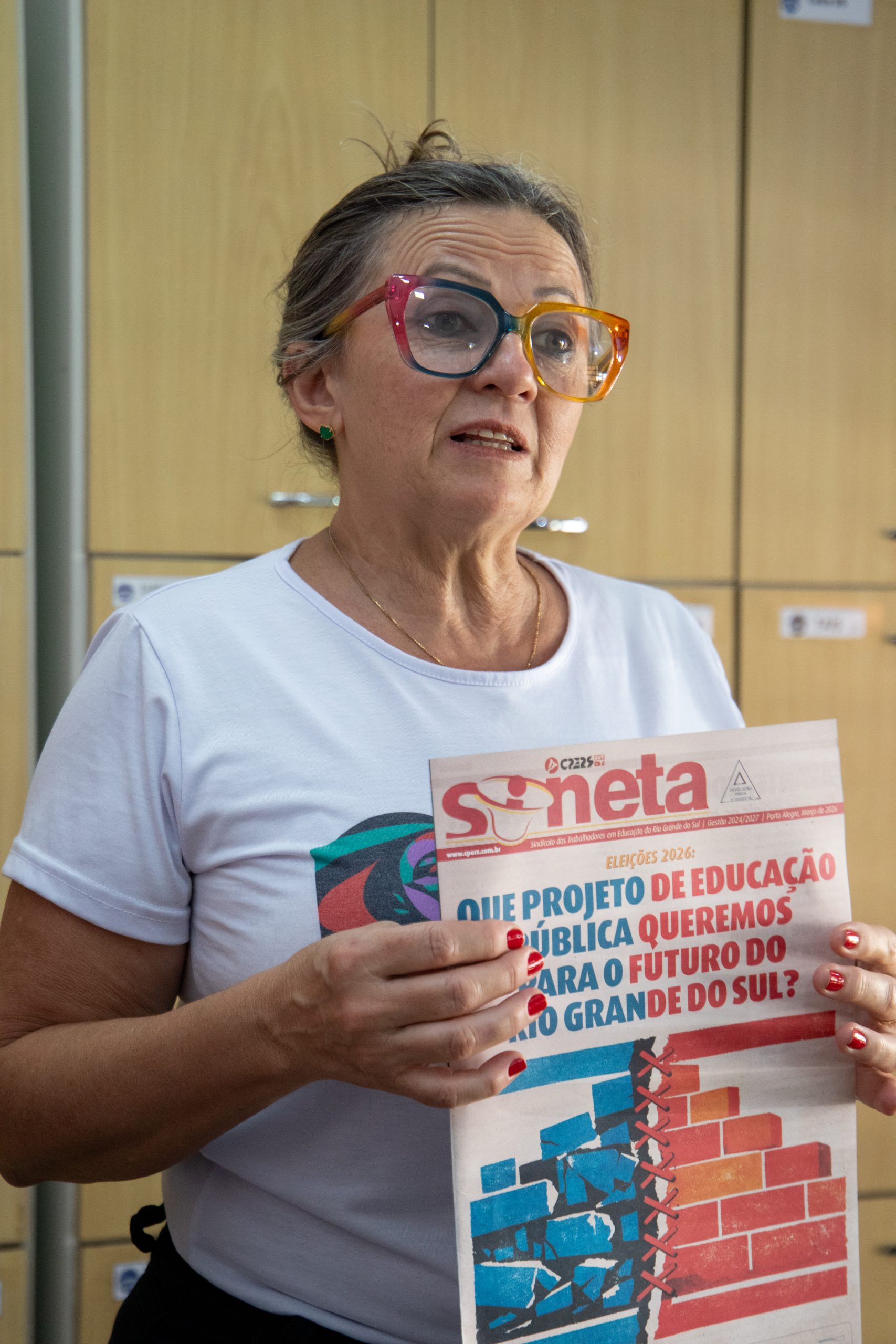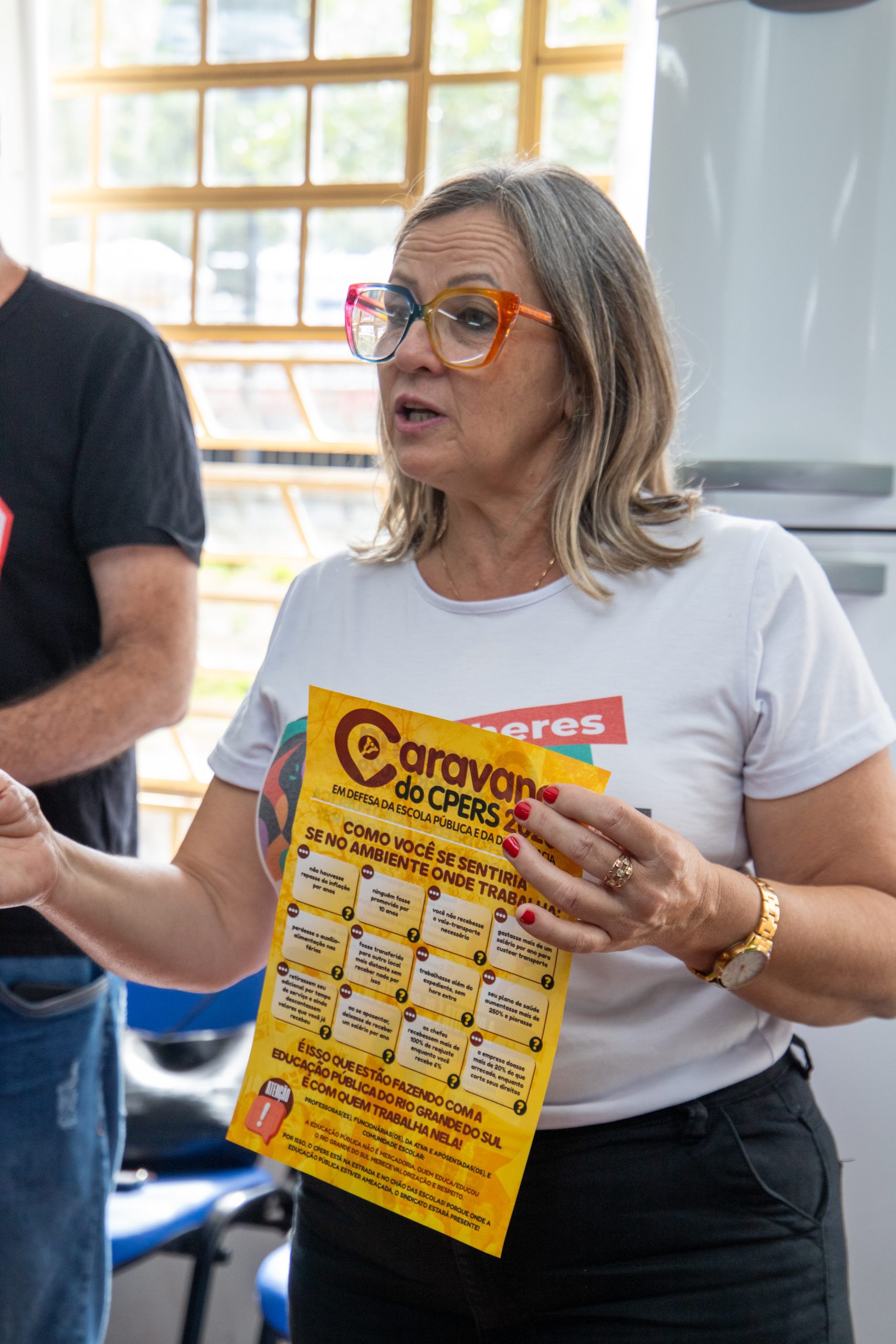 A Caravana também busca ampliar o debate sobre os desafios enfrentados pela educação pública gaúcha, como a desvalorização profissional, a precarização das condições de trabalho e as nefastas políticas educacionais implementadas pelo governo Eduardo Leite (PSD).