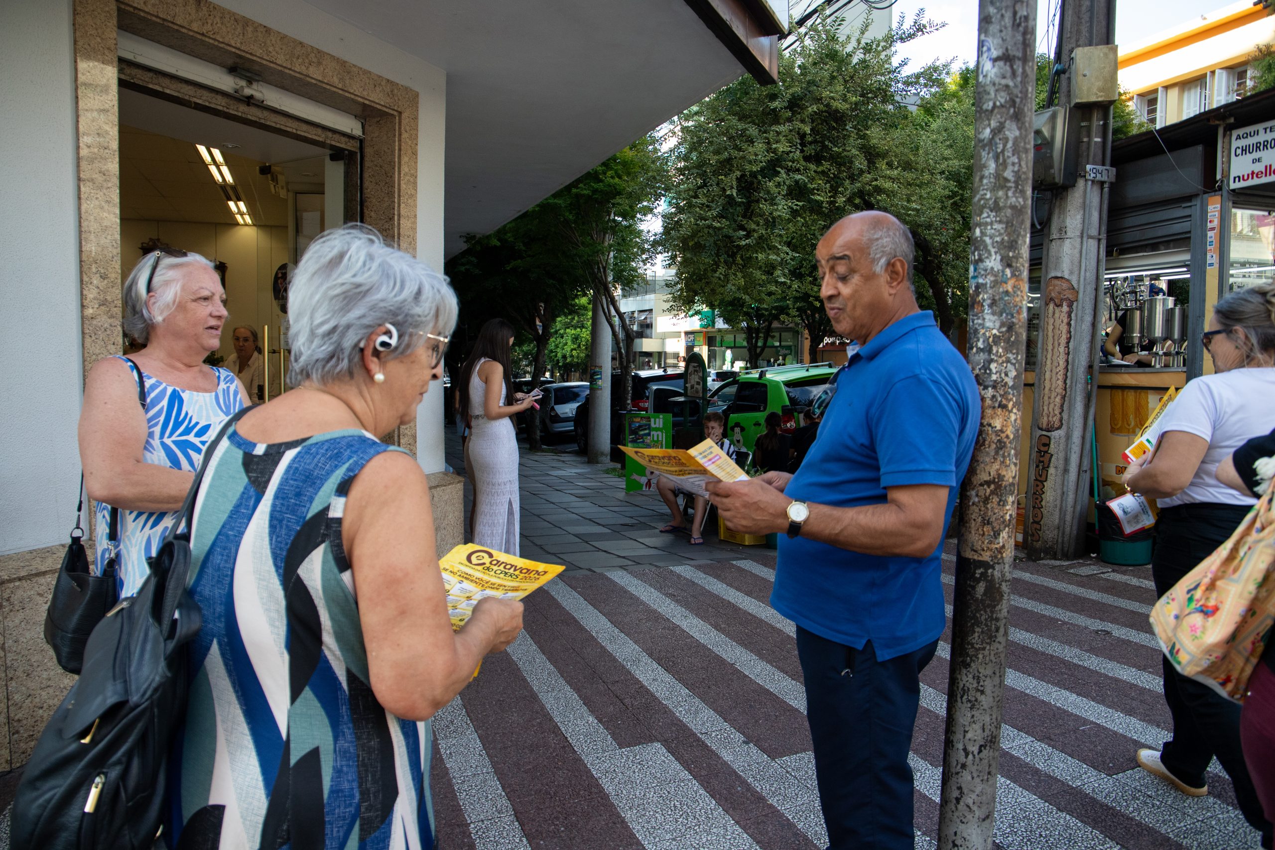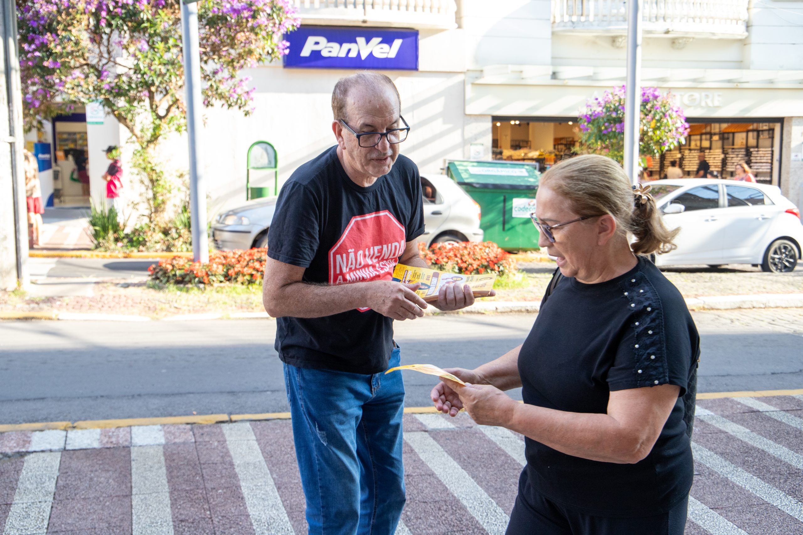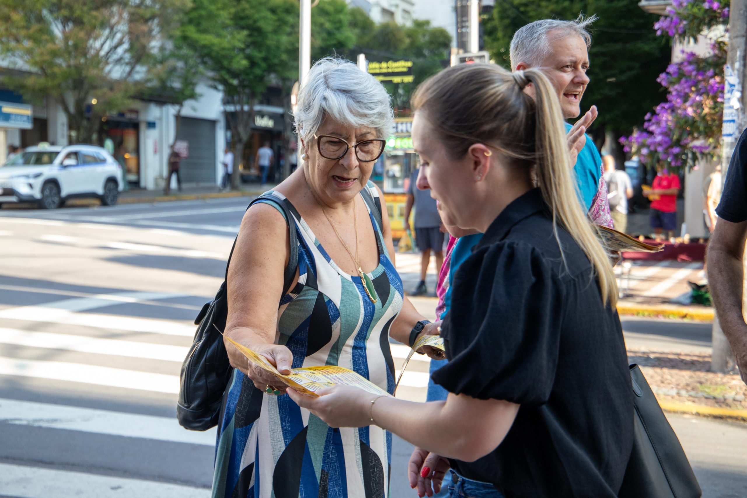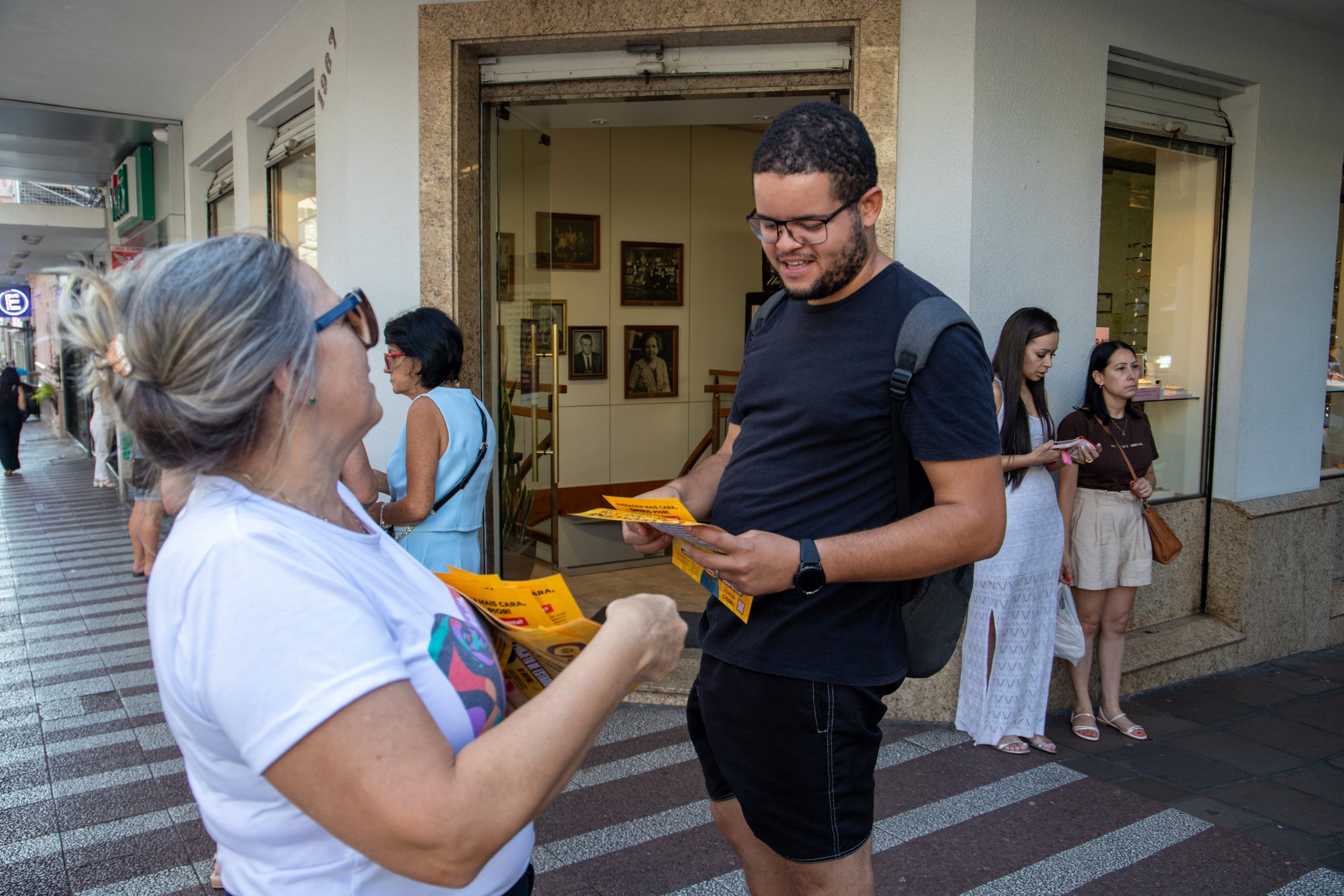 Em Caxias do Sul, após as visitas às escolas, também foi realizada uma panfletagem pelas ruas do centro da cidade.