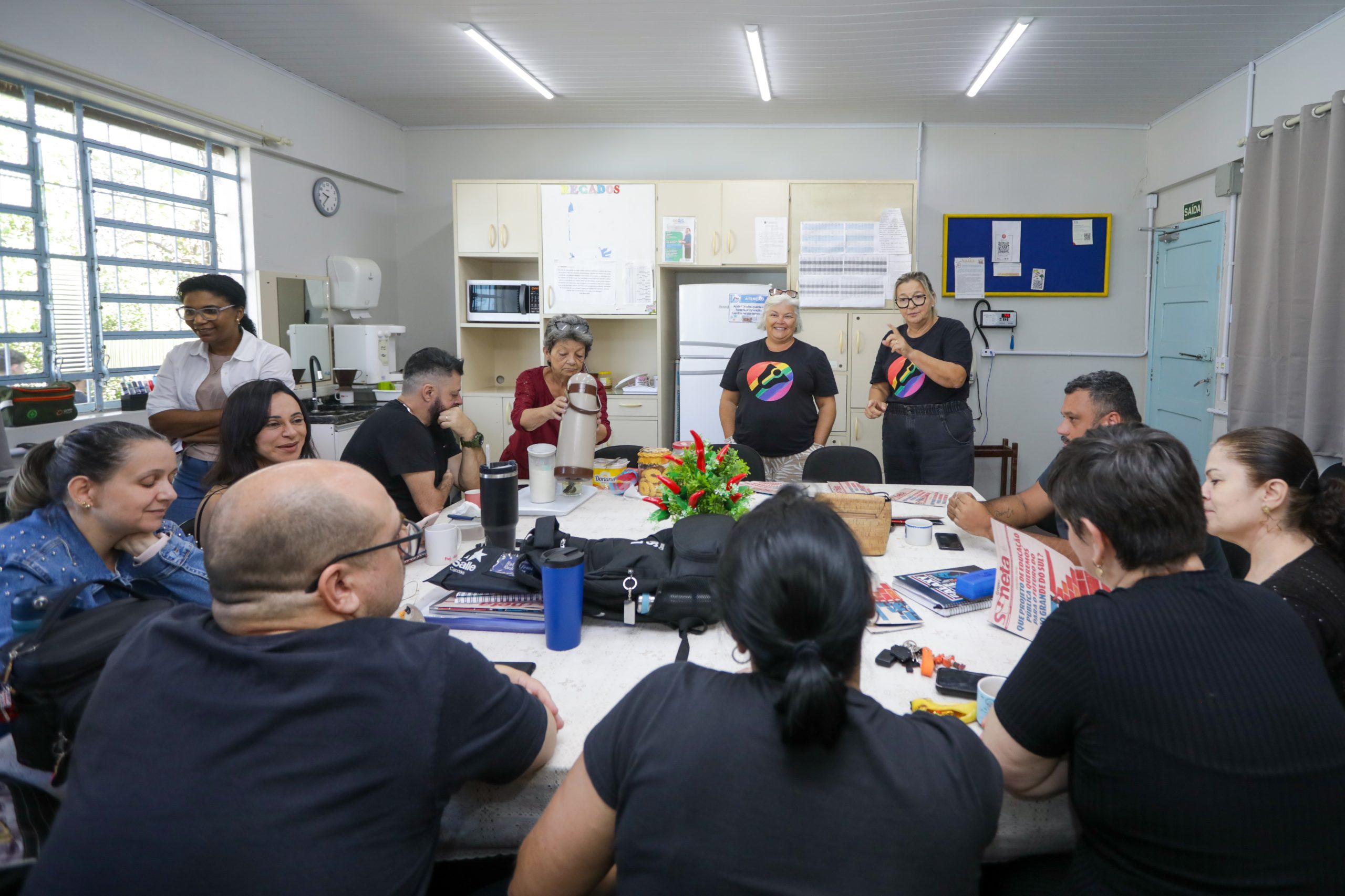 Nesta quinta-feira (12), foi a vez das educadoras e educadores dos núcleos de Canoas (20º), Gravataí (22º) e Lagoa Vermelha (25º) receberem a Caravana do CPERS em Defesa da Escola Pública e da Democracia. A iniciativa tem levado informações sobre as lutas da categoria para professoras(es) e funcionárias(os) de escola, além de promover escuta e acolhimento às(aos) trabalhadoras(es) da educação.