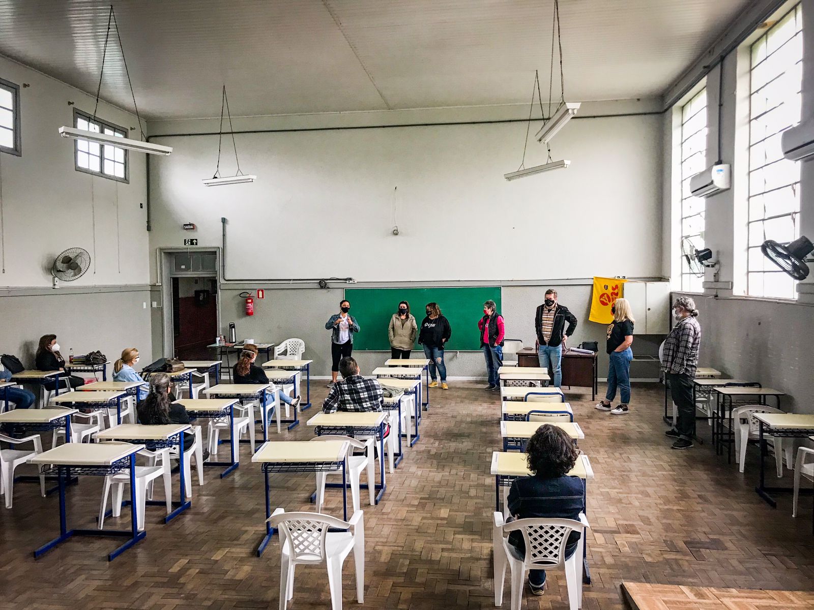 “Todas as escolas que temos visitado precisam de manutenção. O governo não fez os reparos no período em que podia, durante as aulas remotas na pandemia e agora exigiu o retorno obrigatório ignorando a precariedade existente”, enfatiza o diretor do 14º núcleo, Luiz Henrique Becker.