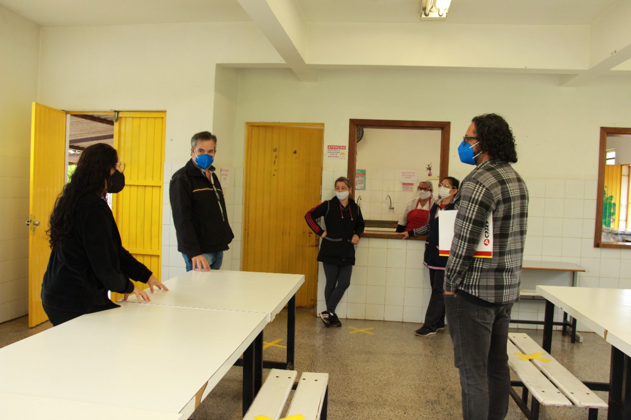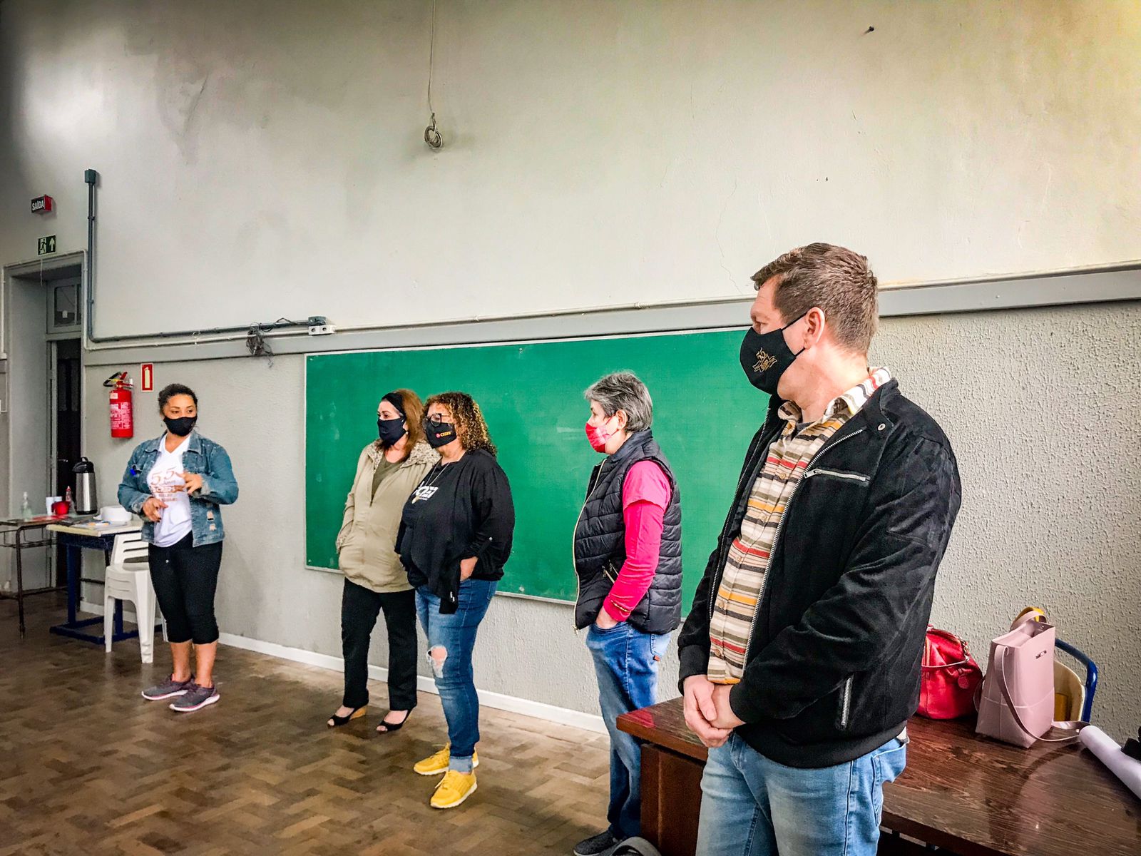 Junto com a diretora Carla Cassais e a diretora do núcleo 19º Rosa Maria Agostini Dotta, a presidente do CPERS esteve nas escolas: EE Marquês Alegrete, EE Arthur Hormain, EE Eduardo Vargas, EE Gaspar Martins, EE Dr. Lauro Dornelles, EE Ecilda Alves Paim, CIEP, Instituto Estadual de Educação Osvaldo Aranha.