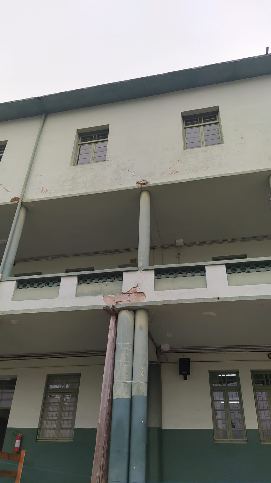Após um temporal que destruiu, em 2019, o telhado da escola, goteiras causam infiltração e umidade, que geram mofo pelas paredes. Quando chove, os alunos têm aulas na biblioteca e em outros espaços.