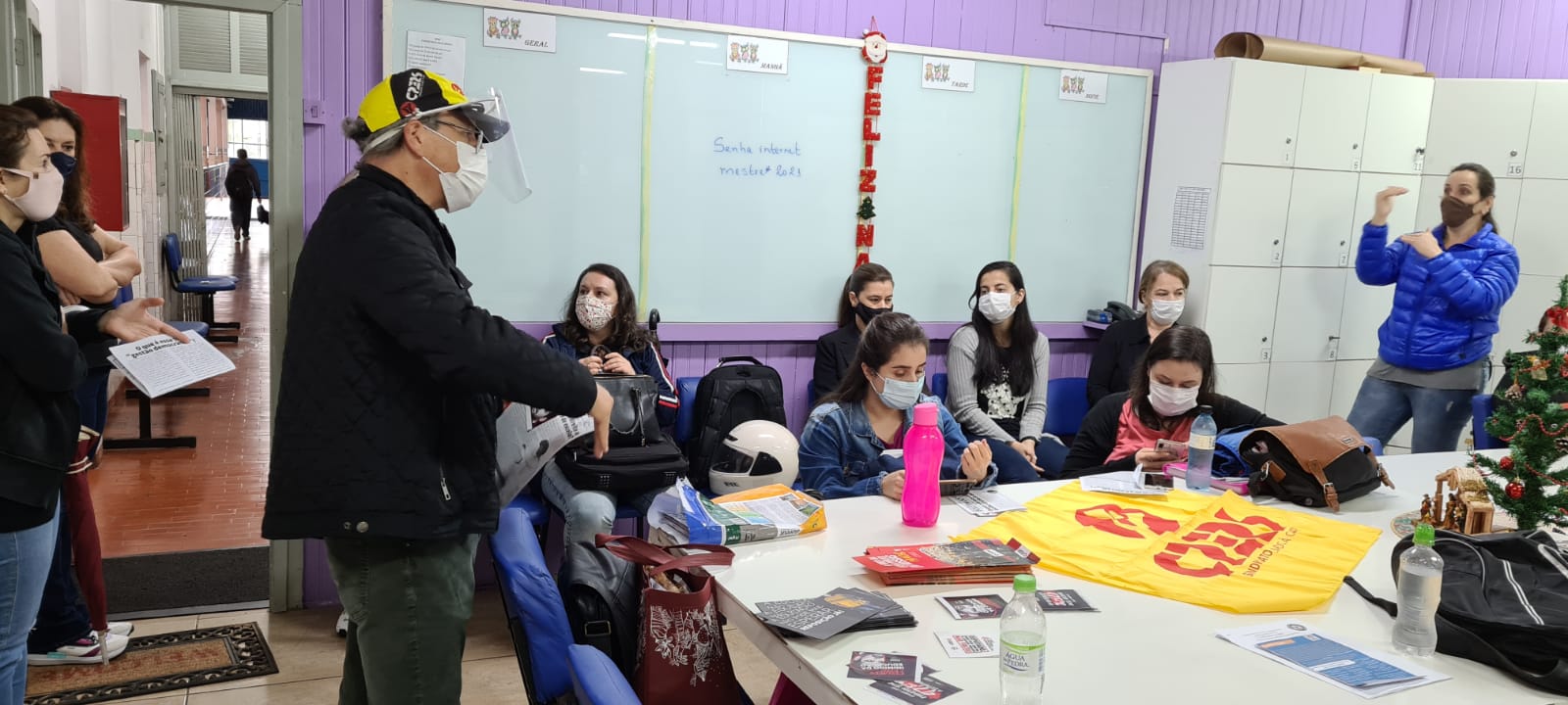 Nesta quinta-feira (18), representantes da direção central e dos núcleos do sindicato estiveram em escolas das regiões de Alegrete, Três de Maio, Santa Maria, Gravataí, Lagoa Vermelha, Bento Gonçalves, São Leopoldo e Passo Fundo.