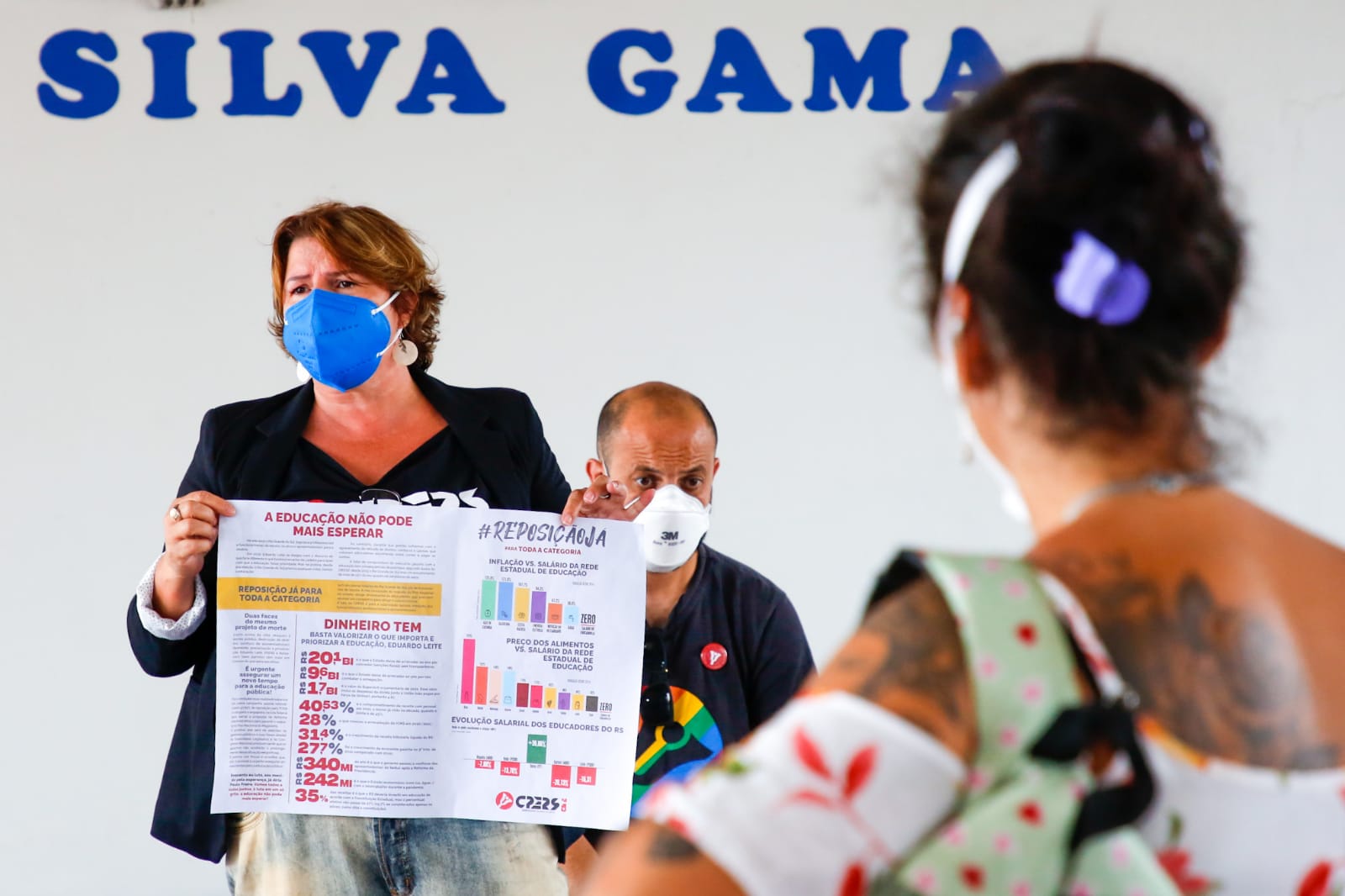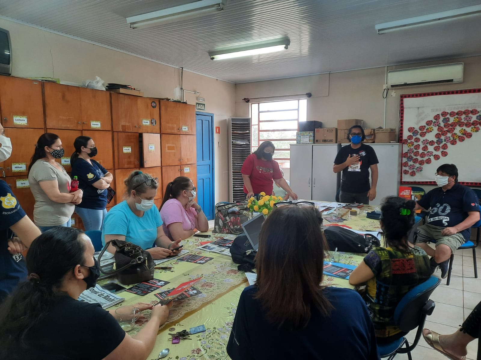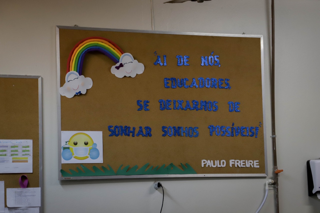 “O governo segue arrecadando com o desconto dos aposentados e economizou às nossas custas durante a pandemia. Esse governo não olha para o trabalhador e o quanto tivemos que investir para trabalhar, por isso entramos com a proposição do projeto de lei para o nosso ressarcimento dos gastos na pandemia”, afirmou a diretora Vera Lessê durante visita a escola.