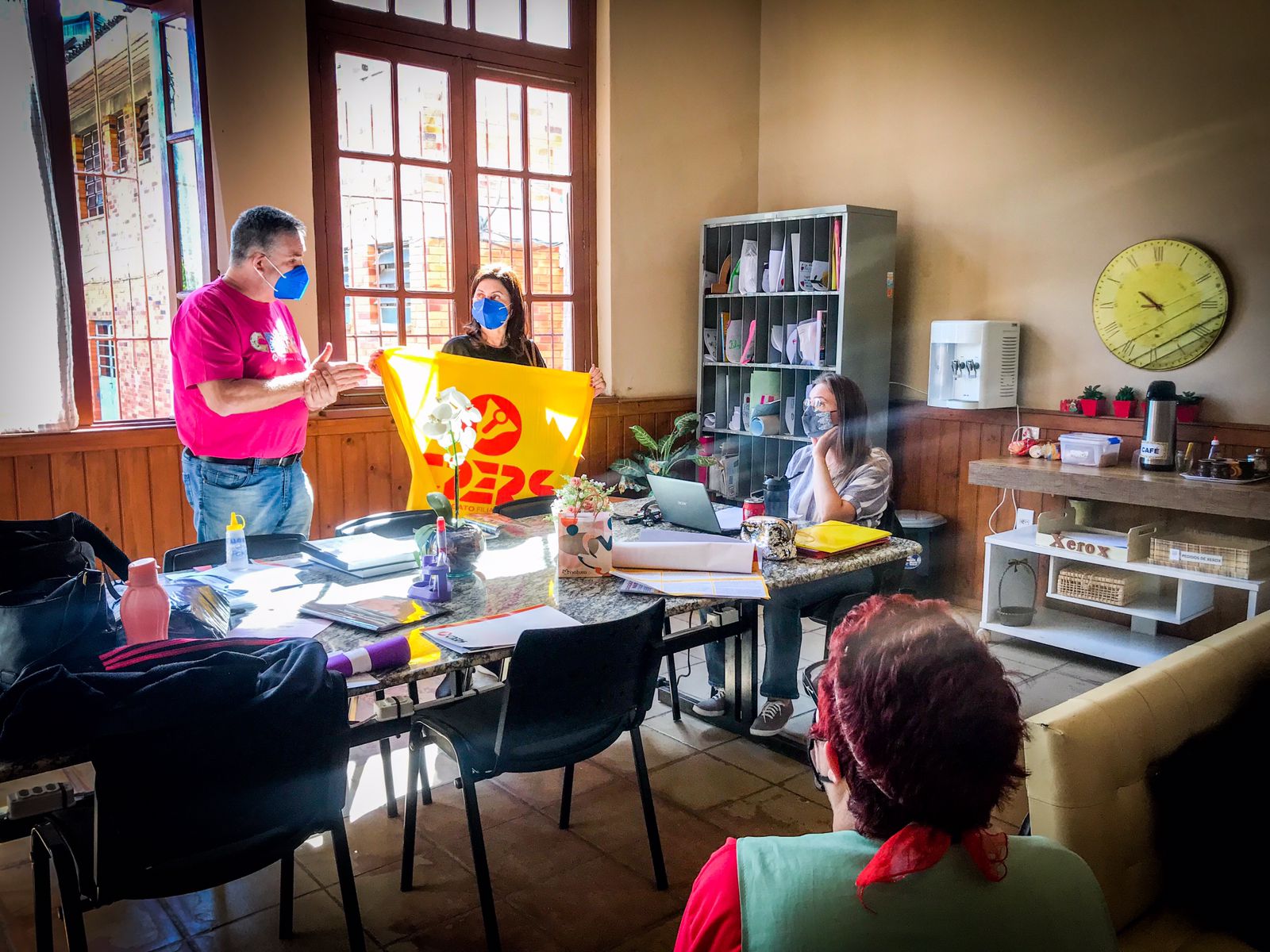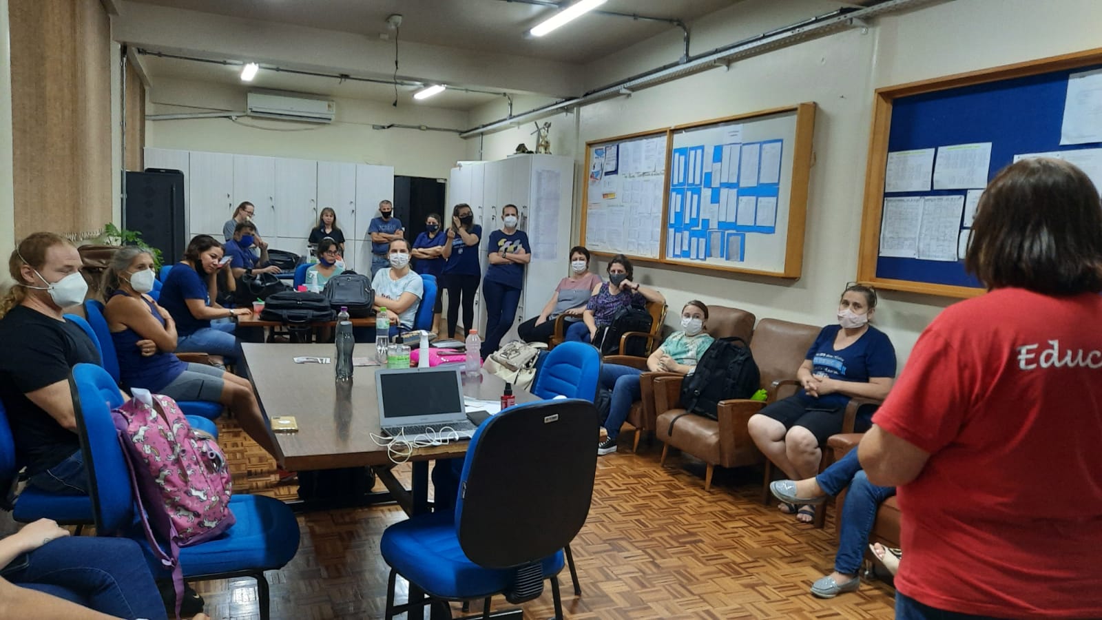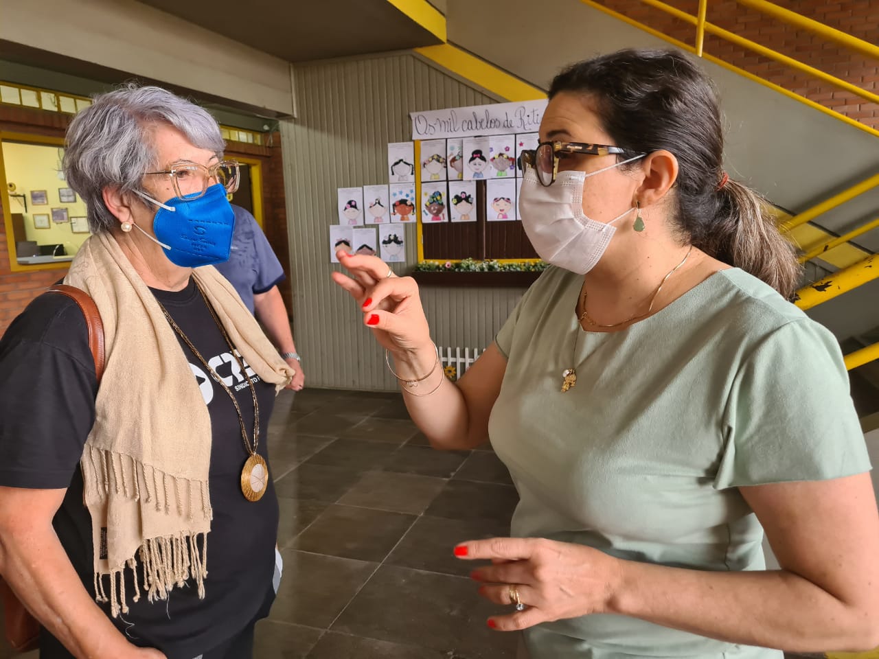 “O governo segue arrecadando com o desconto dos aposentados e economizou às nossas custas durante a pandemia. Esse governo não olha para o trabalhador e o quanto tivemos que investir para trabalhar, por isso entramos com a proposição do projeto de lei para o nosso ressarcimento dos gastos na pandemia”, afirmou a diretora Vera Lessê durante visita a escola.
