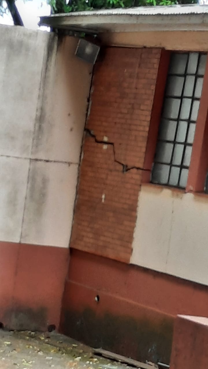 Na EEEF Rafael Pinto Bandeira, em Porto Alegre, o muro está prestes a desabar. A situação ocorre desde 2013 e coloca em risco educadores(as) e estudantes.