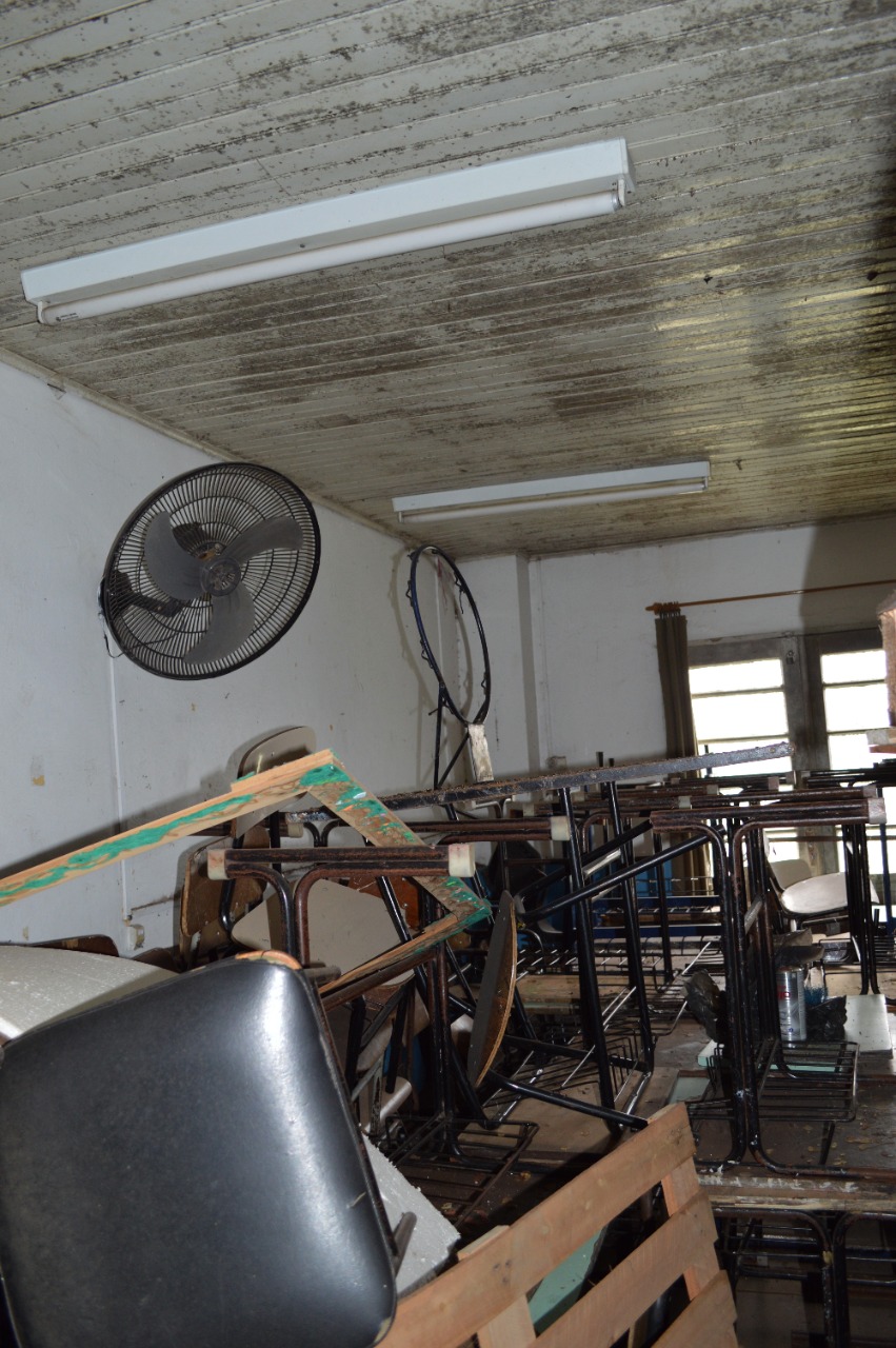 Quando chove, o espaço fica alagado e a parte elétrica precisa ser trocada. O auditório teve que ser readaptado para abrigar o setor.