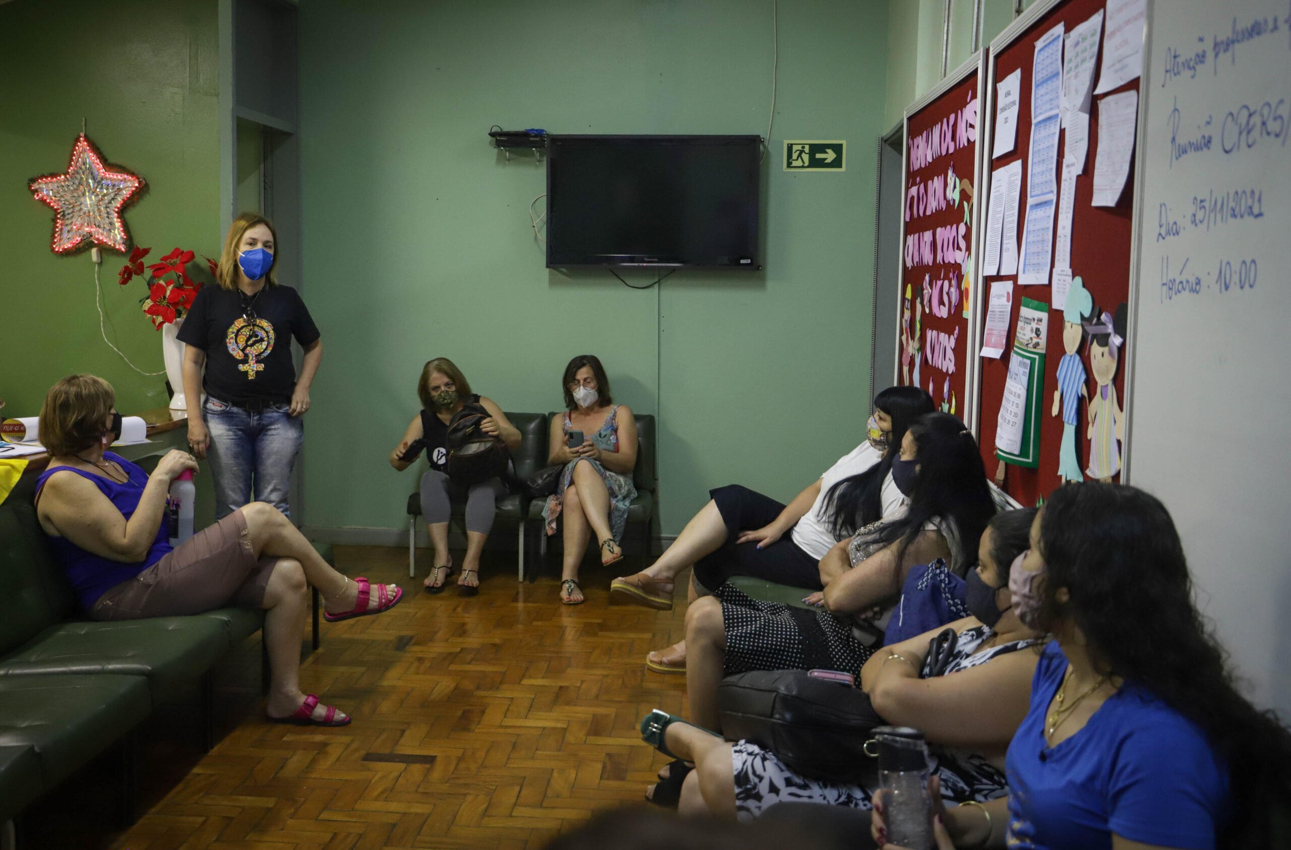 “Na hora de descontar, Eduardo Leite desconta, mas na hora de pagar o nosso salário, internet e luz, ele não paga. Estamos pressionando para que ele faça o ressarcimento dos gastos que tivemos na pandemia”, pontuou a diretora Alda Souza.