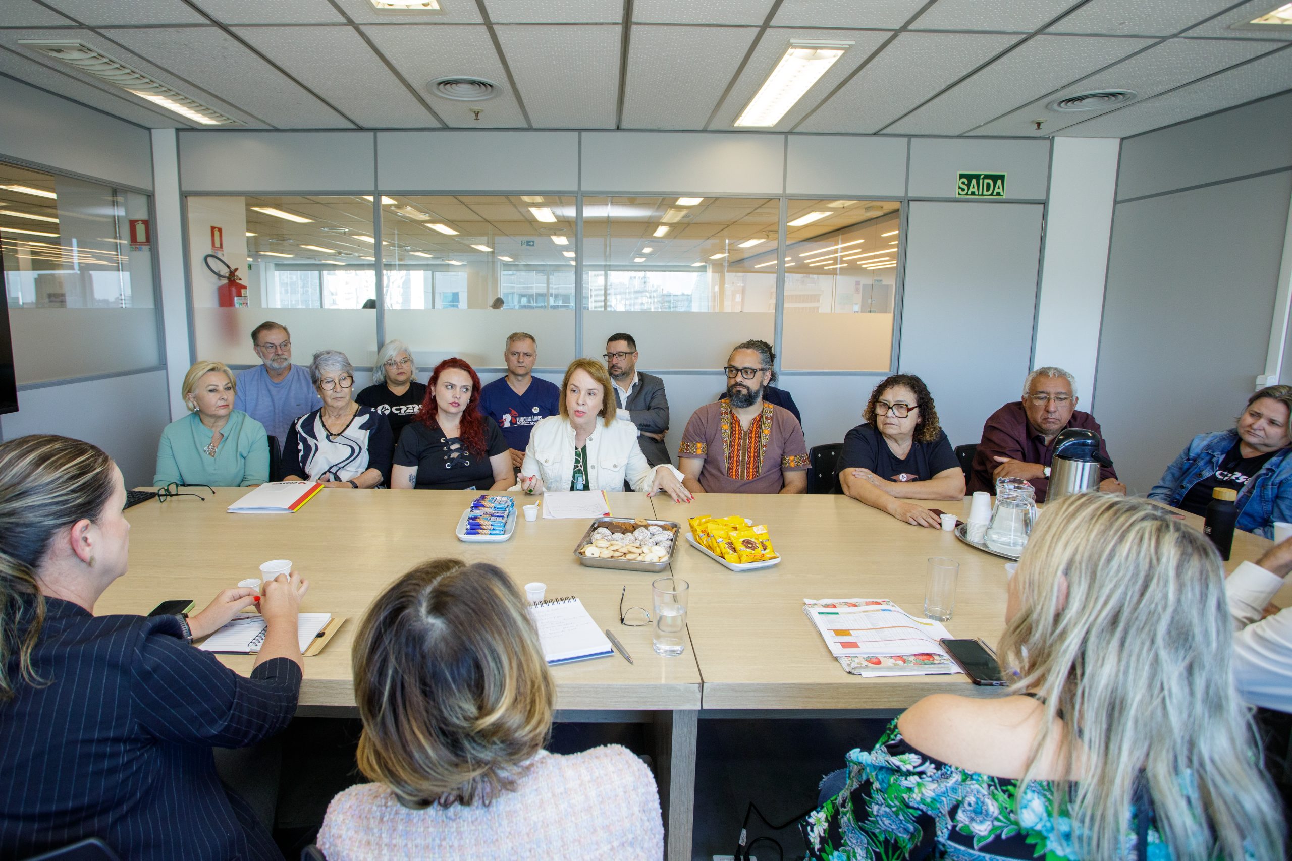 Logo na abertura da reunião, a presidente do CPERS, Rosane Zan, entregou à secretária a pauta de reivindicações aprovada na Assembleia Geral do Sindicato, realizada no dia 3 de outubro. O documento abrange temas centrais como salário e remuneração, carreira, previdência e saúde da(o) trabalhadora(or), condições de trabalho e segurança e questões pedagógicas. Também foi entregue a Carta da Aula Pública promovida pela entidade, que denuncia os riscos da política meritocrática imposta pelo governo e a falta de escuta da comunidade escolar sobre o PL 347.