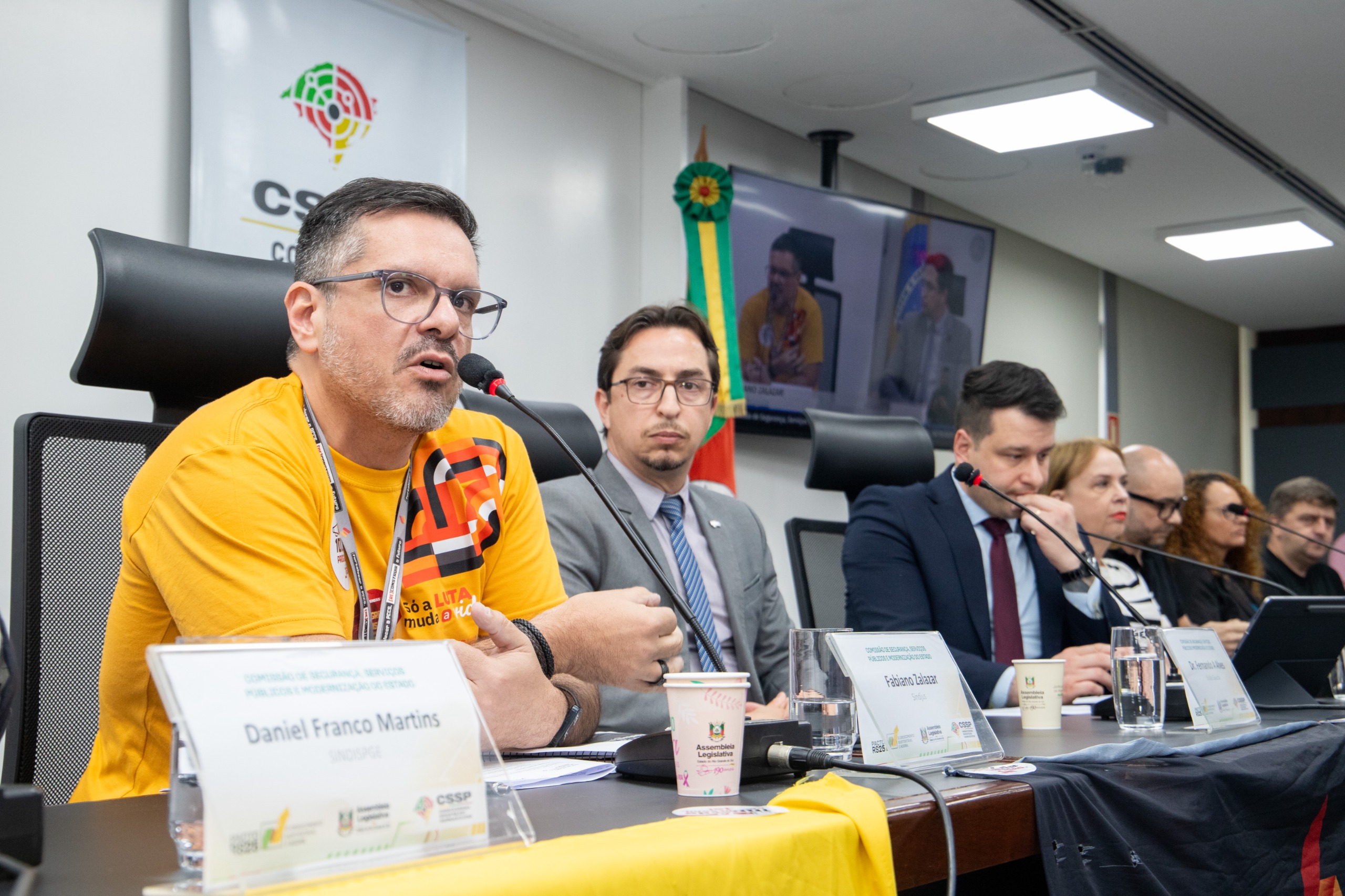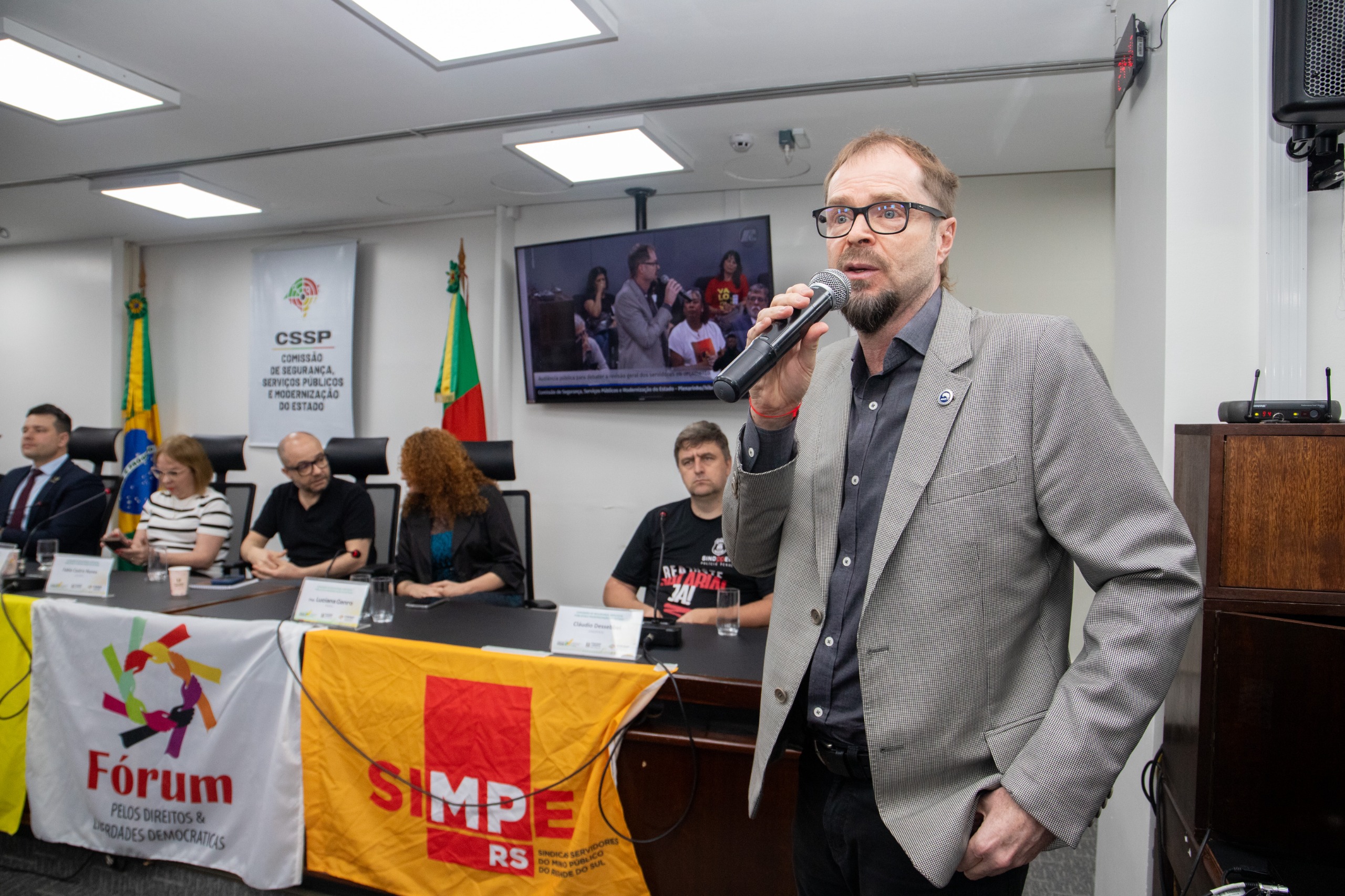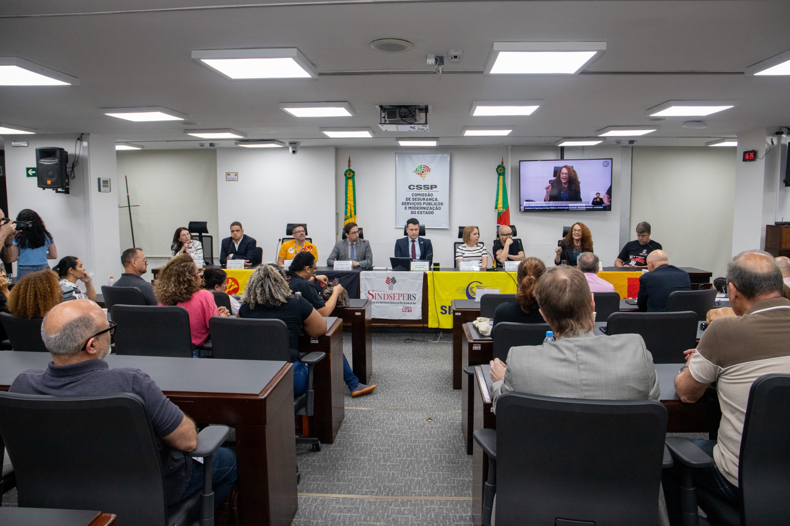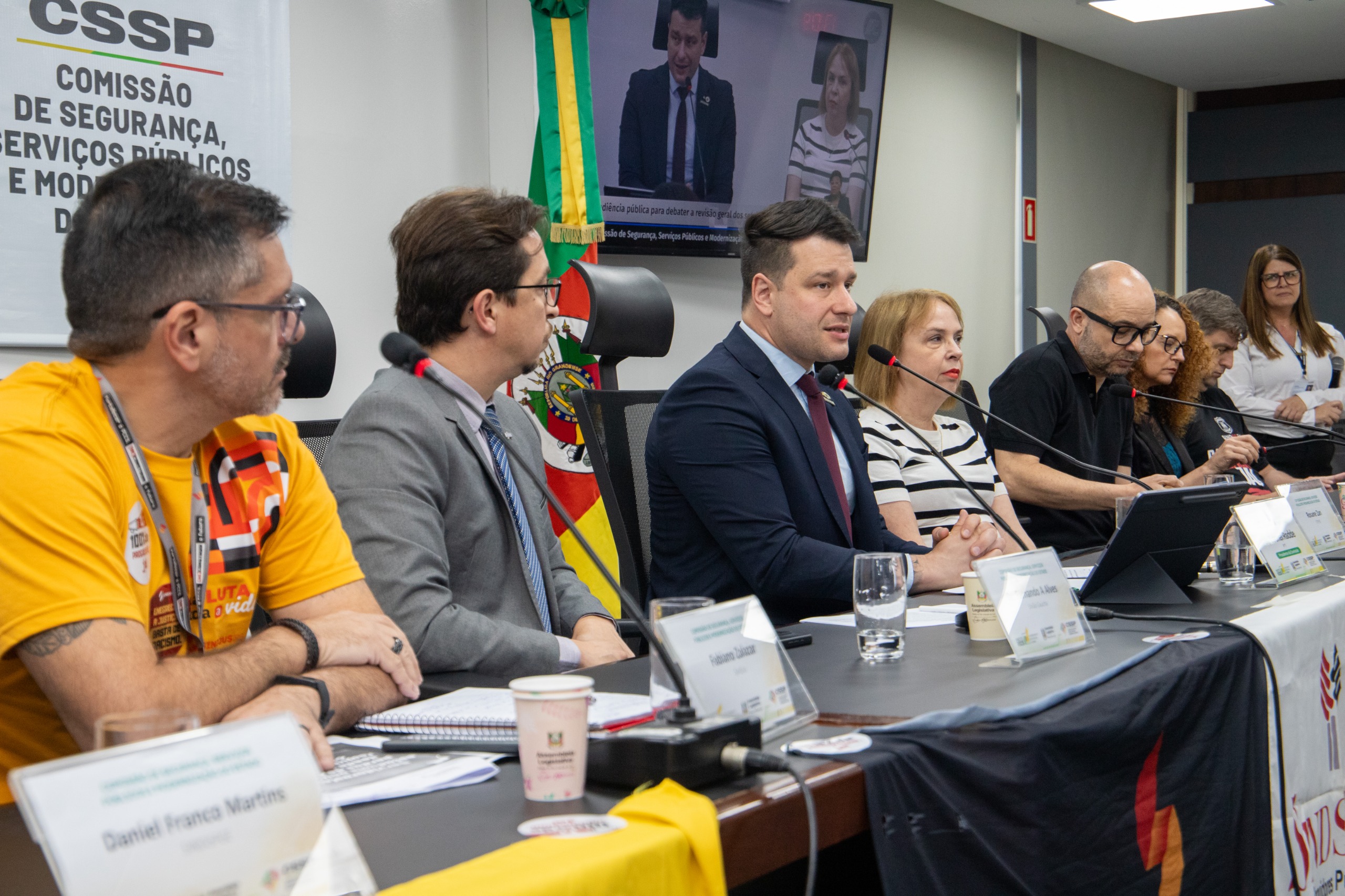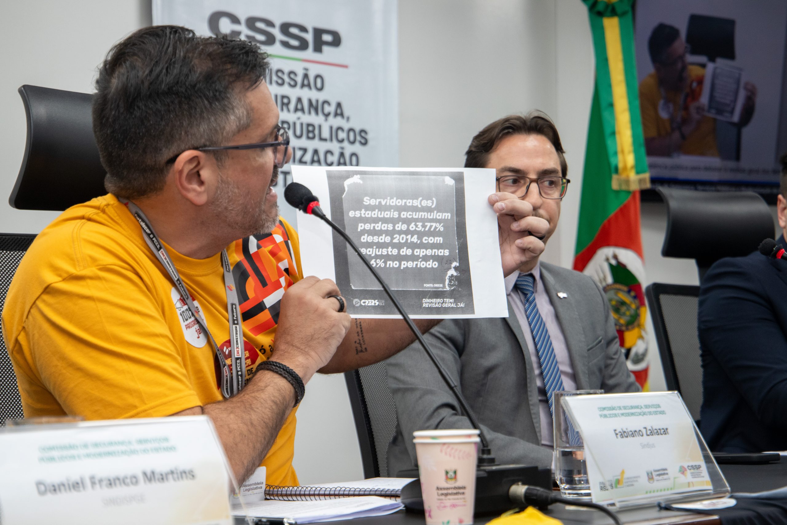 Na tarde desta sexta-feira (24), o CPERS esteve presente na Audiência Pública sobre a revisão geral dos salários no orçamento de 2026, promovida pela Comissão de Segurança, Serviços Públicos e Modernização do Estado (CSSP) da Assembleia Legislativa, presidida pelo deputado estadual Leonel Radde (PT). A atividade reuniu diversos sindicatos e organizações representantes das(os) servidoras(es) públicas(os) para debater as reivindicações e estratégias.