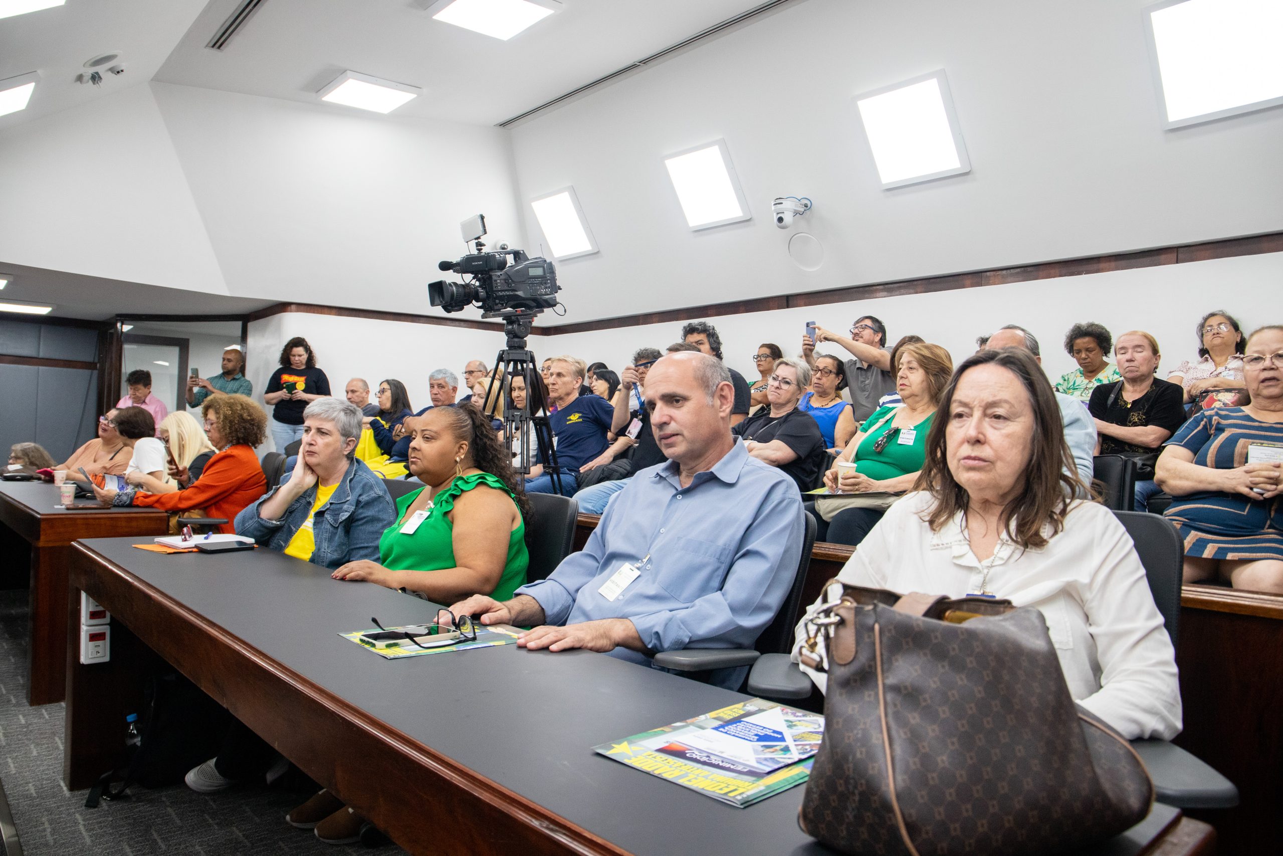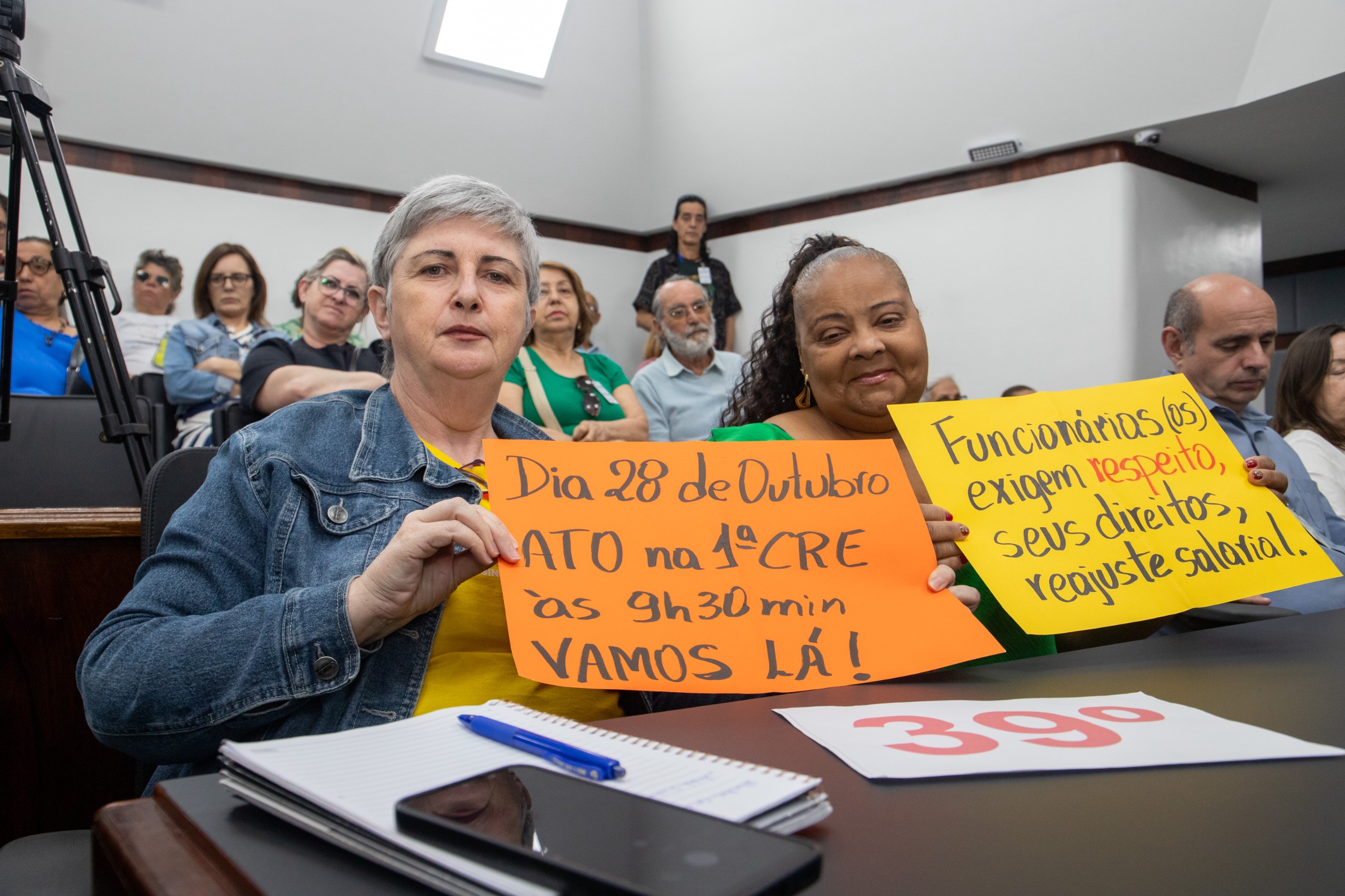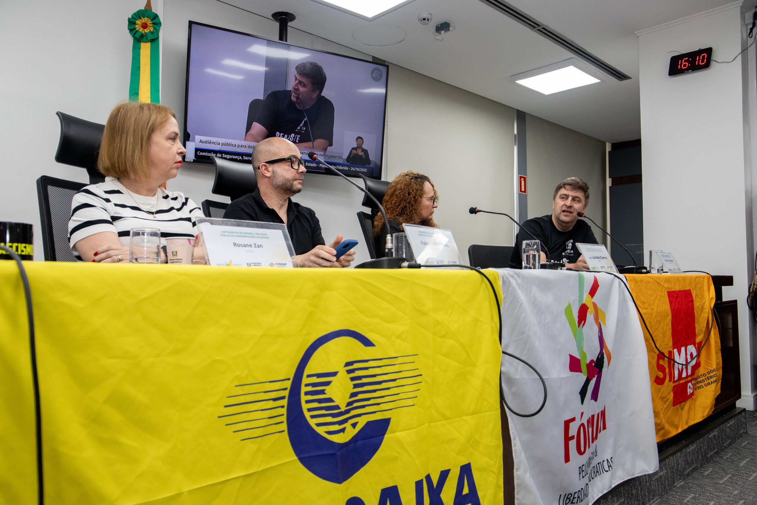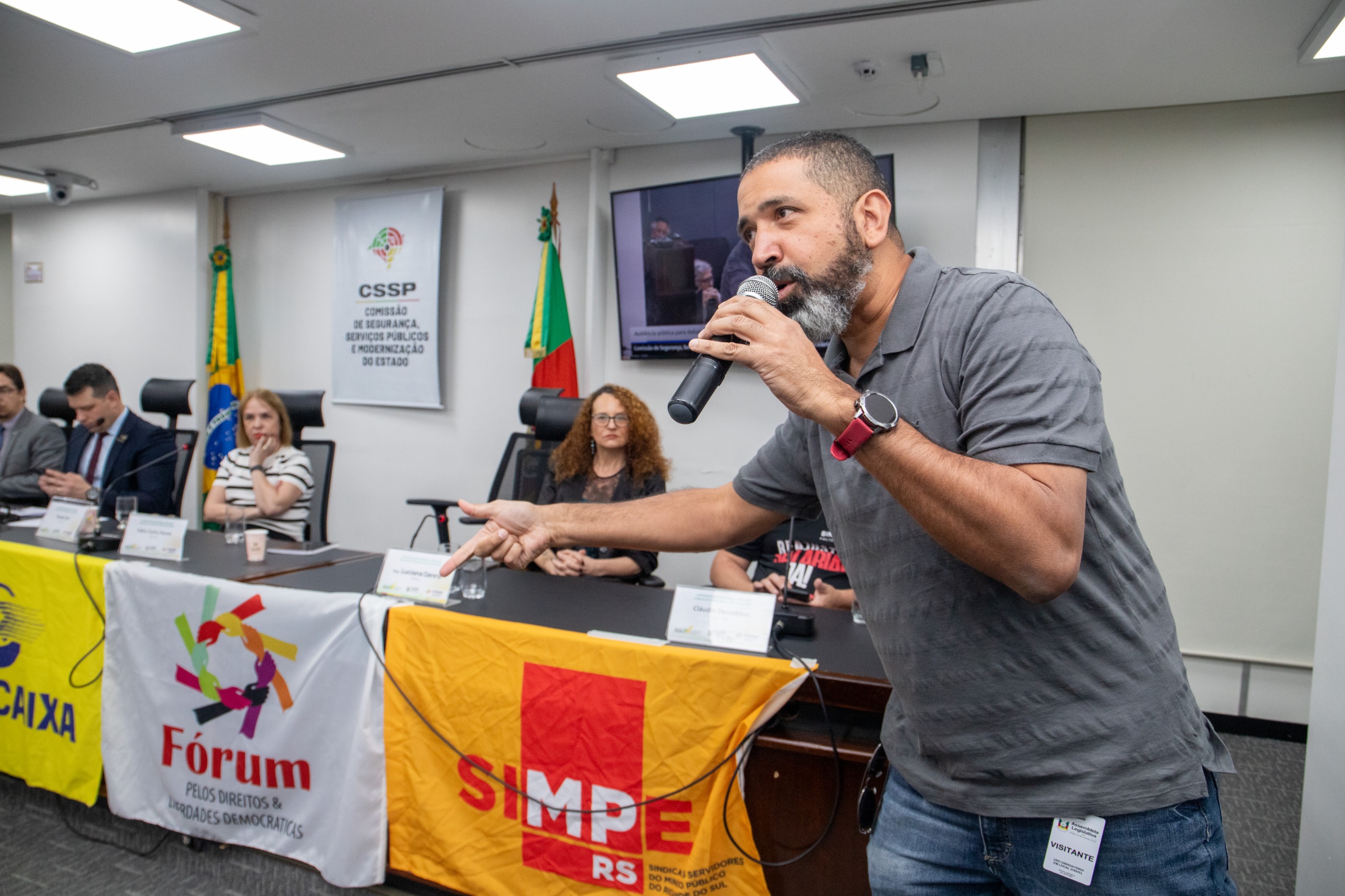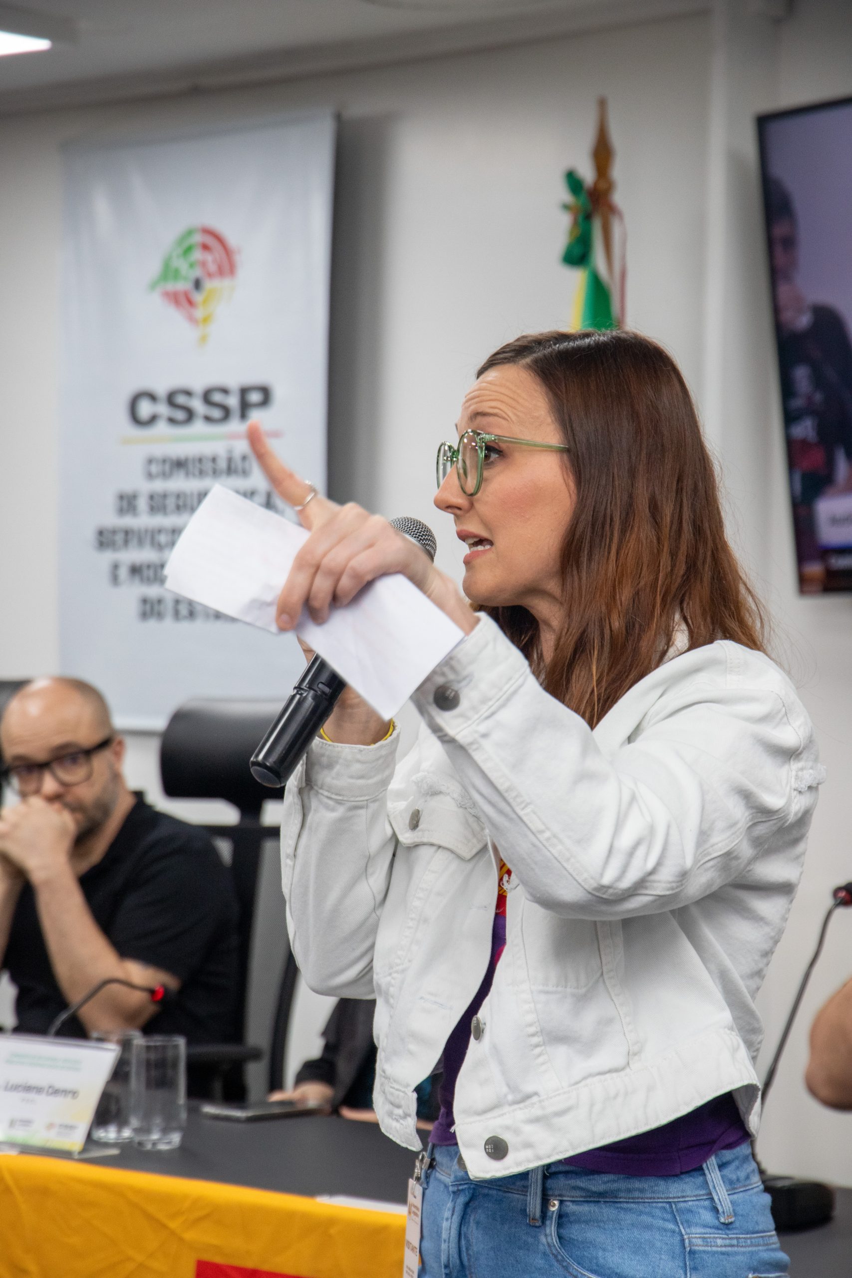 Na tarde desta sexta-feira (24), o CPERS esteve presente na Audiência Pública sobre a revisão geral dos salários no orçamento de 2026, promovida pela Comissão de Segurança, Serviços Públicos e Modernização do Estado (CSSP) da Assembleia Legislativa, presidida pelo deputado estadual Leonel Radde (PT). A atividade reuniu diversos sindicatos e organizações representantes das(os) servidoras(es) públicas(os) para debater as reivindicações e estratégias.
