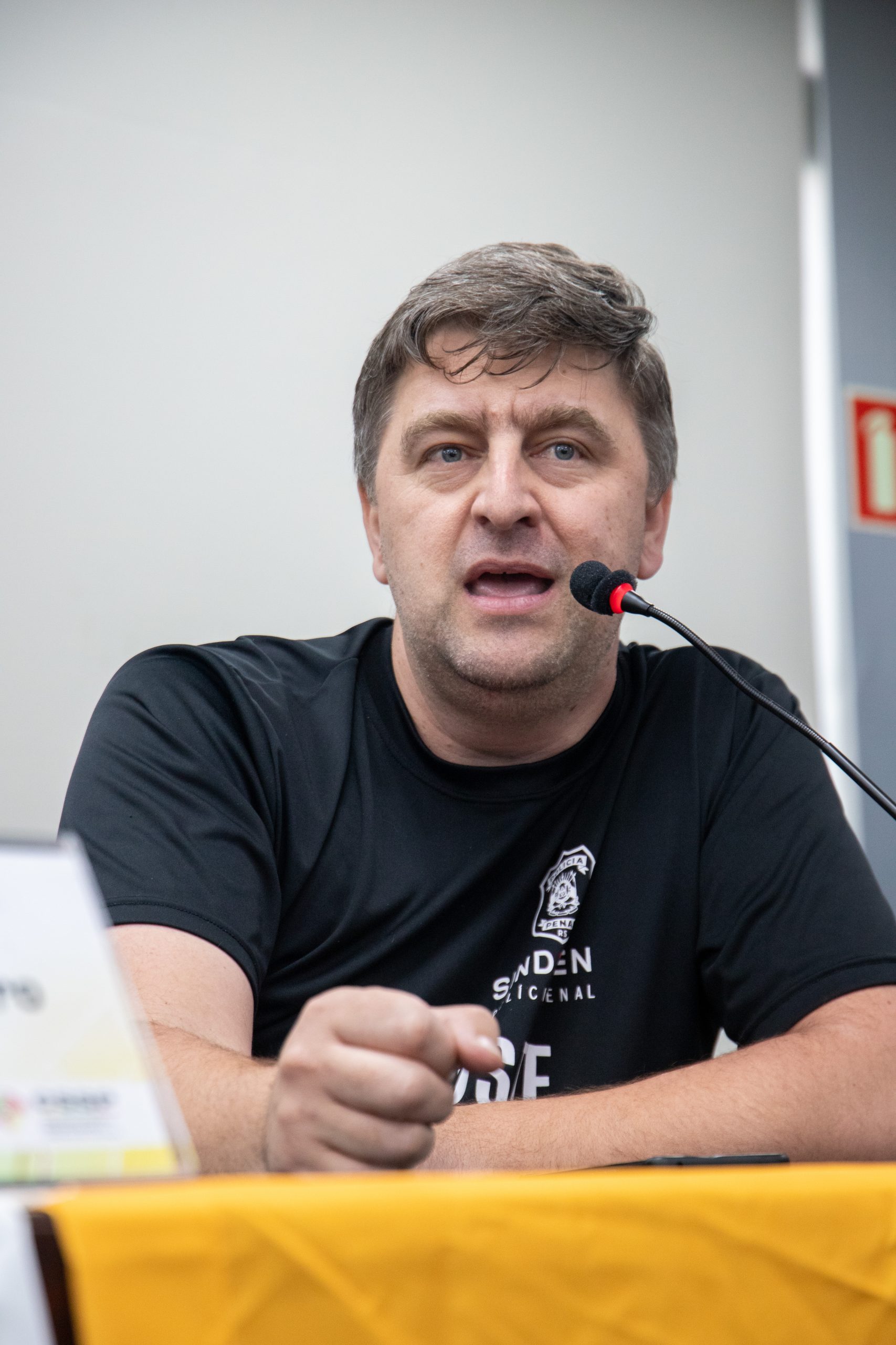 A presidente do Sindicato, Rosane Zan, compôs a mesa do encontro e usou o espaço para denunciar as políticas de afronta à categoria nos últimos anos, sob ordens do governador Eduardo Leite (PSD), que frequentemente afirma priorizar a educação: “Saúdo em especial os professores e funcionários de escola, tanto da ativa quanto aposentados, que estão hoje aqui, e que entendem toda essa agrura que a gente viveu no último período. Nós da educação, temos sofrido ataques em todos os âmbitos, não somente nas questões salariais. Vivemos, no último período, uma grande miserabilidade. Eu acredito que todos nós, servidores públicos, precisamos da unidade entre nós, independente das nossas diferenças de condução e luta. Estamos juntos e vamos continuar na luta!”
