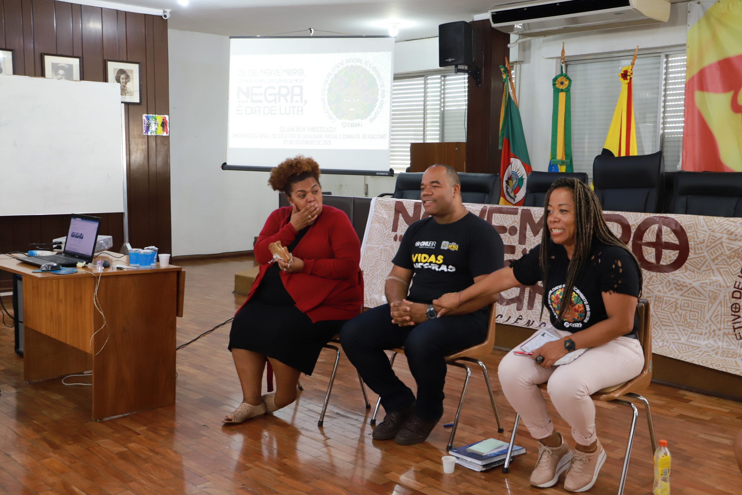 Nesta quarta-feira (27), dezenas de educadoras(es), representantes dos 42 núcleos do Sindicato, participaram do Encontro do Coletivo de Igualdade Racial e Combate ao Racismo. A atividade ocorreu no 9º andar da sede do CPERS, ao longo do dia.