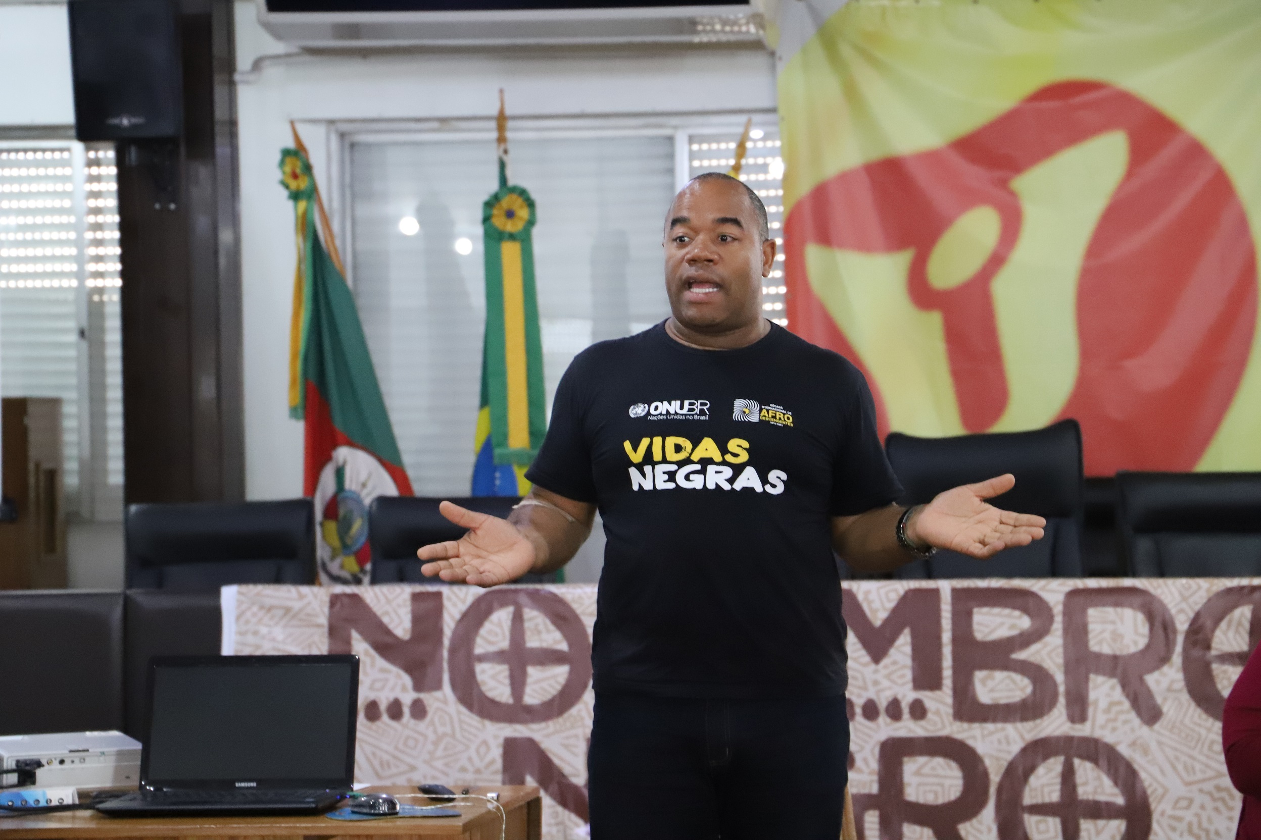 “Nós, sindicalistas, entendemos que o sindicato é uma escola. Aqui, entendemos como a sociedade se organiza e se agrega. Nós precisamos nos ver como iguais. Estamos aqui para aprender que racismo não é um preconceito, é uma violência. Vocês são lideranças, têm que exigir que dentro de cada escola se adote uma postura anti-racista. Temos que nos enxergar como elementos fundamentais dentro da sociedade”, finalizou.