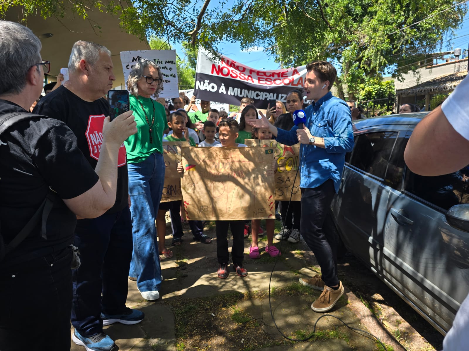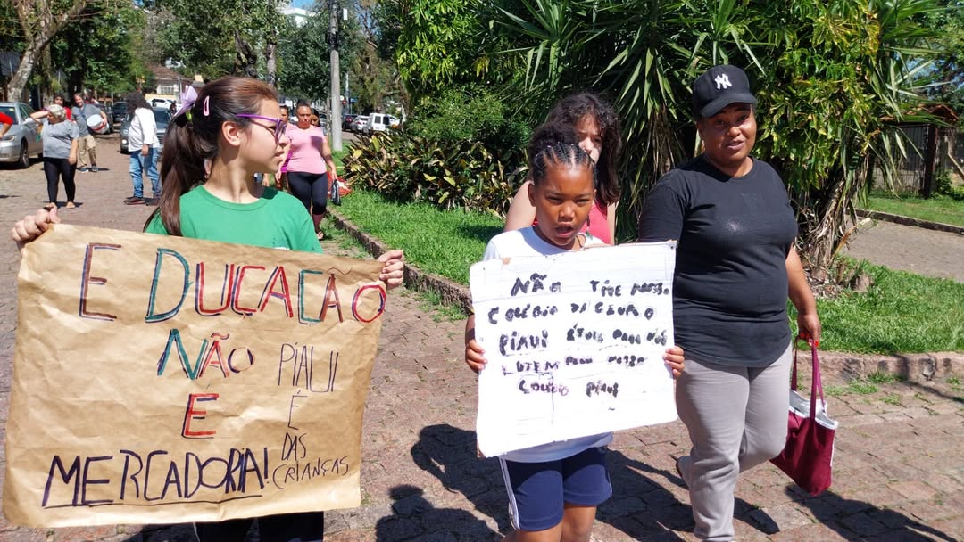 Nesta quinta-feira (9), pais, estudantes, professoras(es), funcionárias(os) e toda a comunidade escolar realizaram uma mobilização em protesto contra a suspensão das matrículas para o 1º ano do Ensino Fundamental na EEEF Piauí, a partir de 2026. Estavam presentes na mobilização as(os) diretoras(es) do CPERS, Joara Dutra Vieira e Elbe Rafael Marques Belardinelli; e a diretora do 39º Núcleo do Sindicato, Neiva Lazzarotto, que se somaram à comunidade na luta contra mais um retrocesso imposto pelo governo Eduardo Leite (PSD).