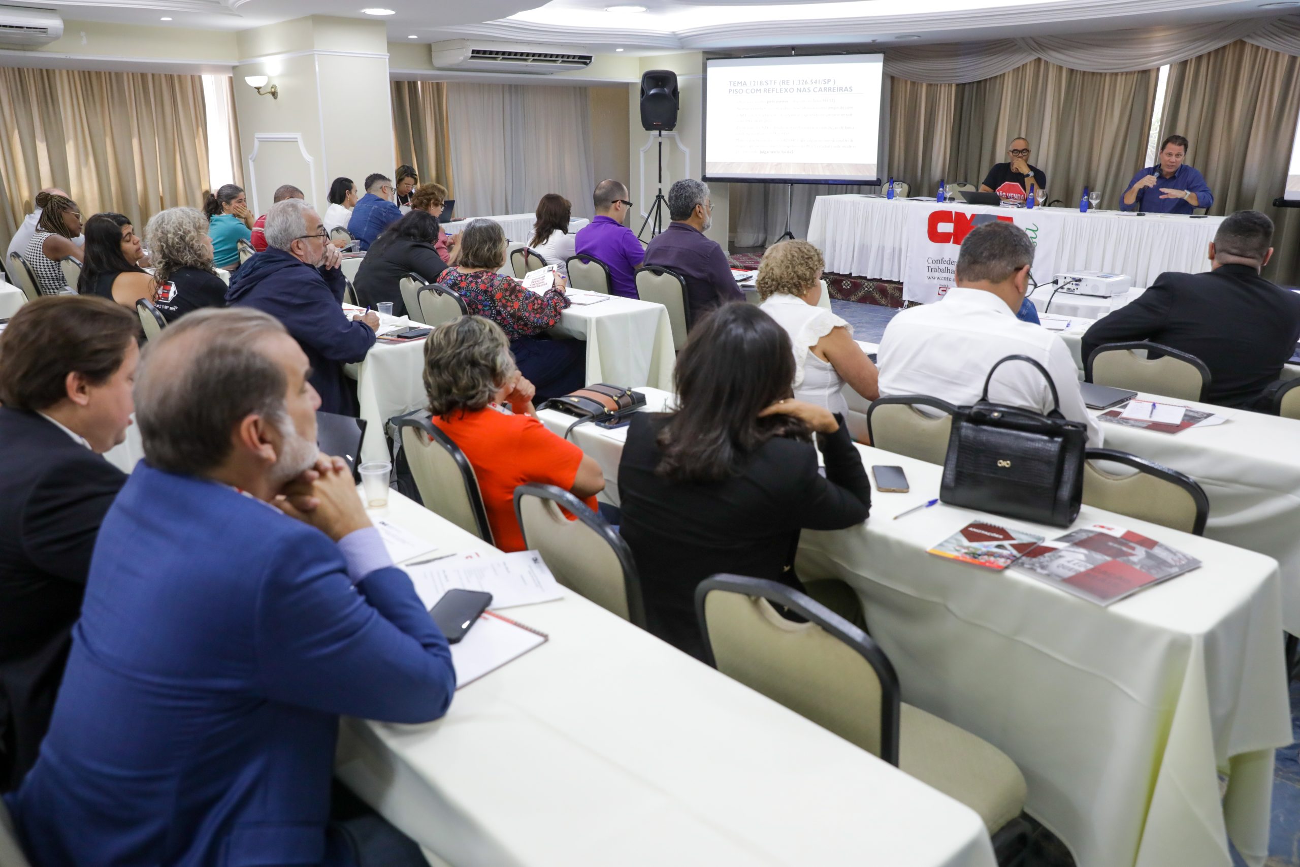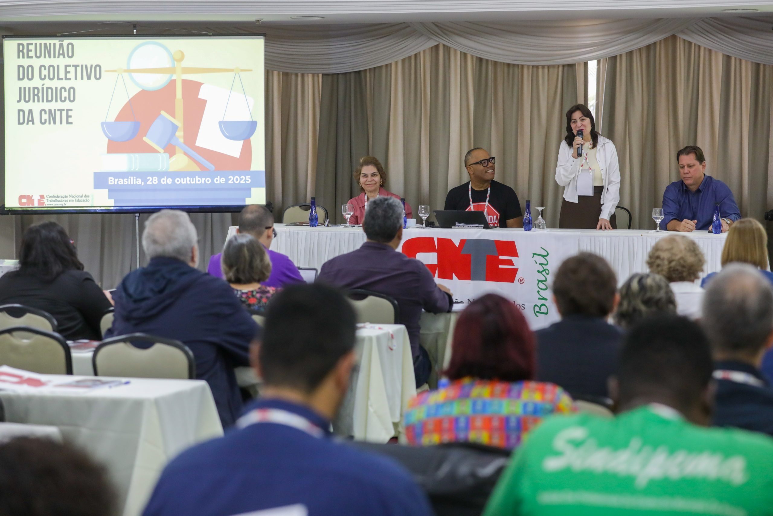 O encontro reuniu advogados/as das entidades filiadas de todo o país, dirigentes e assessores para analisar a conjuntura jurídica e política da educação pública, com destaque para as ações que tratam do piso do magistério, da valorização profissional, da carreira e da defesa do serviço público.