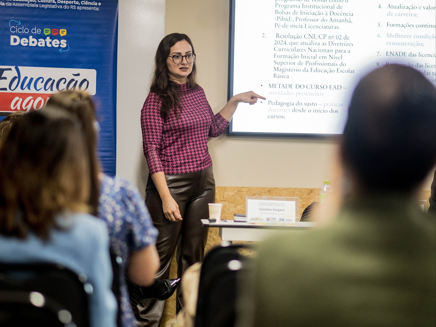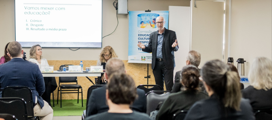 Na última sexta-feira (10), o CPERS, representado pelo diretor Guilherme Bourscheid, marcou presença no ciclo de debates “Educação Agora”, realizado no Parque Científico e Tecnológico, em Pelotas. O encontro, promovido pela Comissão de Educação, Cultura, Desporto, Ciência e Tecnologia da Assembleia Legislativa do Rio Grande do Sul, teve como tema central a “Formação e Valorização dos Profissionais da Educação Básica”.