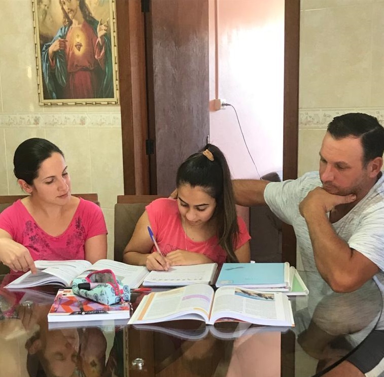“Sempre ajudamos a Victória. Desde que a escola fechou esse é o nosso dever como pais”, contam André Pedro Bufon e Geise Oliveira, agricultores que não pararam de trabalhar com a pandemia.