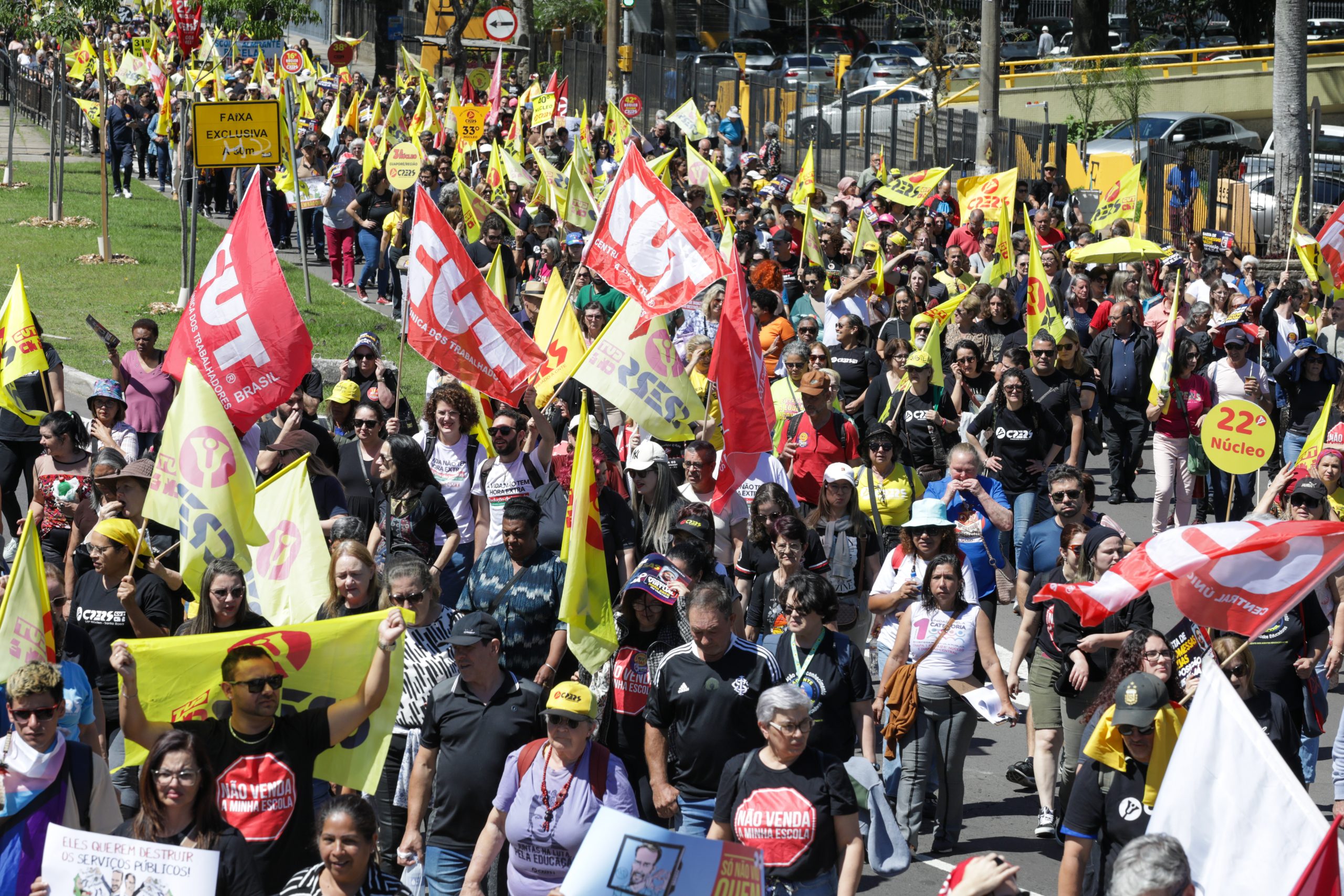 Com garra e determinação, milhares de educadoras e educadores de todo o Rio Grande do Sul tomaram as ruas de Porto Alegre, na manhã desta terça-feira (11), em um grande ato convocado pelo CPERS. A mobilização cobrou a reposição salarial de 15,2% para todas(os) as(os) trabalhadoras(es) da educação – da ativa e aposentadas(os) –, a aprovação da emenda do CPERS à Lei Orçamentária Anual (LOA) de 2026 e a defesa de um IPE Saúde público e de qualidade.