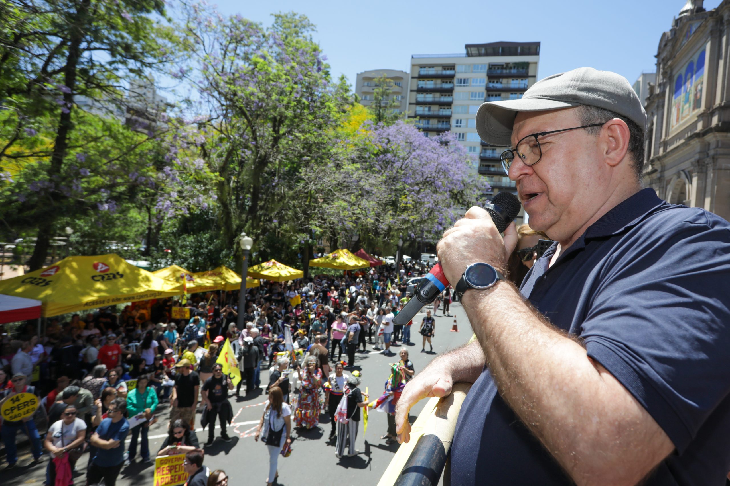 “Os servidores do Rio Grande do Sul precisam intensificar a luta contra a reforma administrativa e em defesa da estabilidade. O governador quer acabar com o serviço público”, alertou Érico Corrêa, presidente do Sindicaixa, que integra a Frente dos Servidores.