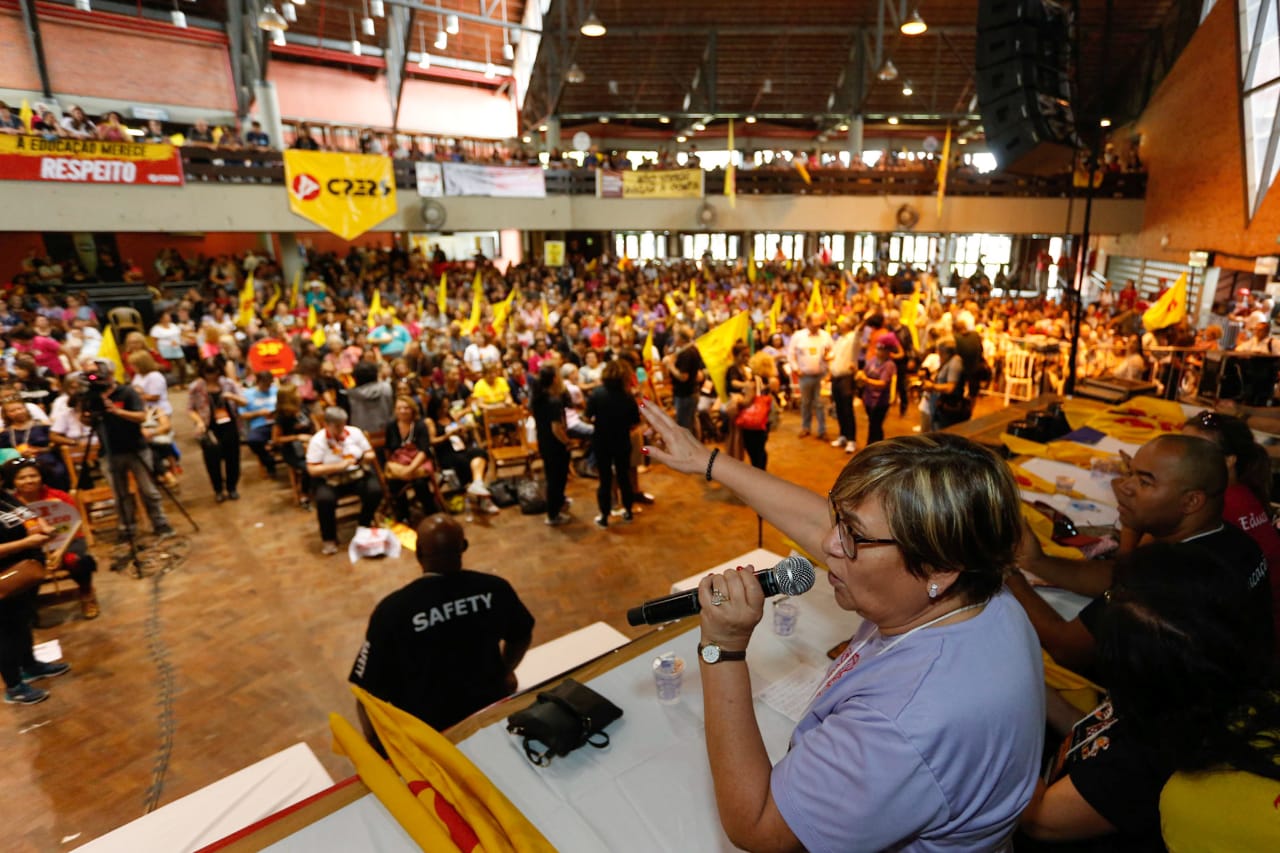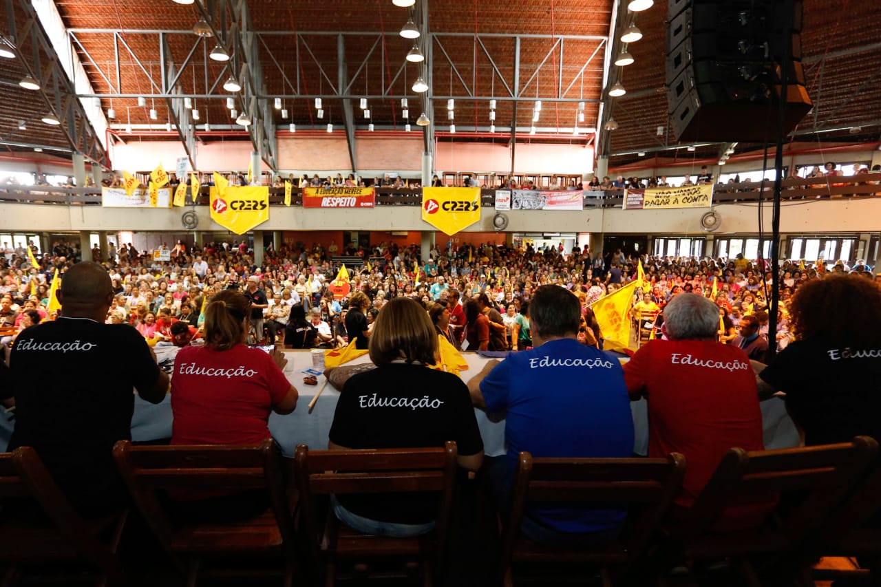 Cerca de 4 mil educadores(as) aprovaram em Assembleia Geral, nesta sexta-feira (12), a pauta de reivindicações da categoria. Reposição emergencial das perdas inflacionárias dos últimos quatro anos, pagamento em dia e realização de concursos públicos para professores(as) e funcionários(as) estão entre as exigências.
