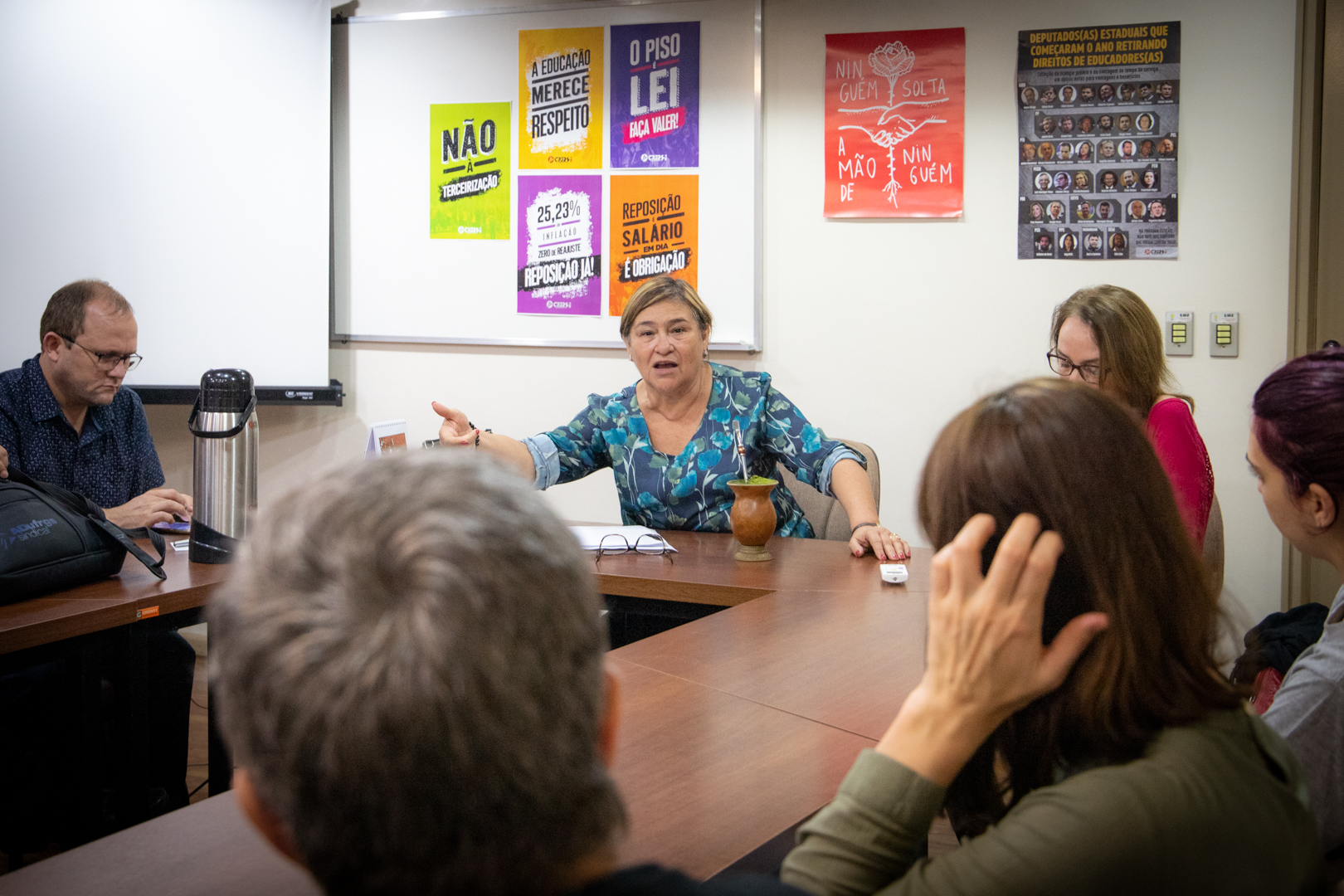 “Como professores estaduais, não temos como deixar de falar dos ataques à universidade pública. Nós trabalhamos para que os alunos acessem o ensino superior e o povo precisa entender que estão atacando o futuro dos seus filhos”, explica a presidente do CPERS, Helenir Aguiar Schürer.