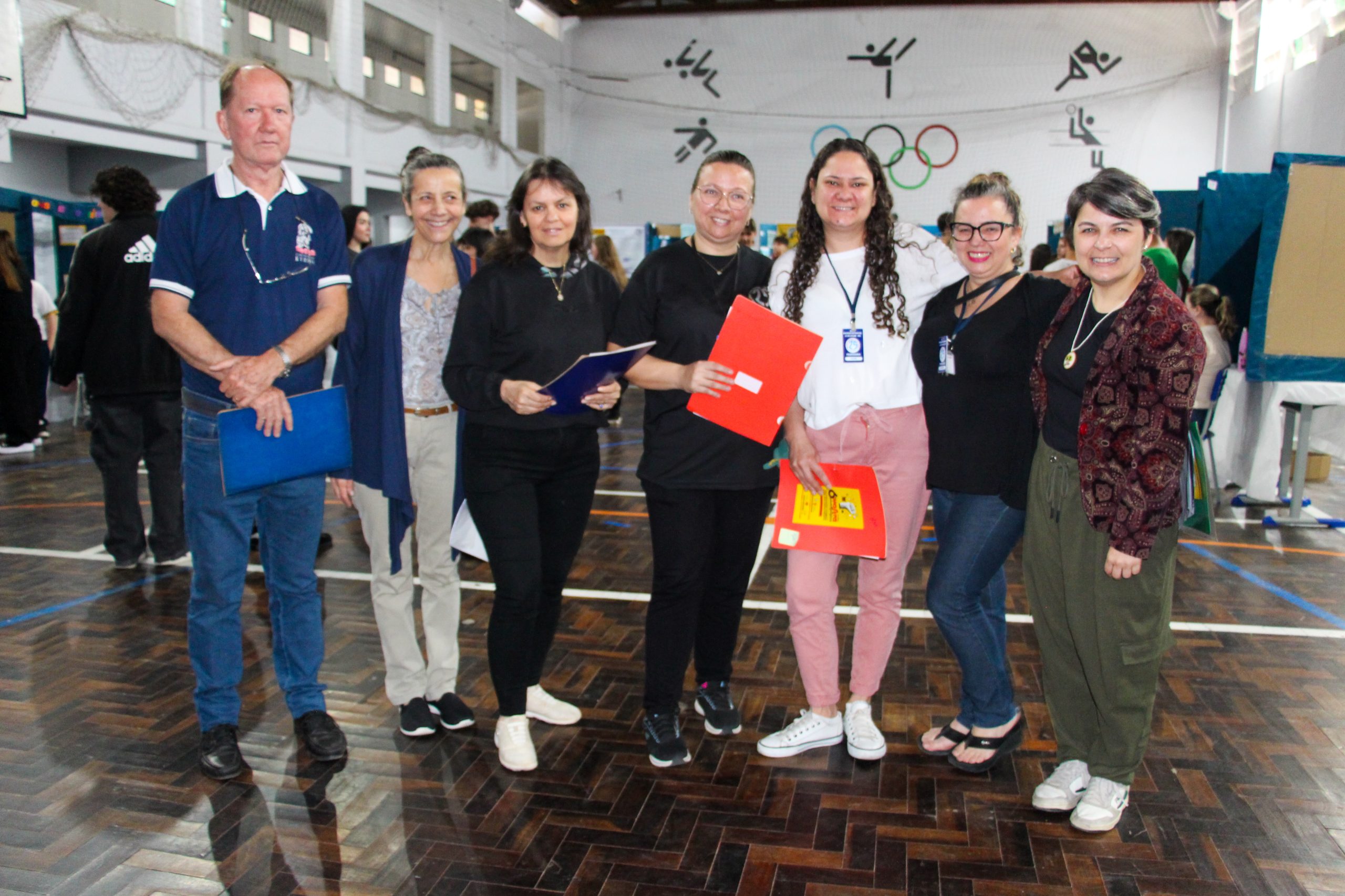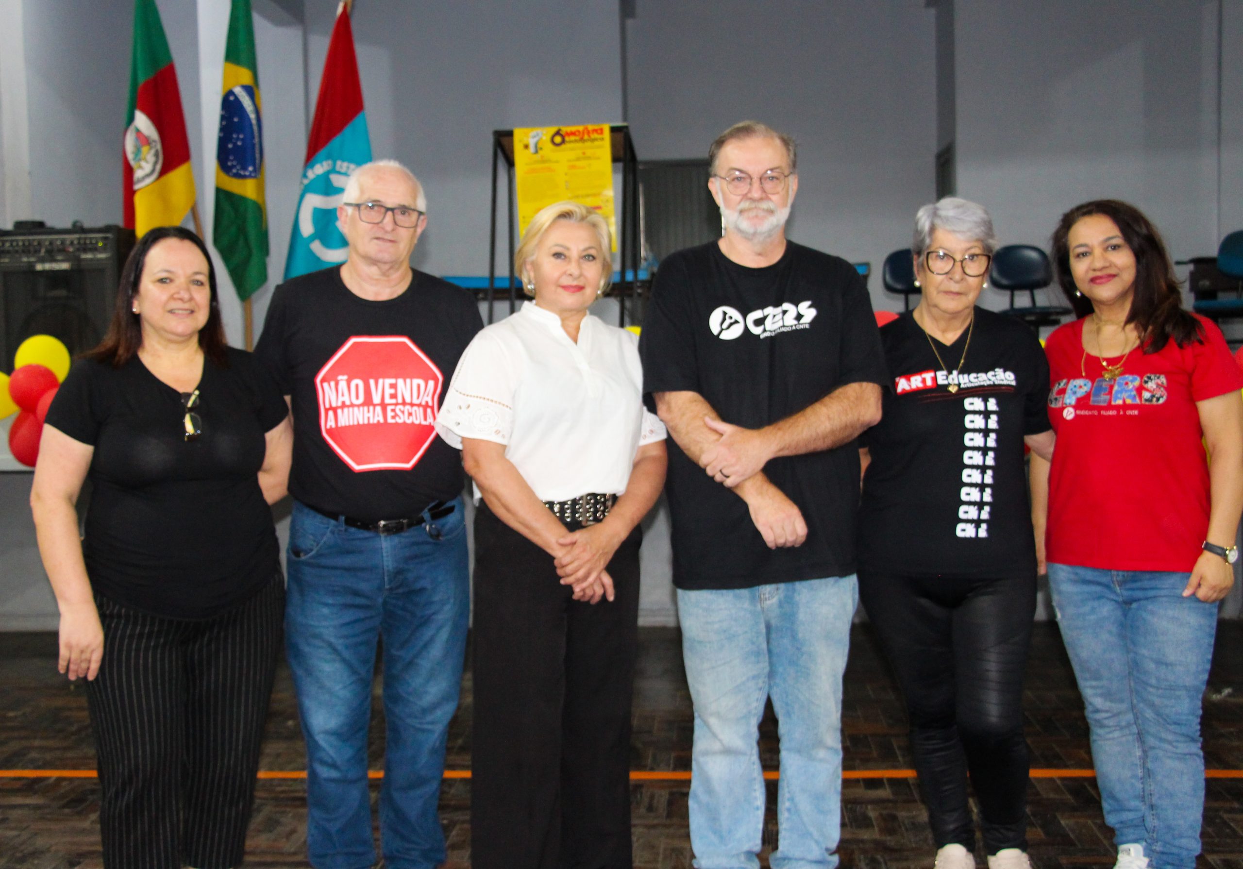 Hoje não foi diferente: em Novo Hamburgo, região do 14° Núcleo do CPERS, o CE 25 de Julho recebeu as diretoras Juçara Borges e Sandra Beatriz Silveira, além do diretor Luiz Henrique Becker, para mais uma etapa da Mostra, que contou com trabalhos que estimulam o protagonismo das(os) estudantes e destacam o papel da escola pública na formação cidadã.