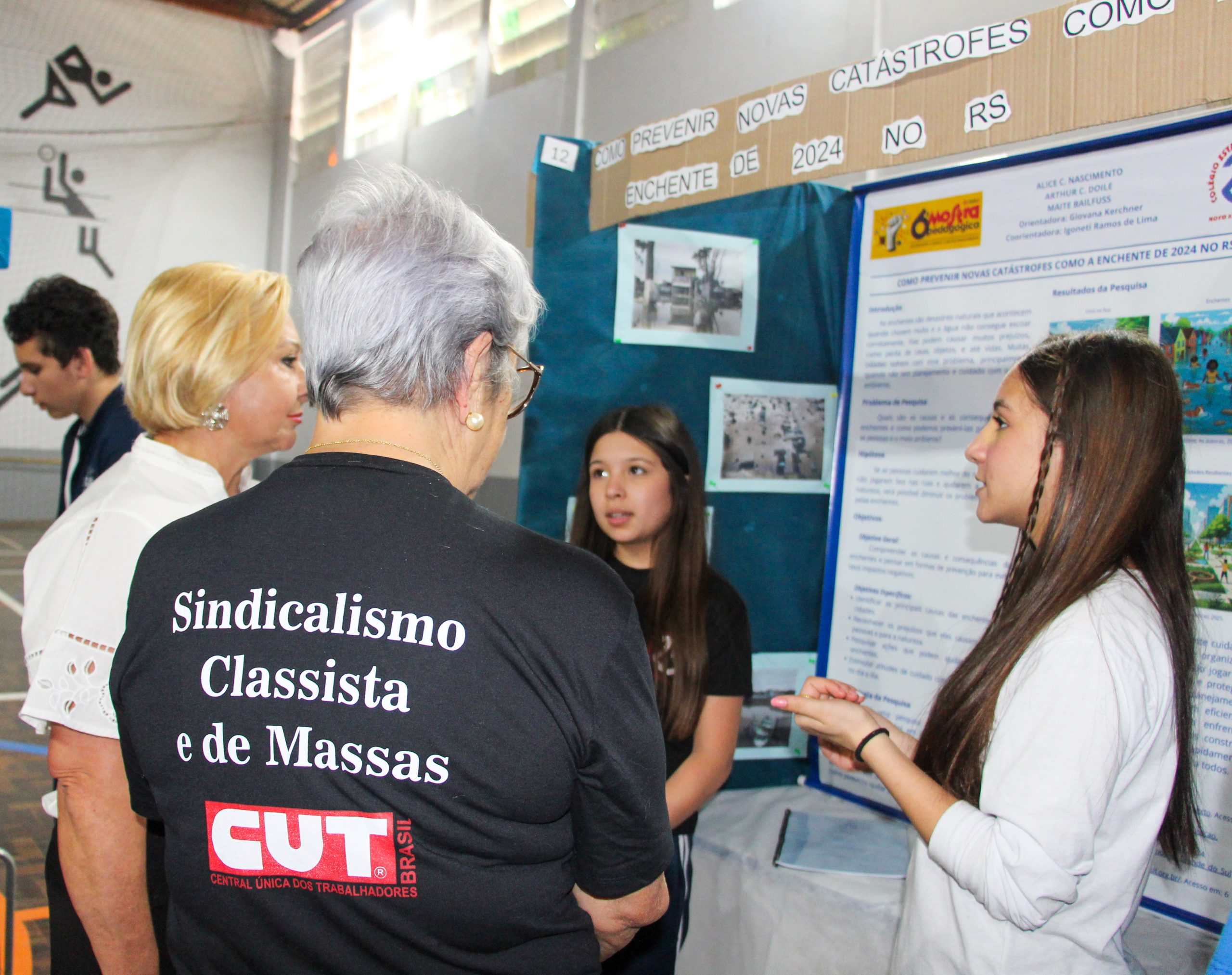O diretor Luiz Henrique Becker também fez importantes contribuições: “Já inicio minha fala parabenizando pela qualidade do ensino que os professores, a direção, os funcionários, e toda a equipe conseguem realizar aqui nesta escola. Obviamente, sabemos que, além da formação qualificada da equipe pedagógica, é essencial algo que vocês estão demonstrando agora: alunas e alunos conscientes da importância da produção do conhecimento e da pesquisa.”