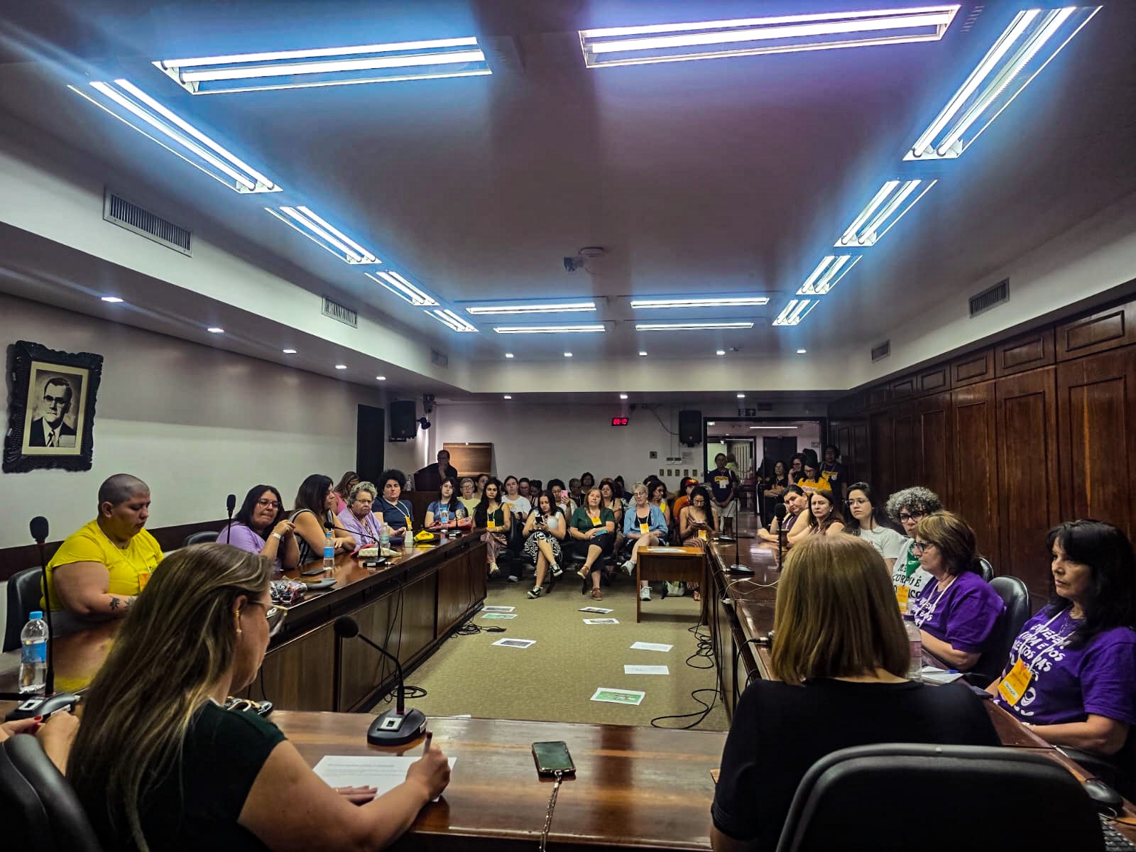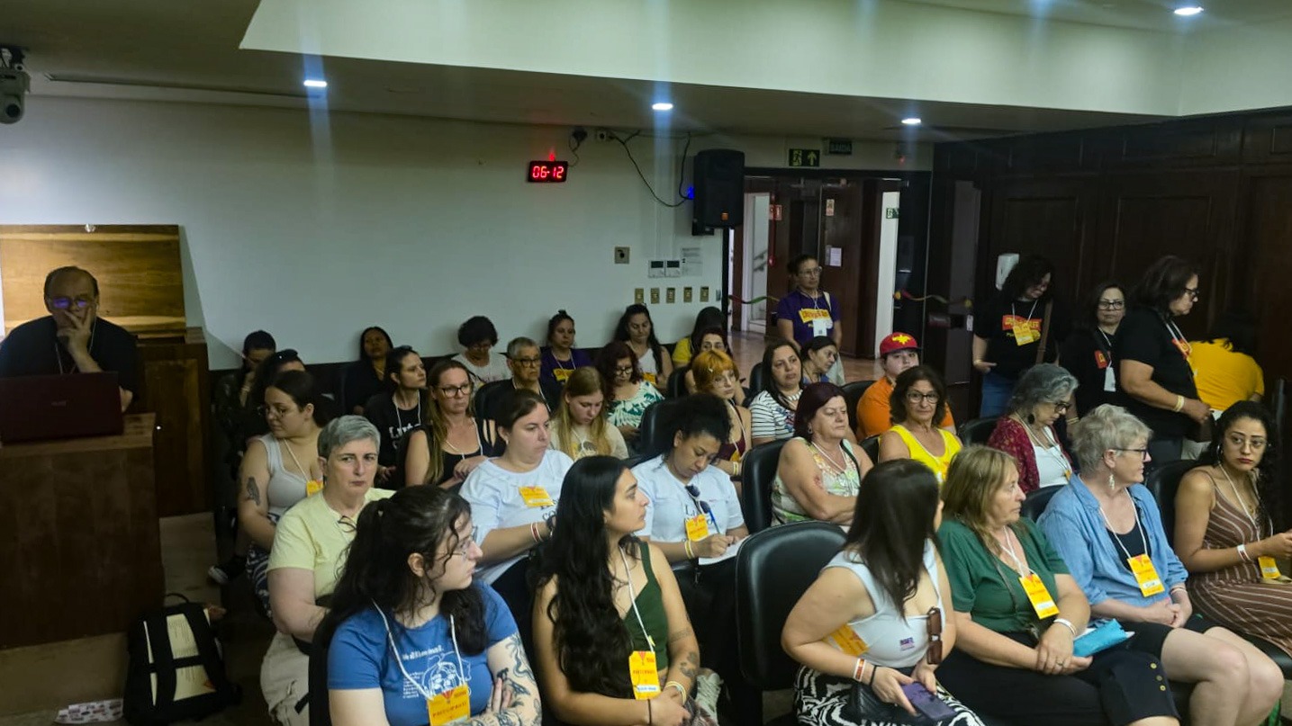 A mesa debateu a necessidade de proteção dos direitos das mulheres, o enfrentamento da violência de gênero e o fortalecimento de políticas efetivas que garantam igualdade, segurança e respeito nos ambientes educacionais e na sociedade.