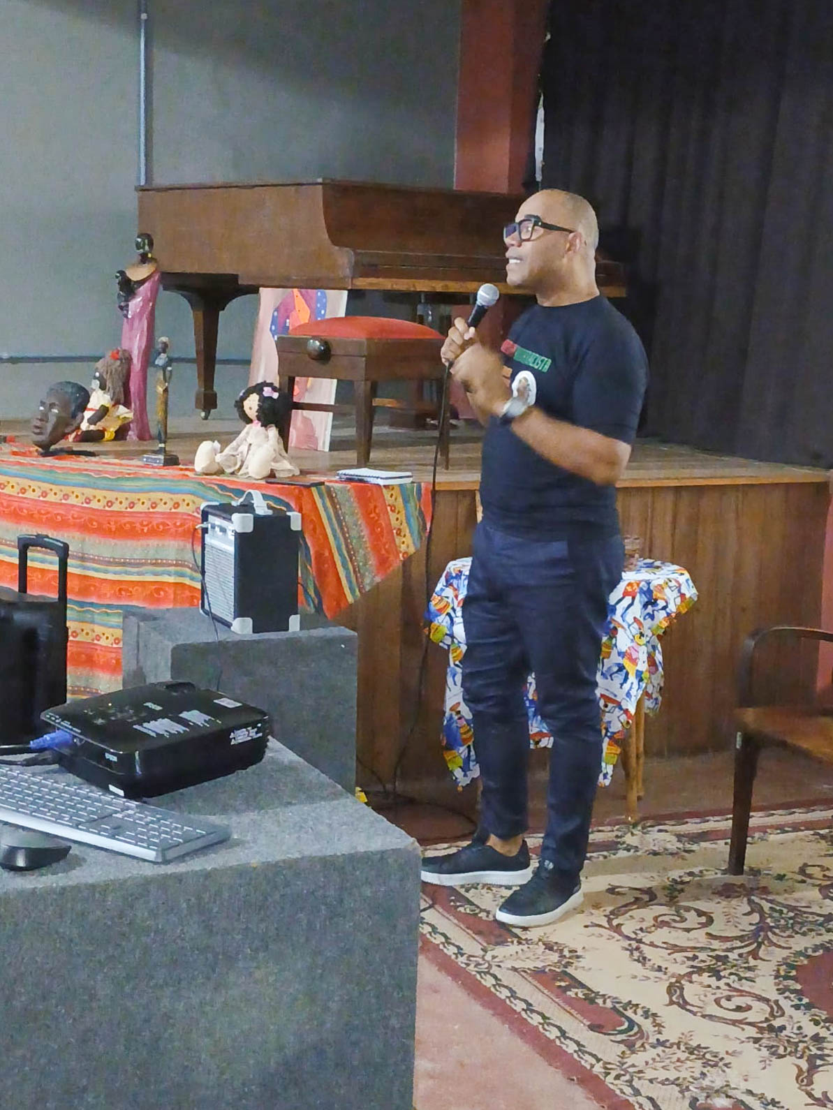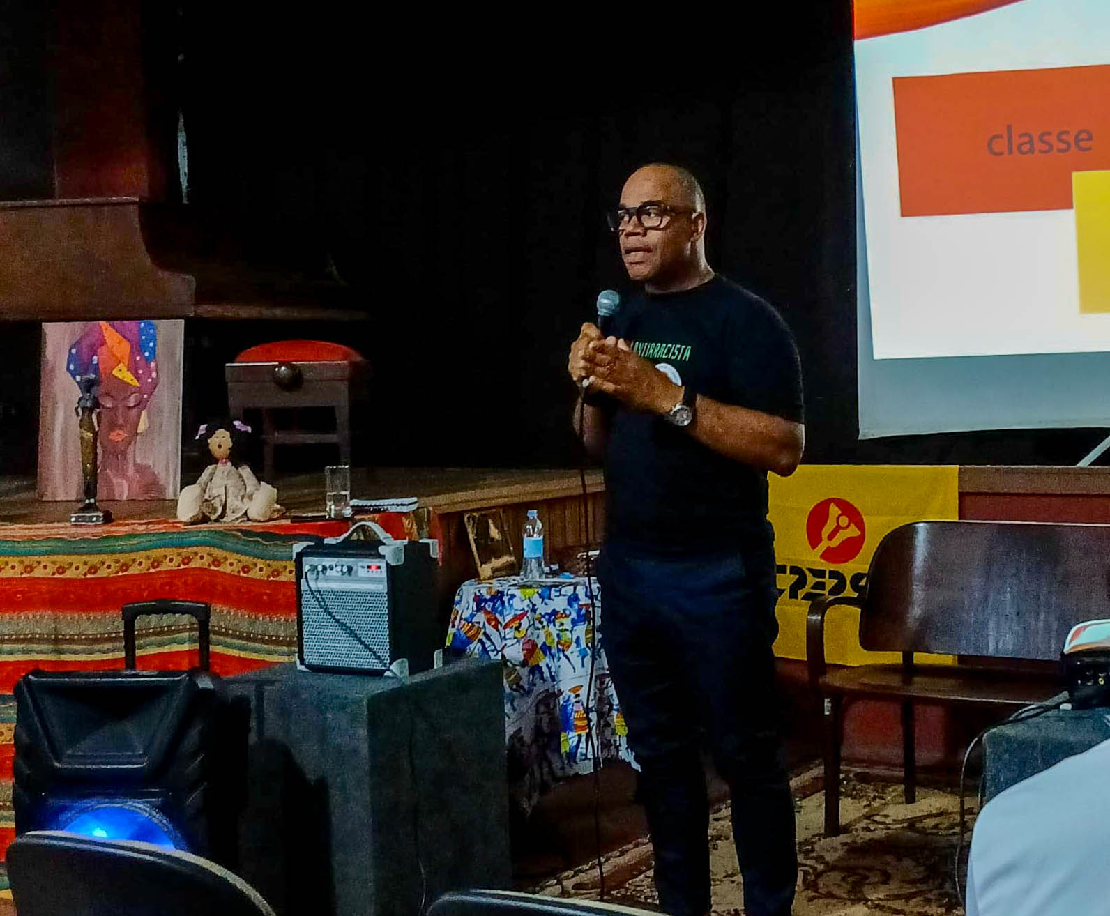 Durante sua apresentação, intitulada “A luta antirracista e seus efeitos na educação pública”, o educador analisou as consequências estruturais do racismo e seus impactos na educação, evidenciando a necessidade de práticas pedagógicas cotidianas que abordem temáticas afirmativas e transformadoras, capazes de resgatar a valorização da ancestralidade e da resistência por meio da representatividade. Edson ainda destacou que o ensino deve abarcar todas as dimensões do tema, perpassando o contexto social e histórico, e atuar de forma efetiva no presente, promovendo uma intervenção significativa na realidade.