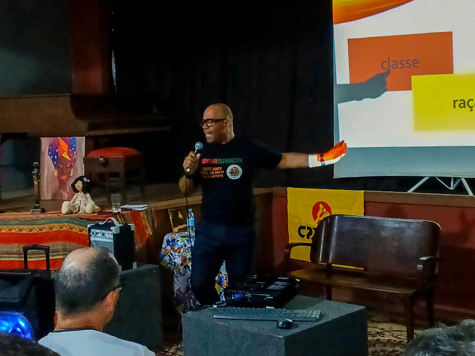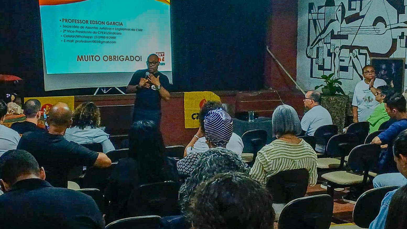 Com o auditório lotado, o evento contou com a presença do 2º vice-presidente do CPERS e coordenador do Coletivo Estadual de Igualdade Racial, Edson Garcia, que destacou a importância de fortalecer políticas públicas de combate ao racismo e de ampliar ações efetivas dentro e fora dos ambientes escolares.