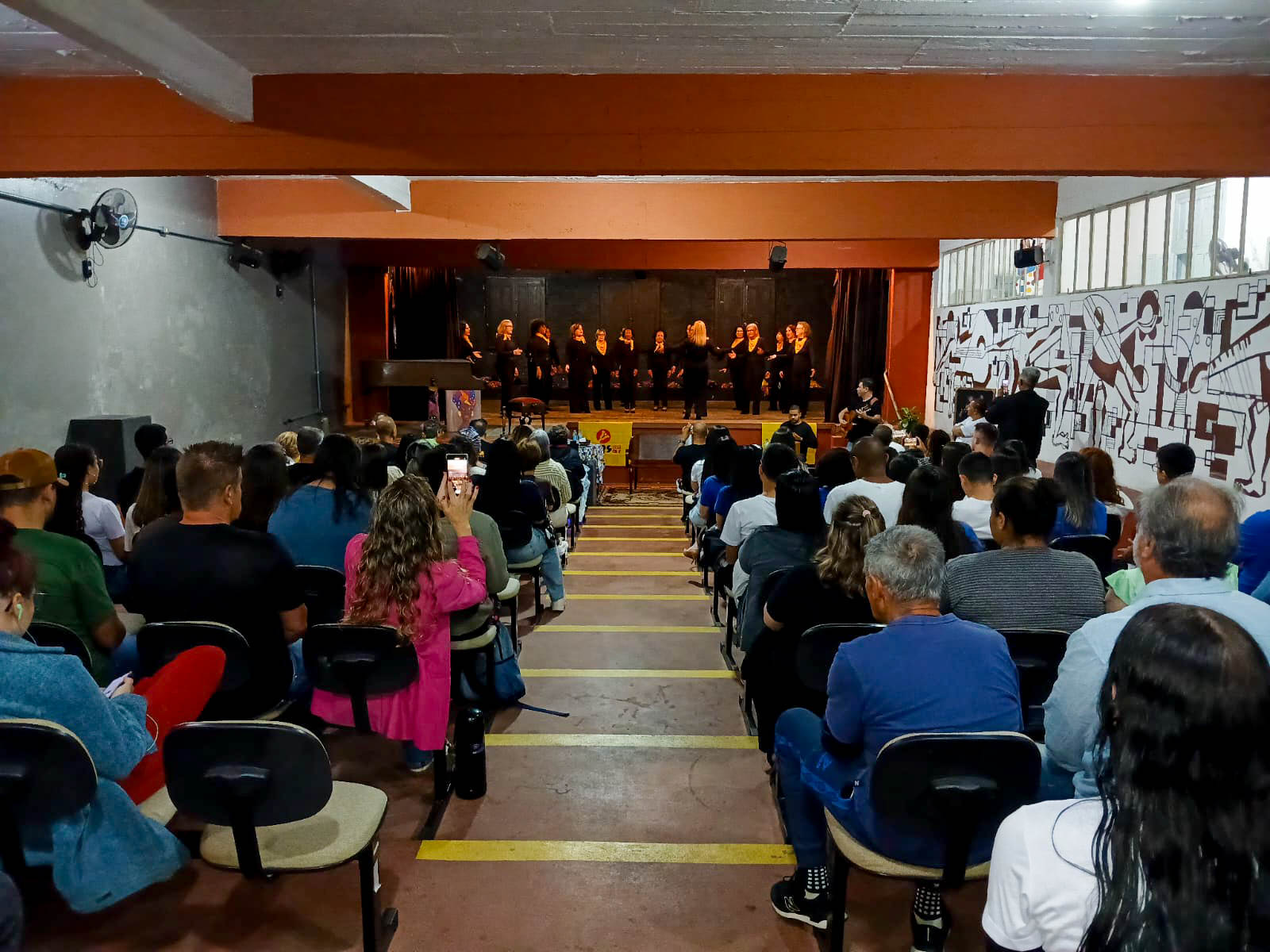 A atividade, realizada na Casa de Cultura Paulo Salzano Vieira da Cunha, reuniu membros das comunidades escolares e a sociedade em geral, reforçando o debate sobre o enfrentamento e o combate ao racismo e enfatizando a urgência de uma educação antirracista em todos os espaços coletivos.