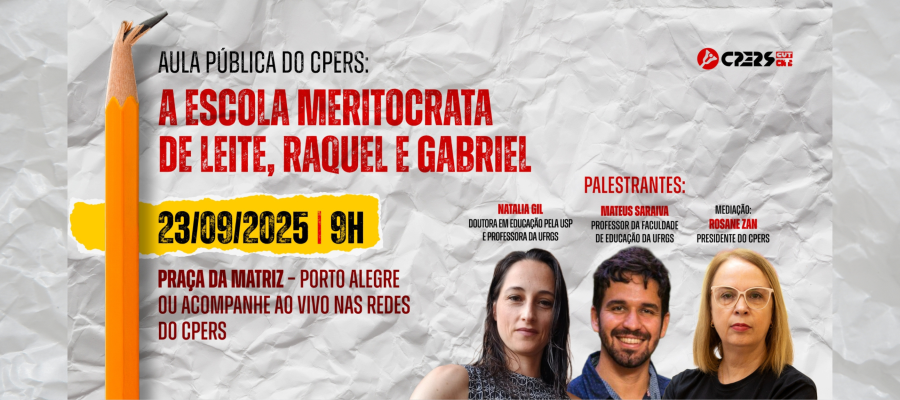 O quê? Aula Pública do CPERS: a escola meritocrata de Leite, Raquel e Gabriel