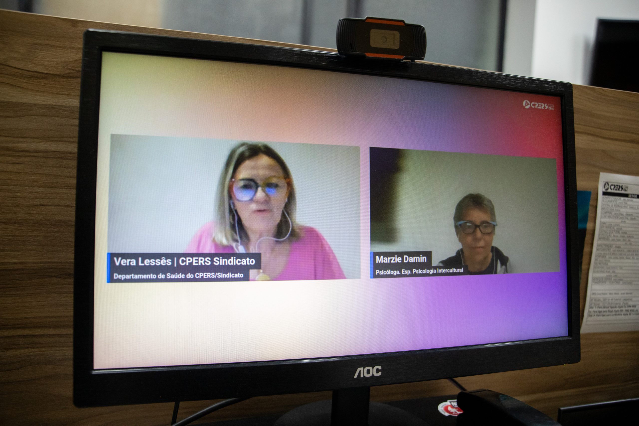 A live contou com a participação da psicóloga Marzie Damin, especialista em Psicologia Intercultural, que abordou os desafios enfrentados pelas mulheres na conciliação entre trabalho, autocuidado e vida pessoal. Também participaram a presidente do CPERS, Rosane Zan, e a coordenadora do Departamento de Saúde da(o) Trabalhadora(or), Vera Maria Lessês, que reforçaram o compromisso do Sindicato com a valorização e o bem-estar da categoria.