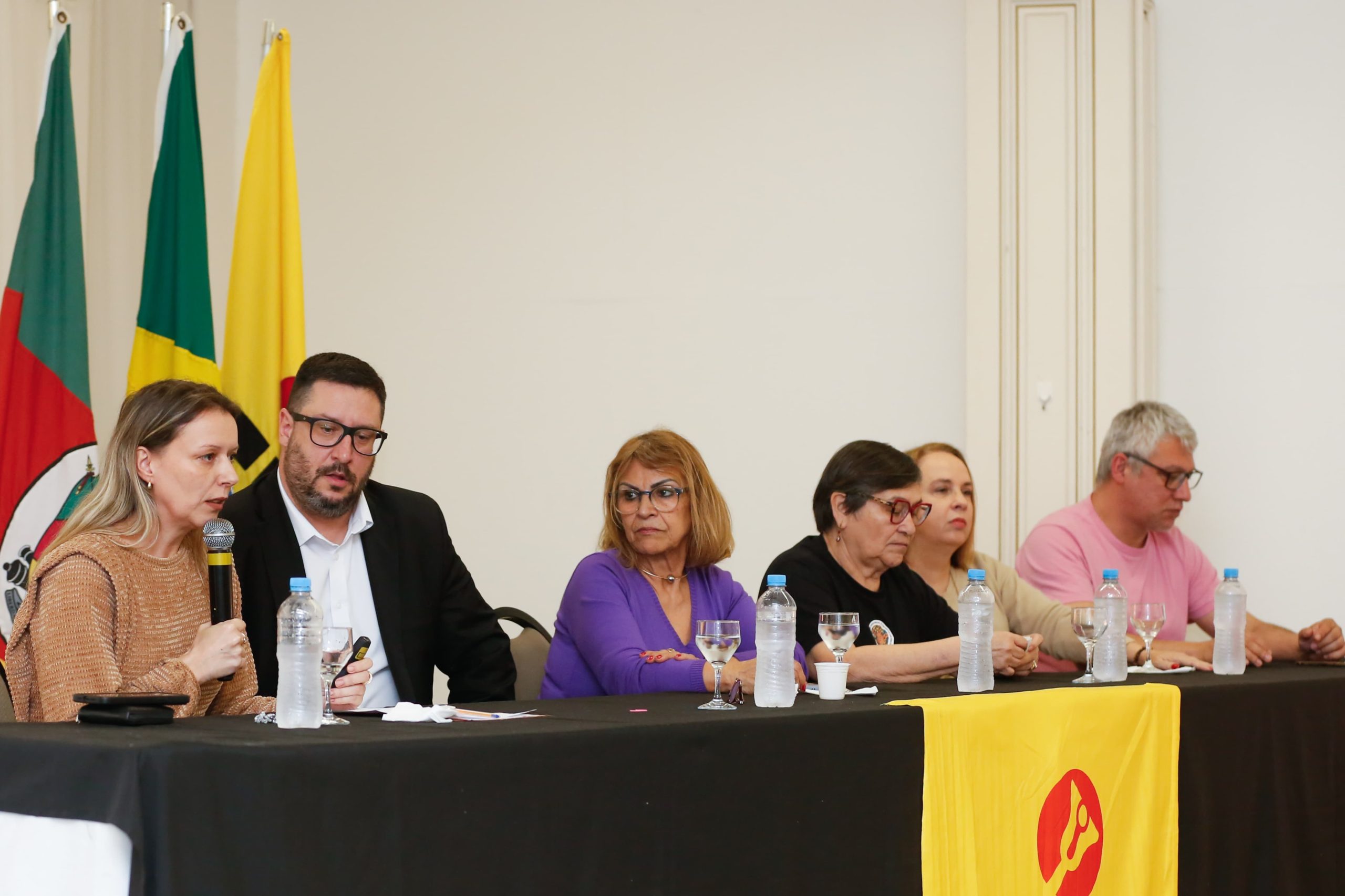 Também participaram da plenária representando a direção estadual do Sindicato, o 1° vice-presidente, Alex Saratt, a secretária-geral, Suzana Lauermann, a tesoureira-geral, Rosane Zan, e as(os) diretoras(es): Leonardo Preto Echevarria, Cássio Ritter, Sandra Regio, Sonia Solange Viana e Vera Lessês.