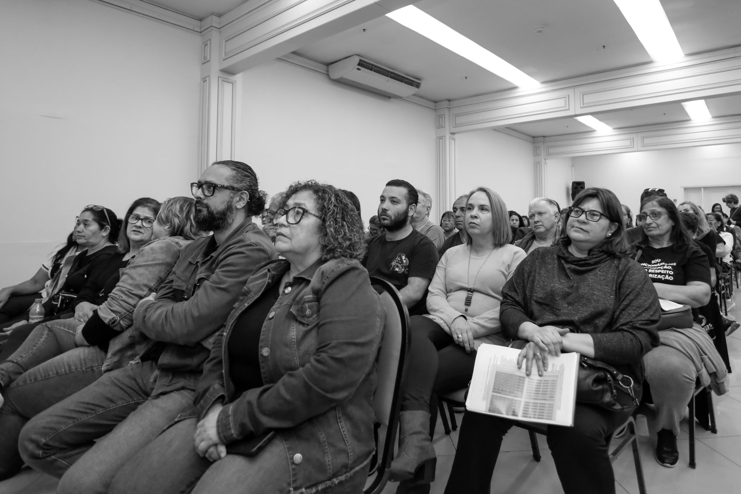 A Lei, que reestrutura as carreiras de agentes educacionais I e II, exclui cerca de 4 mil servidoras(es) de escola de diversos cargos. A plenária deste sábado (31) tinha o objetivo de debater os rumos da luta para a efetiva valorização salarial desta parcela da categoria.