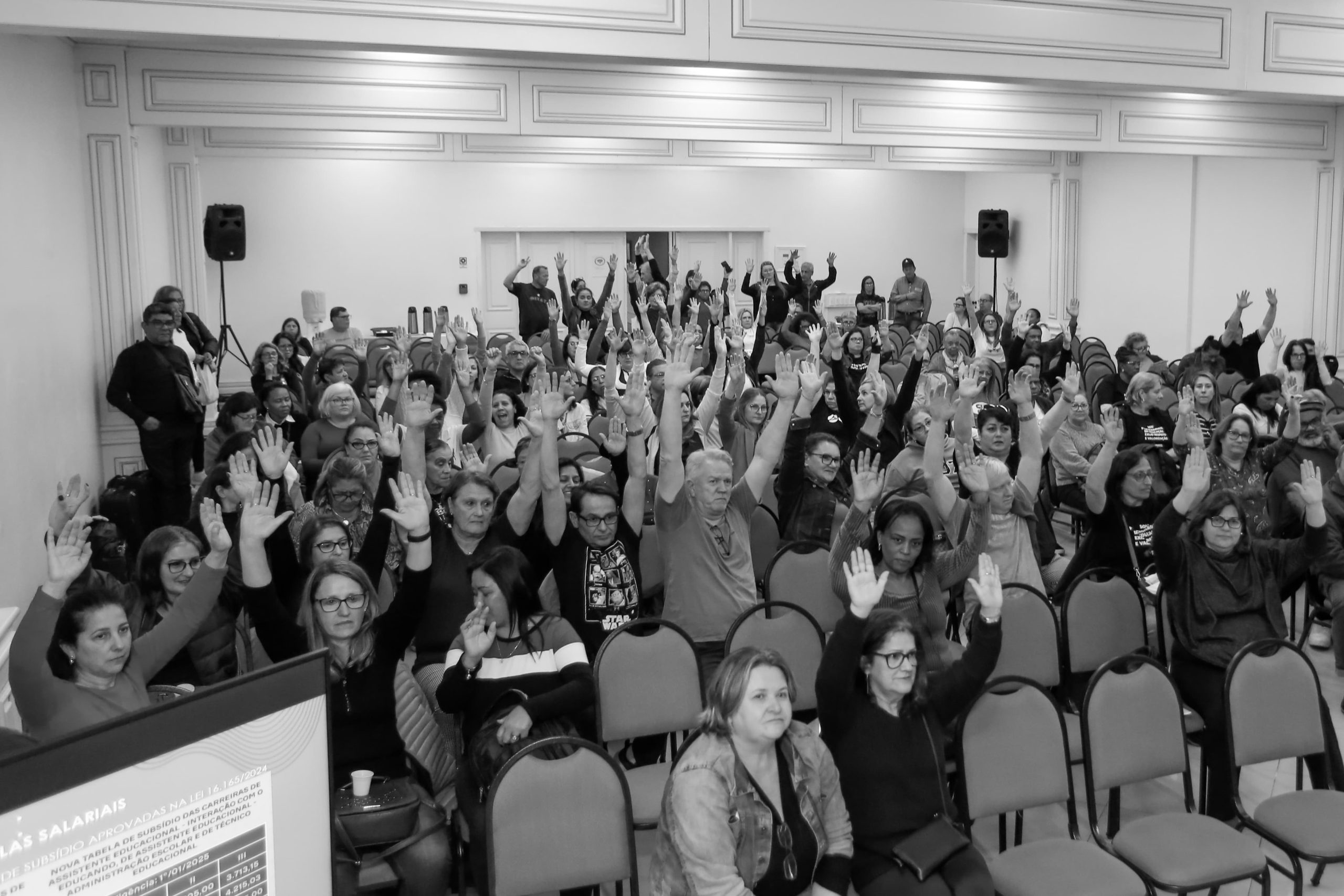 Neste sábado (31), o CPERS organizou uma importante plenária no Centro de Eventos do Hotel Continental, em Porto Alegre, que reuniu centenas de agentes educacionais de todo o Rio Grande do Sul para debater e ouvir as reivindicações em torno das funcionárias(os) de escola excluídas da Lei 16.165/2024 (PL 243). A legislação foi recentemente aprovada pela Assembleia Legislativa do Rio Grande do Sul (ALRS).