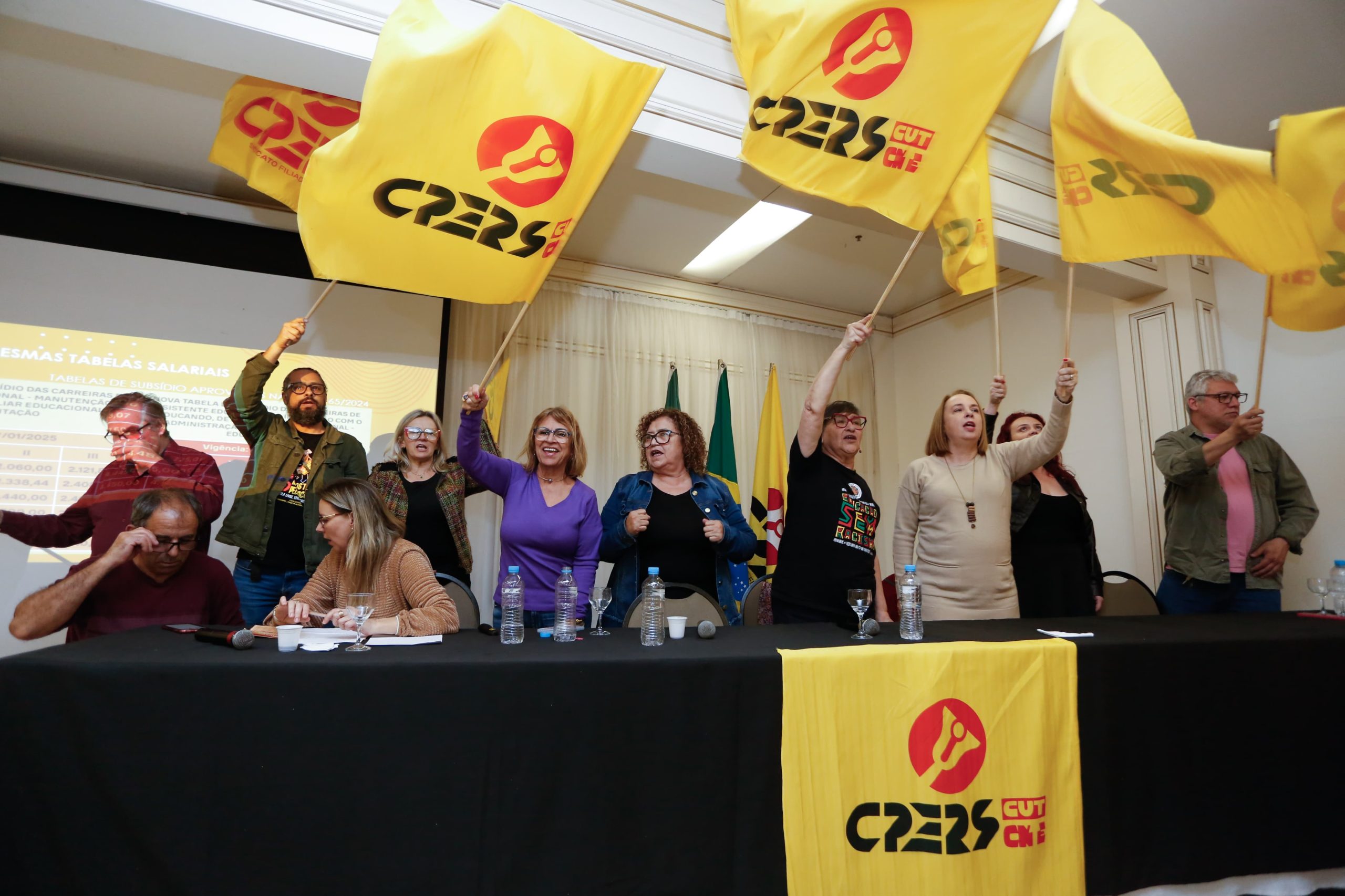 “Foi um belo debate, com muitos esclarecimentos e a retirada de posições importantes para o fortalecimento da luta em defesa dos direitos da categoria e daqueles funcionários que não foram incluídos na Lei 16.165. Saímos daqui com muita energia e com o comprometimento que vamos continuar uma luta forte e em conjunto para todos os funcionários”, ressaltou a presidente do CPERS, Helenir Aguiar Schürer.