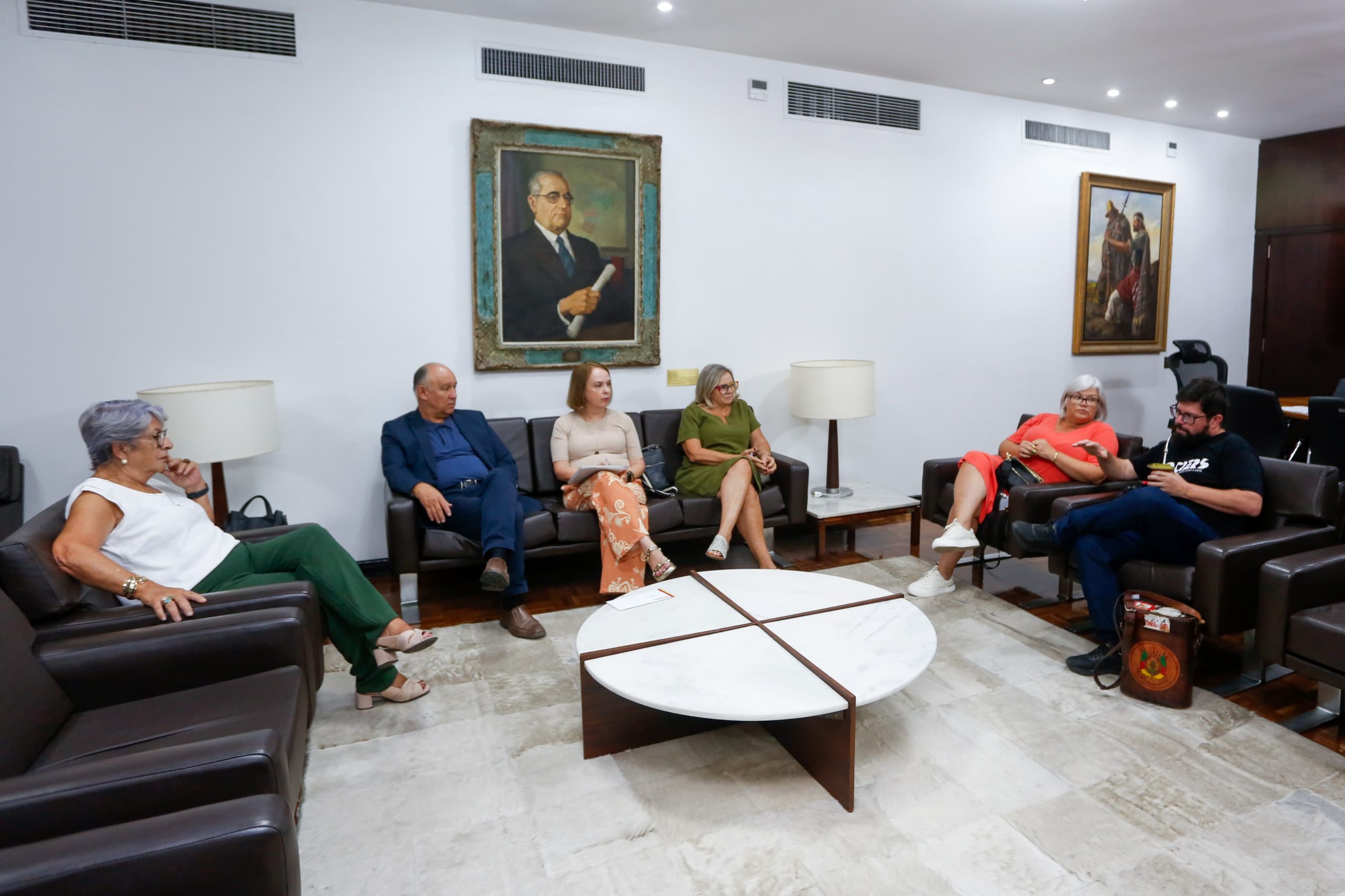 Representando o CPERS, também participaram da reunião as diretoras, Andréa Nunes, Juçara Borges e Vera Lessês, e o diretor, Guilherme Bourscheid.
