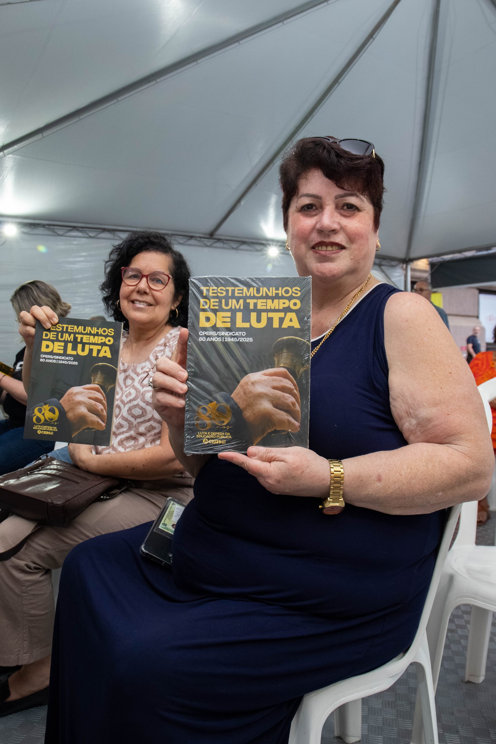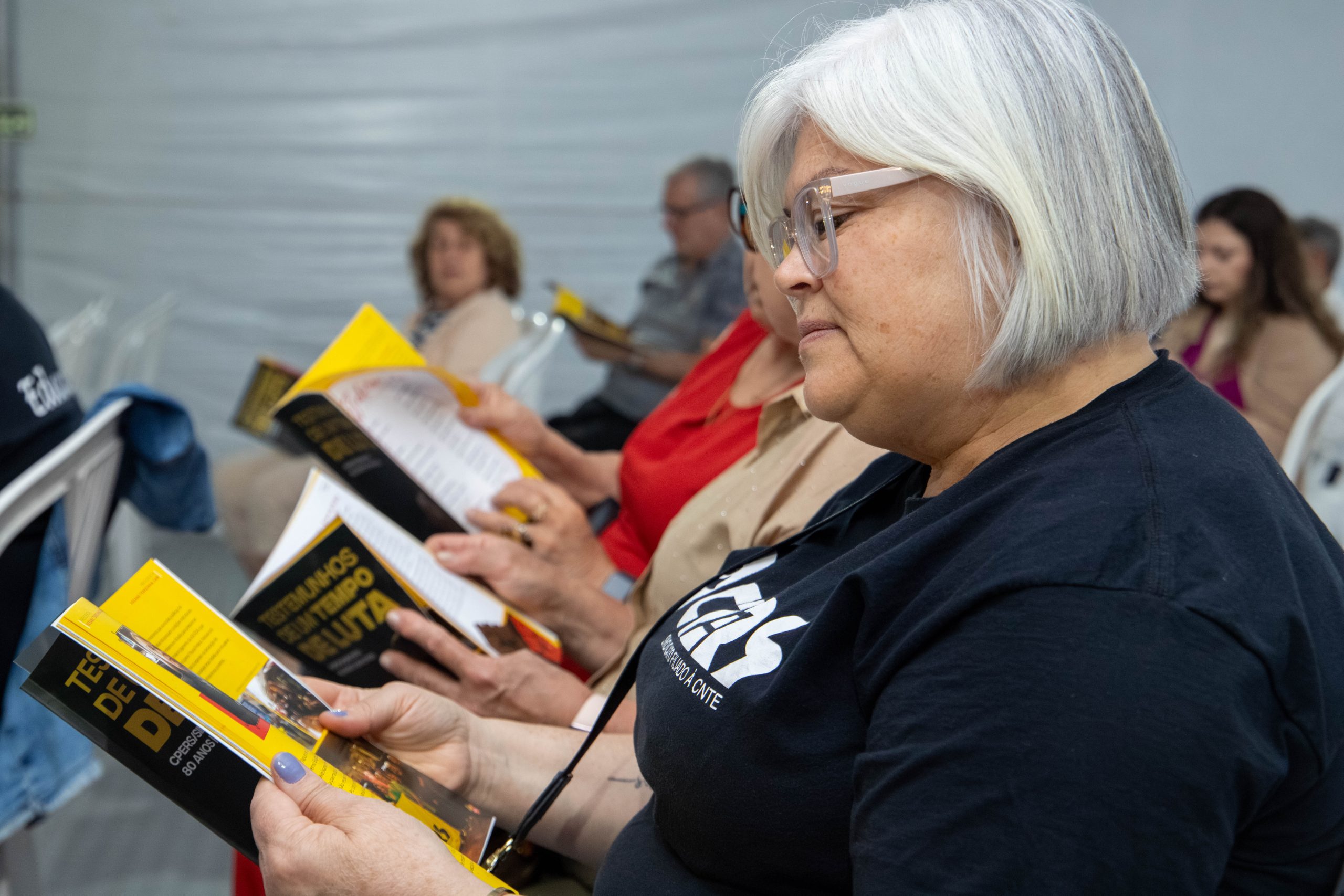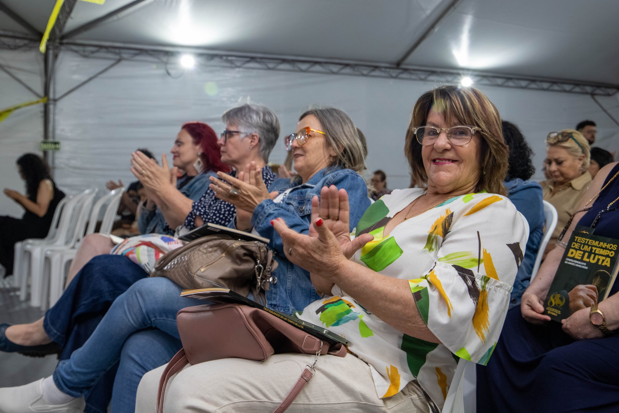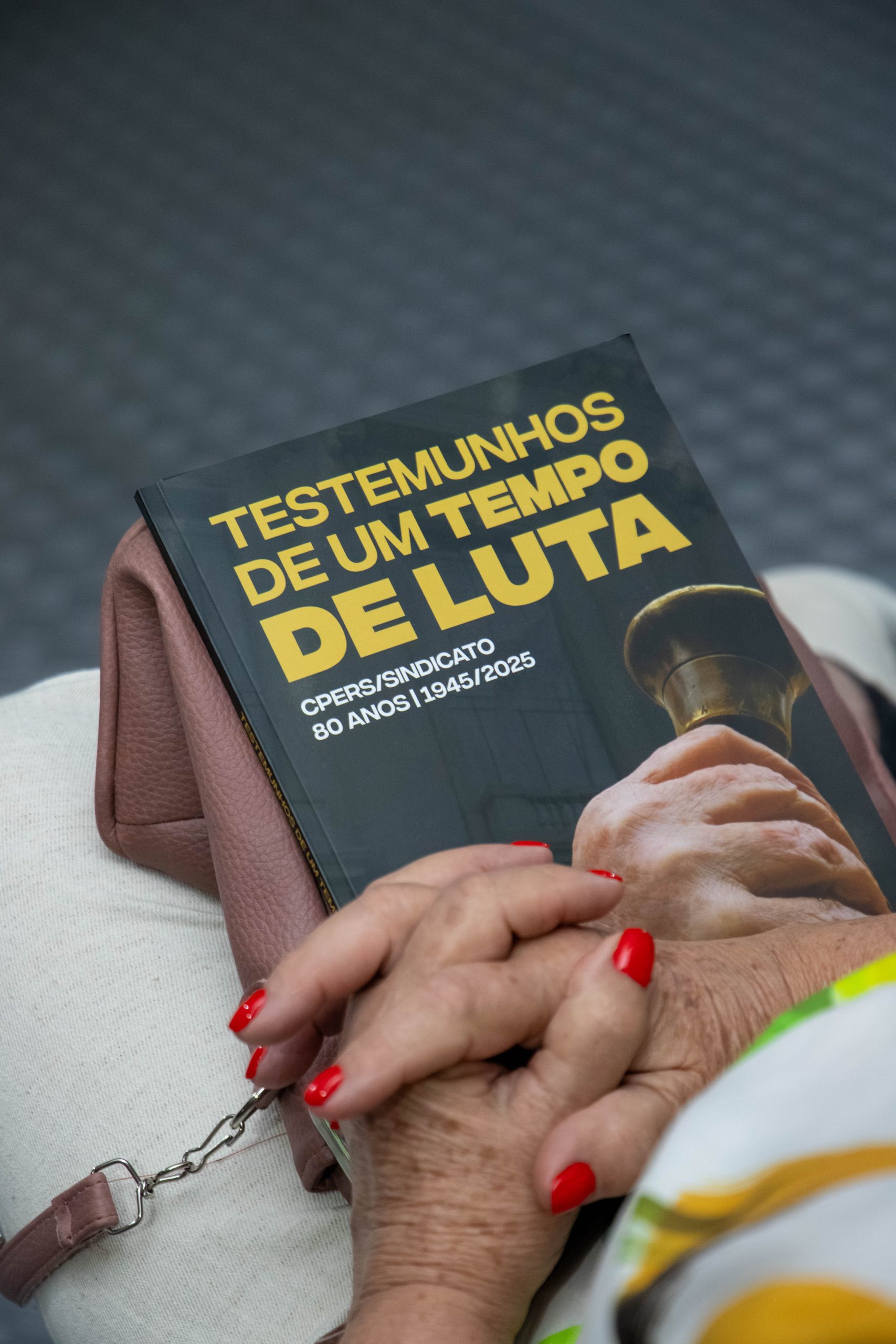 Emoção, reencontros e a renovação da esperança na educação pública! Foi com estes sentimentos que o CPERS deu continuidade às celebrações dos 80 anos do Sindicato, nesta quinta-feira (13), com o lançamento do livro “Testemunhos de um Tempo de Luta”, na Feira do Livro de Porto Alegre. A obra realiza um mergulho sensível e profundo na história da entidade, desde sua fundação, em 21 de abril de 1945, revelando o quanto cada capítulo dessas oito décadas moldou a resistência e a força da categoria.