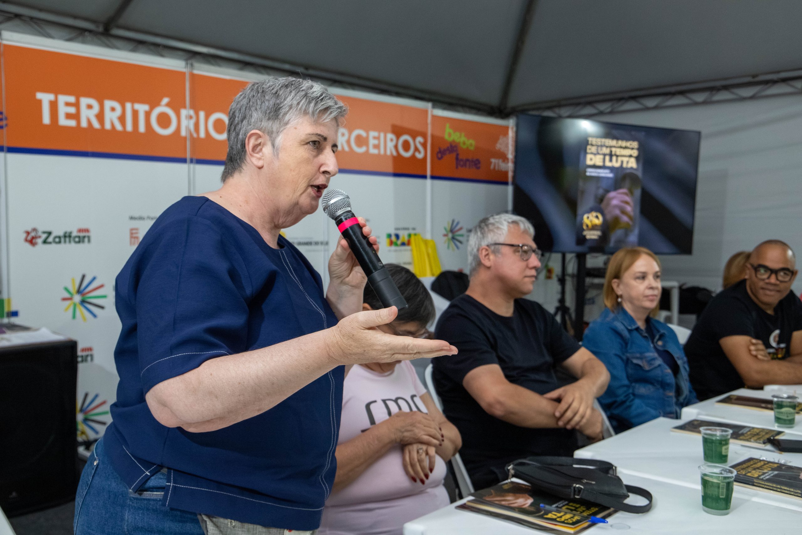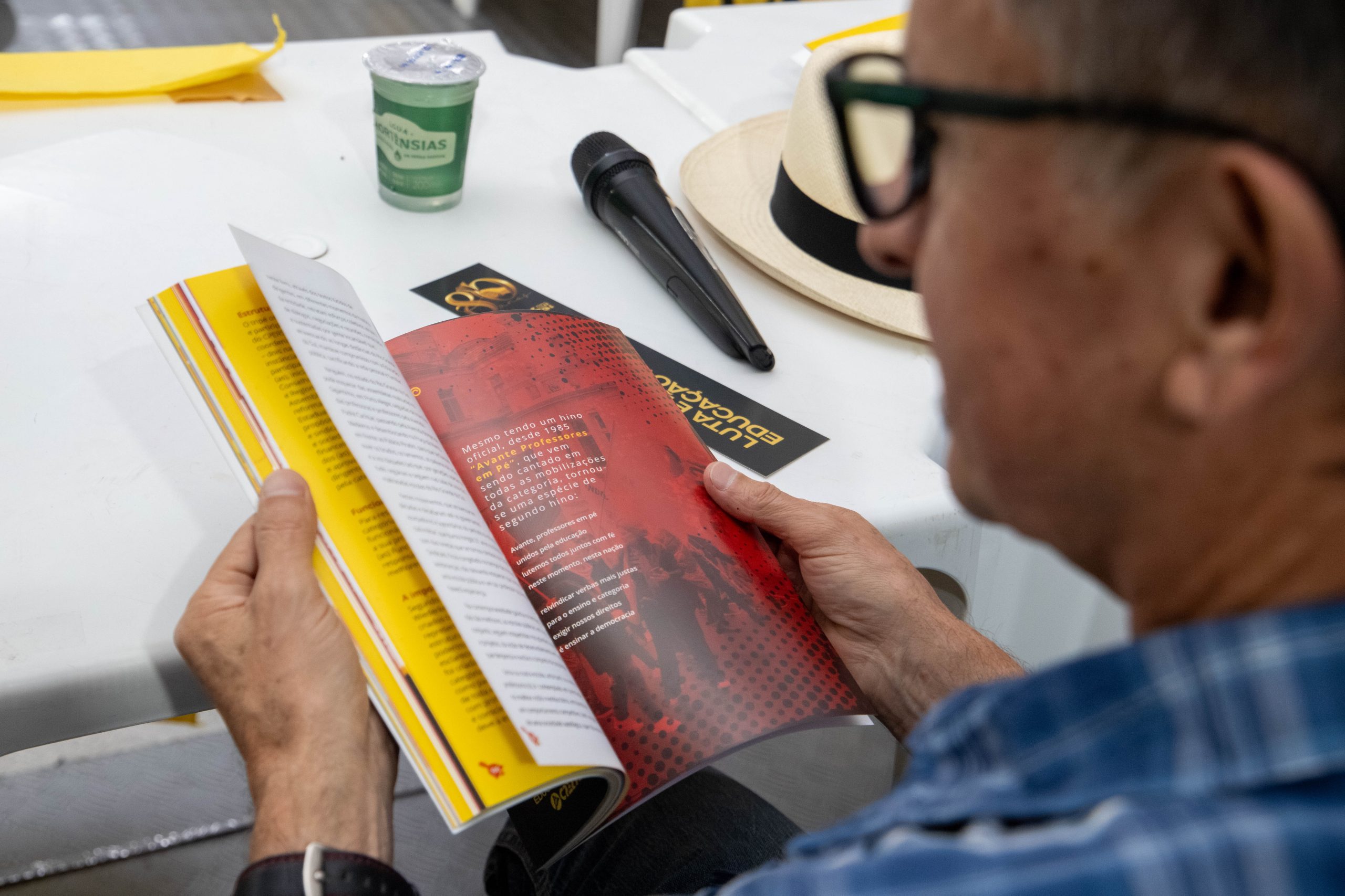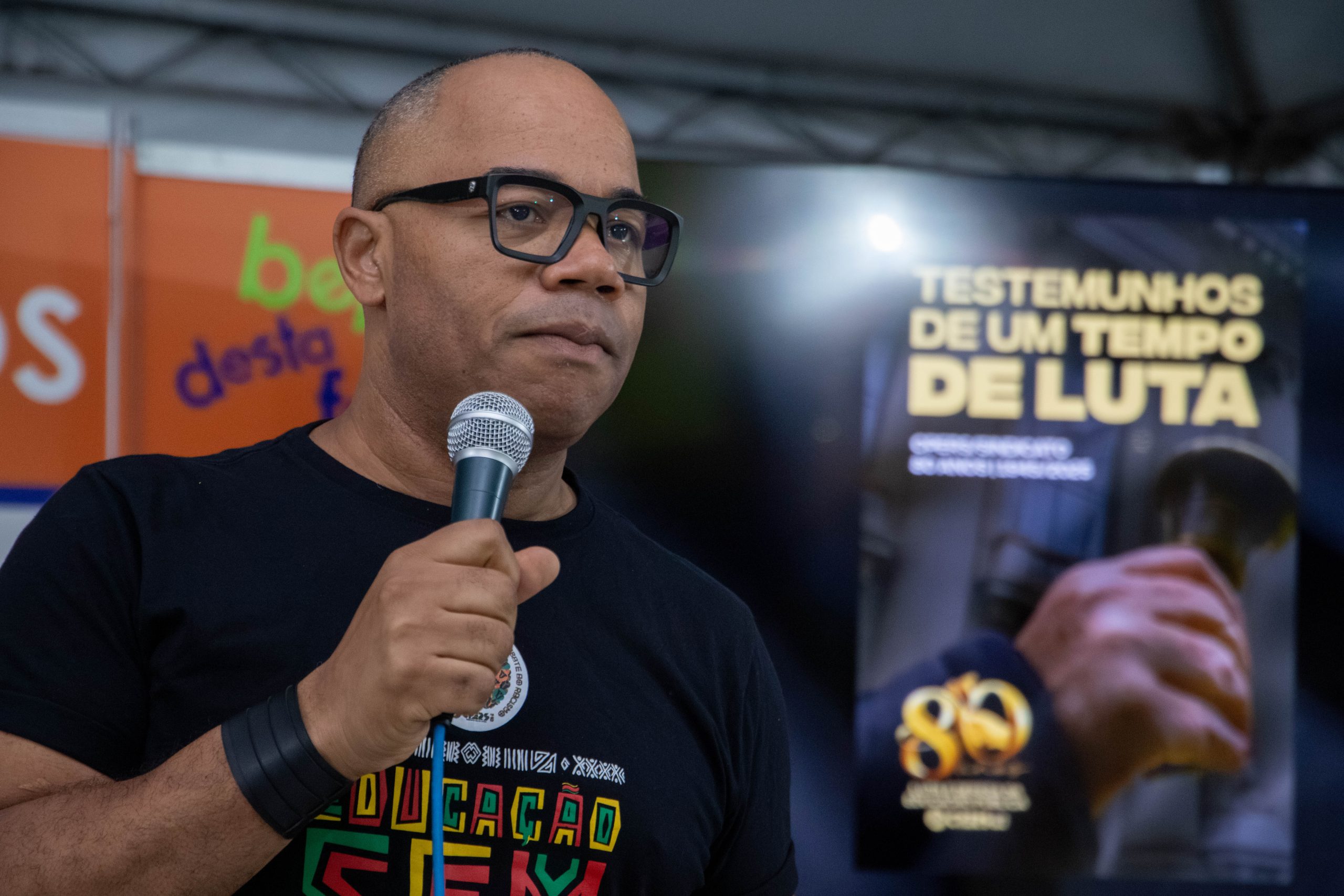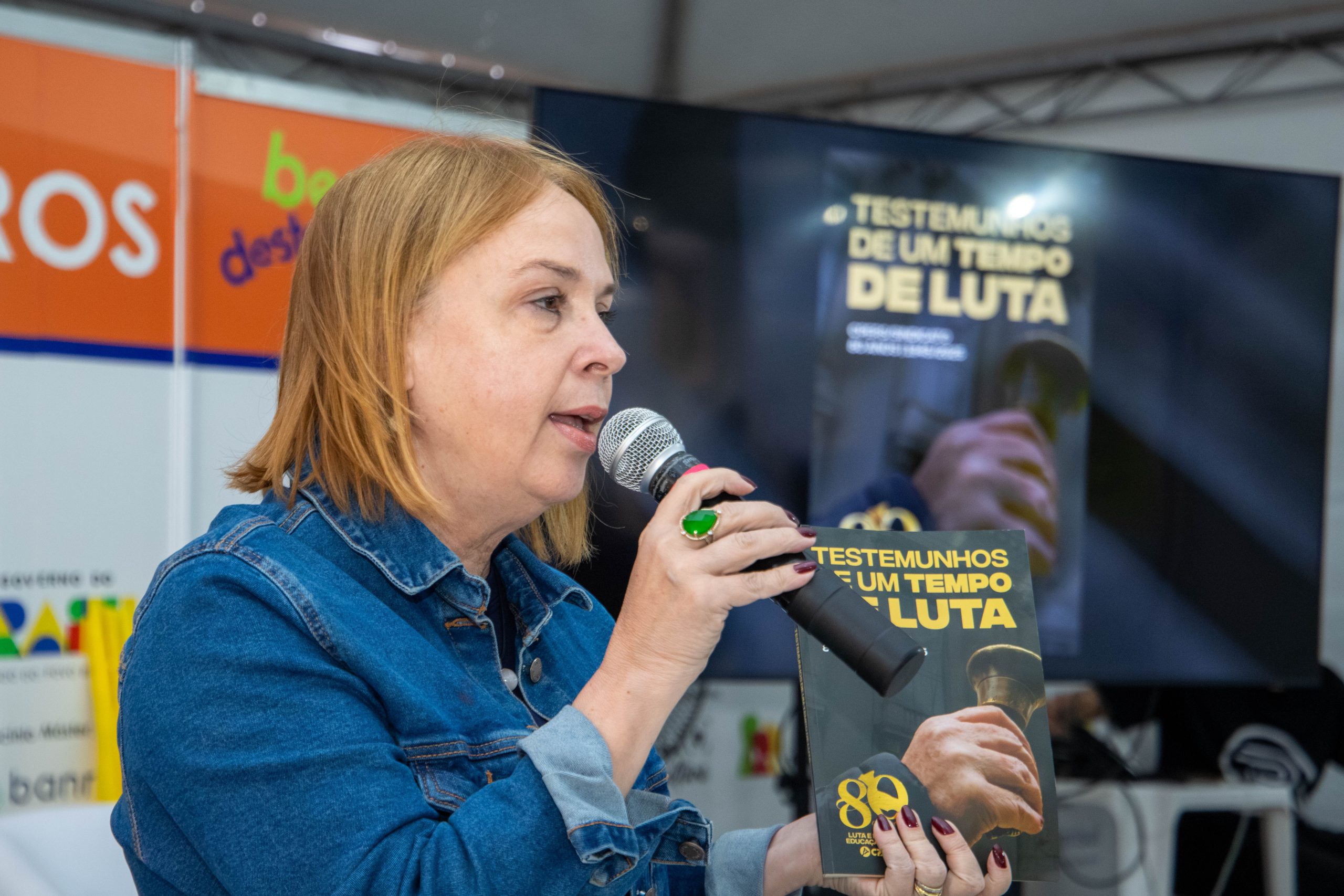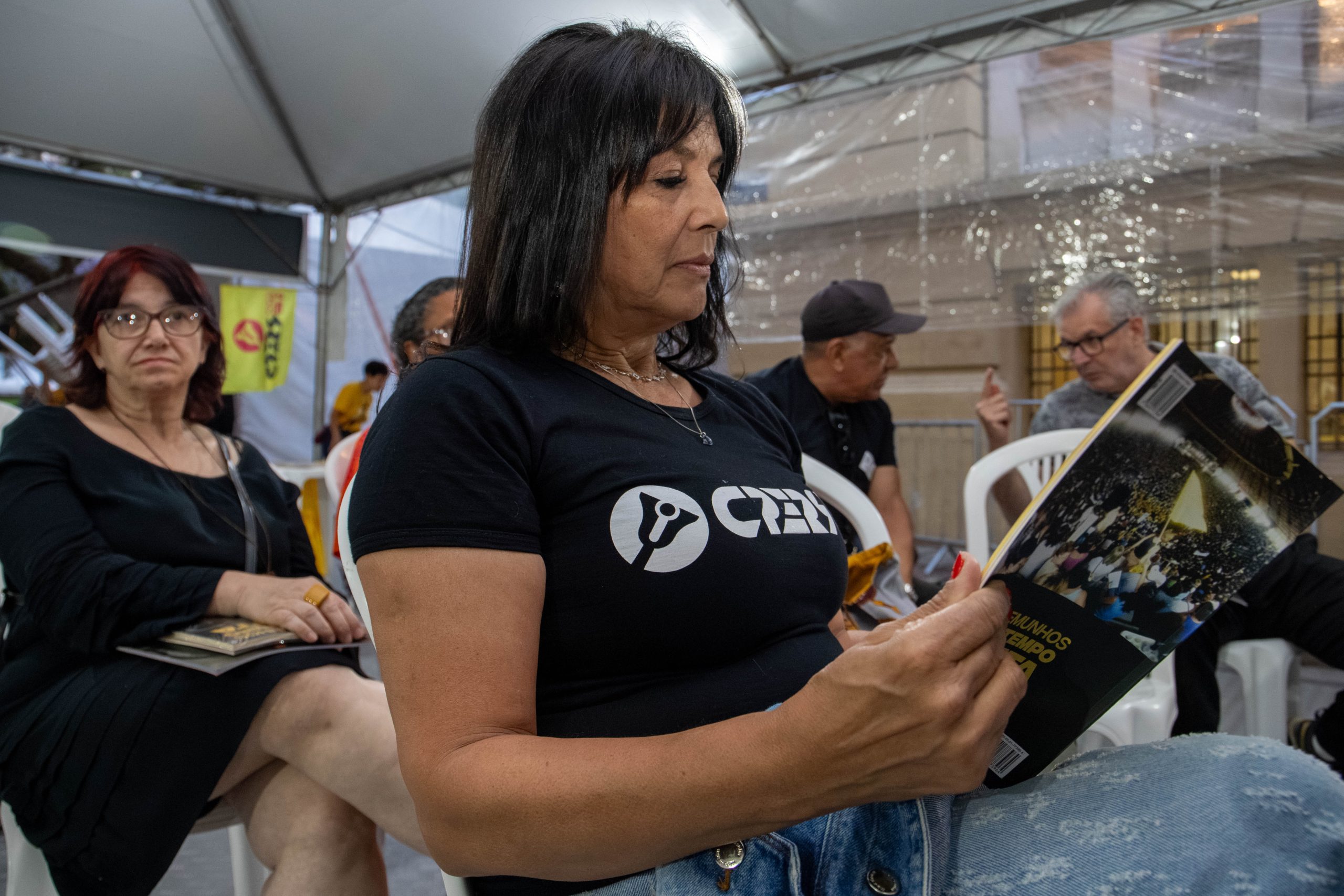 Emoção, reencontros e a renovação da esperança na educação pública! Foi com estes sentimentos que o CPERS deu continuidade às celebrações dos 80 anos do Sindicato, nesta quinta-feira (13), com o lançamento do livro “Testemunhos de um Tempo de Luta”, na Feira do Livro de Porto Alegre. A obra realiza um mergulho sensível e profundo na história da entidade, desde sua fundação, em 21 de abril de 1945, revelando o quanto cada capítulo dessas oito décadas moldou a resistência e a força da categoria.