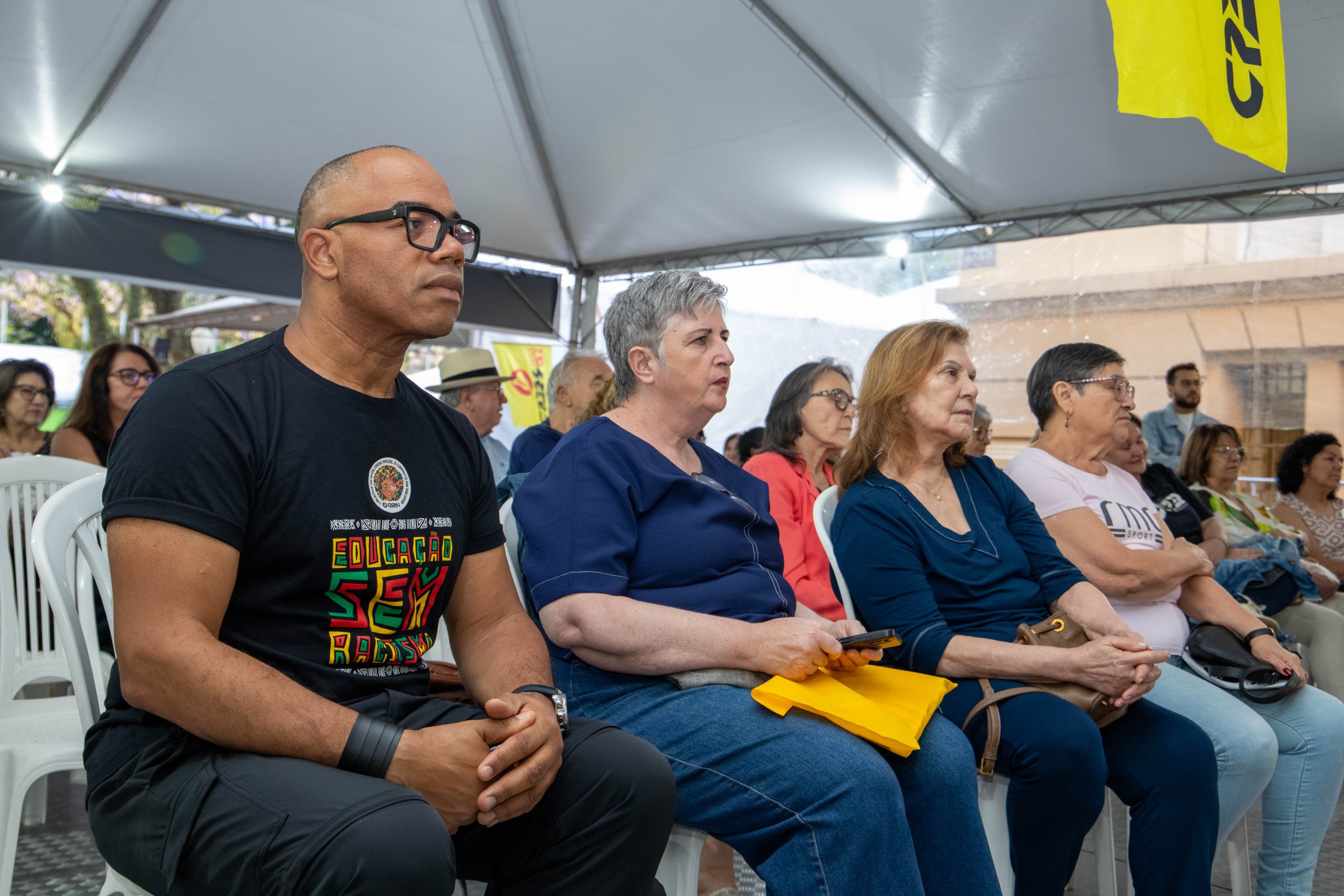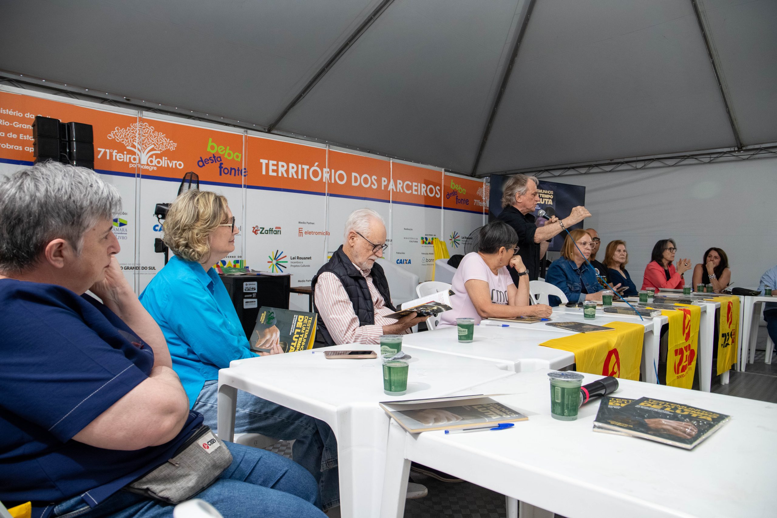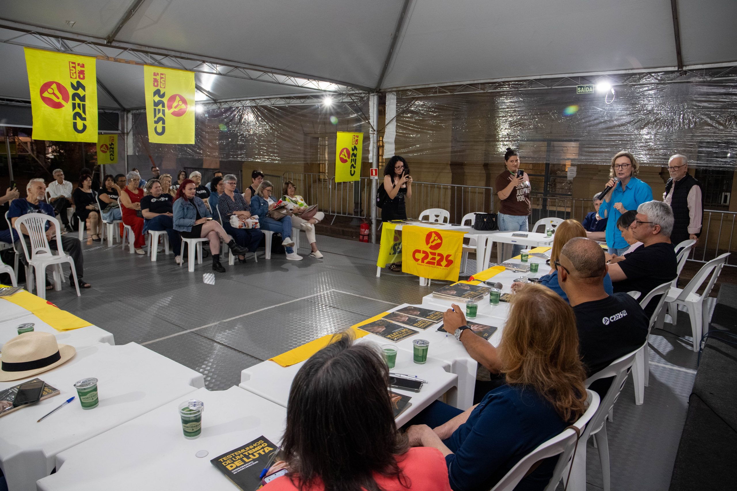O lançamento reuniu, no Território dos Parceiros da Feira do Livro, a atual direção do CPERS, representantes dos Núcleos, ex-presidentes e autoras(es) da obra, em uma noite marcada pela emoção e pela reafirmação do compromisso com uma educação pública de qualidade. Os relatos compartilhados trouxeram à tona a intensidade das lutas travadas, mas também a grandeza do papel desempenhado pelo Sindicato na construção de um Rio Grande do Sul mais justo, democrático e igualitário.