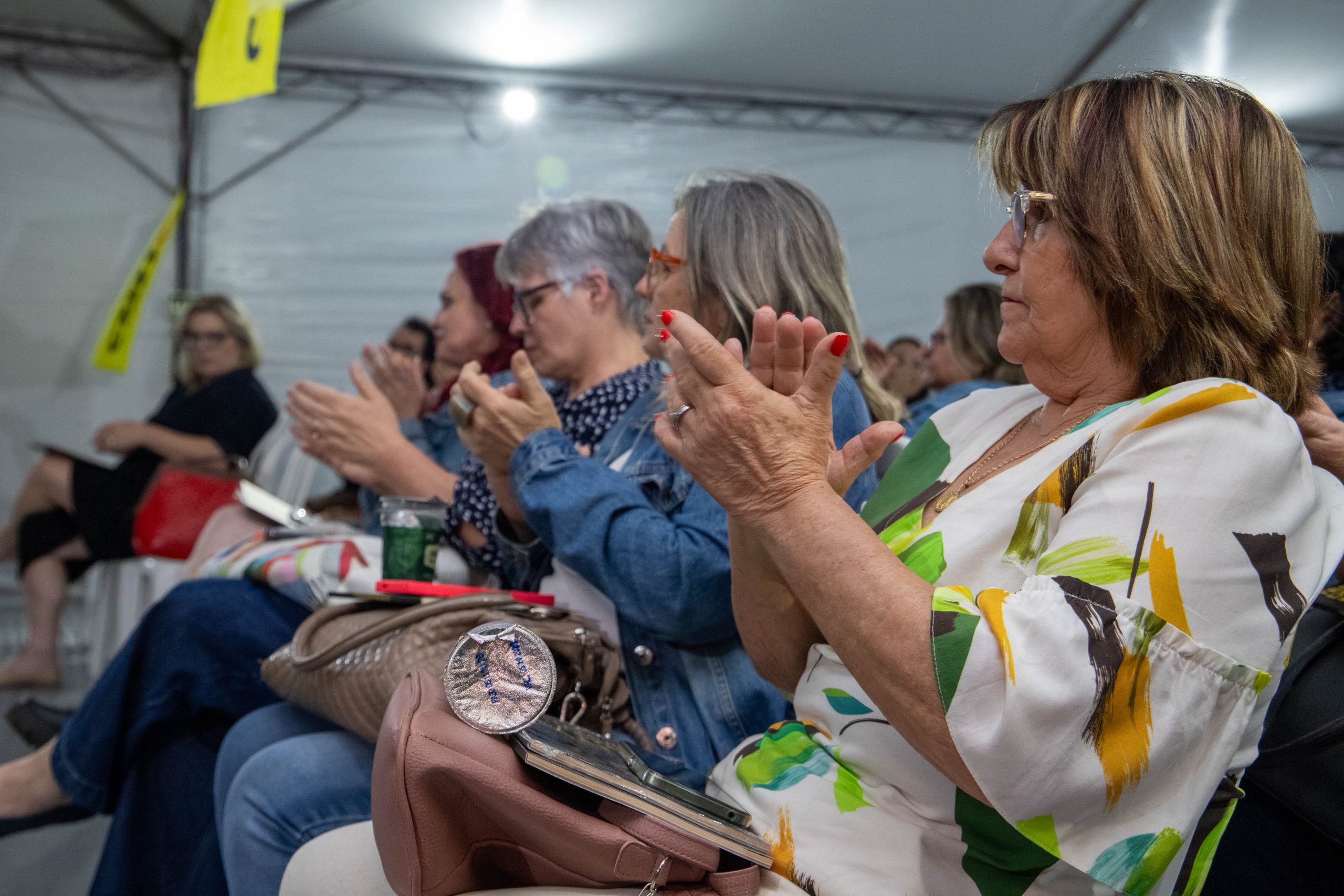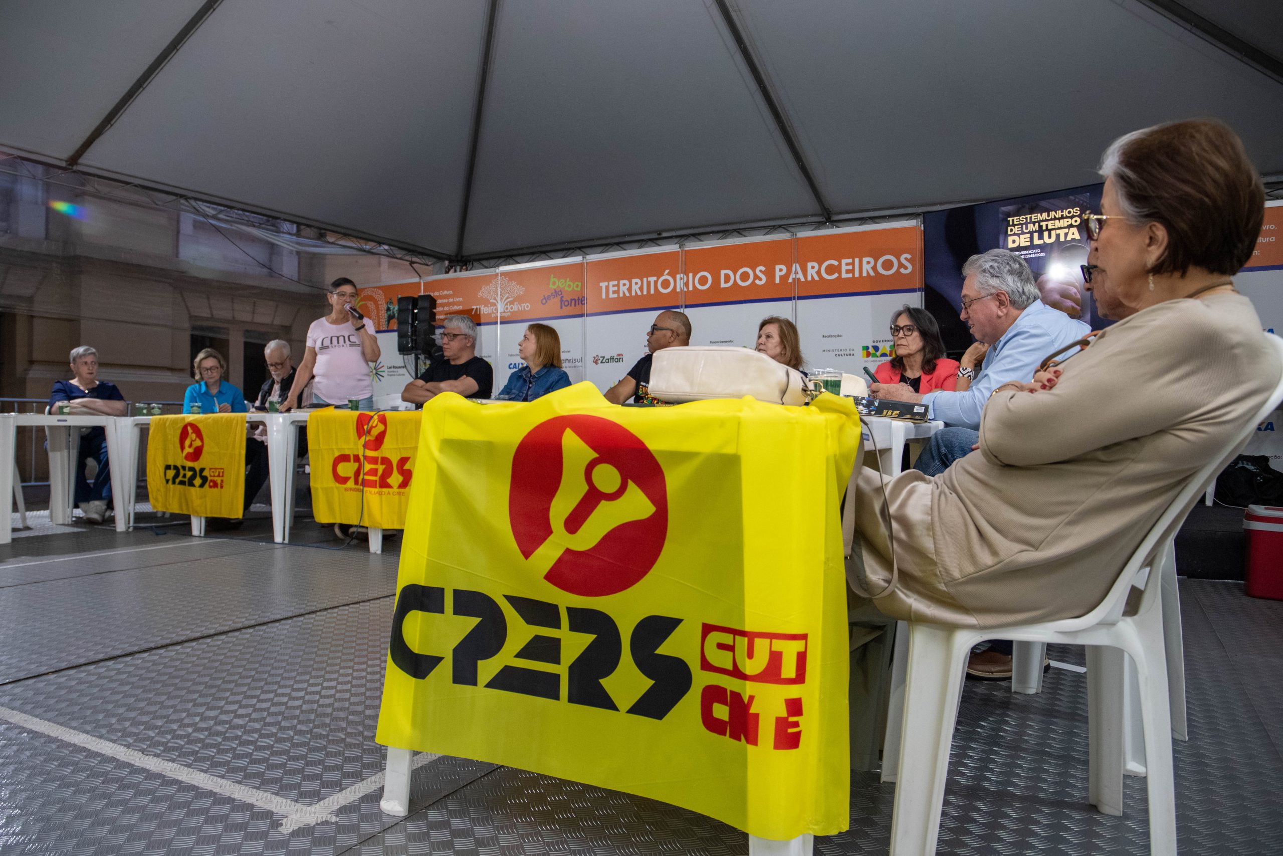 A presidente do Sindicato, Rosane Zan, abriu o evento retomando a memória dessa caminhada coletiva: “Sabemos que esse sentimento está no coração e na mente de cada um de nós que fizemos a história do CPERS, lutando pelos nossos direitos, nas questões salariais e funcionais, mas principalmente na defesa da democracia no Estado de Direito. Agora, o processo exige de nós também um momento de reflexão”.